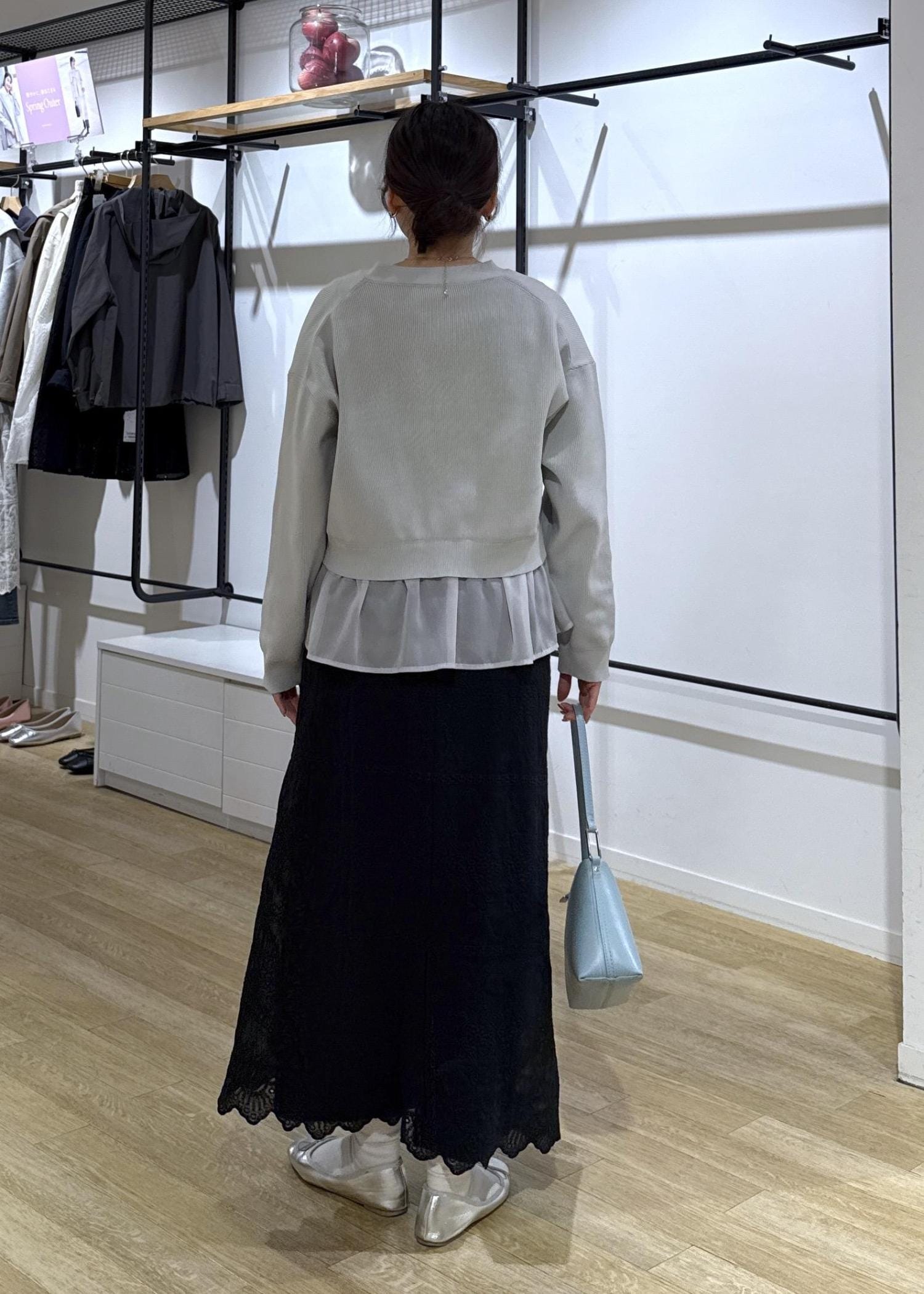 程よくゆとりあるので重ね着してももこもこしにくいです。レースの柄も大人なデザインなので、甘くなりすぎずきれいめ、大人カジュアルコーデにもおすすめです◎ -