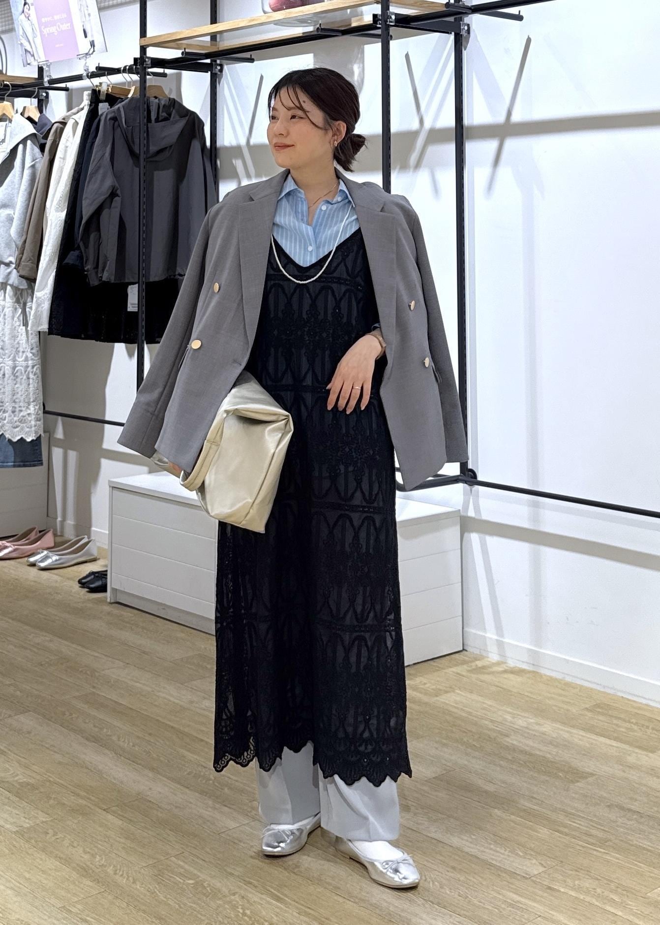 レースキャミワンピースの着回しコーデ②〜お仕事にも使えるトレンドレイヤードコーデ