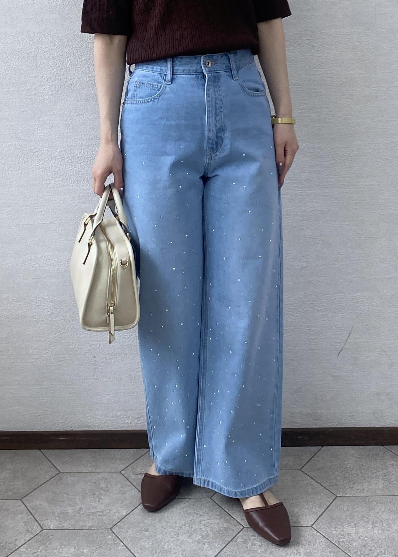ROPÉ PICNICパールキラキラビジューデニムブルー / S¥7,491レビュー脚のラインを拾いにくいワイドシルエットです。