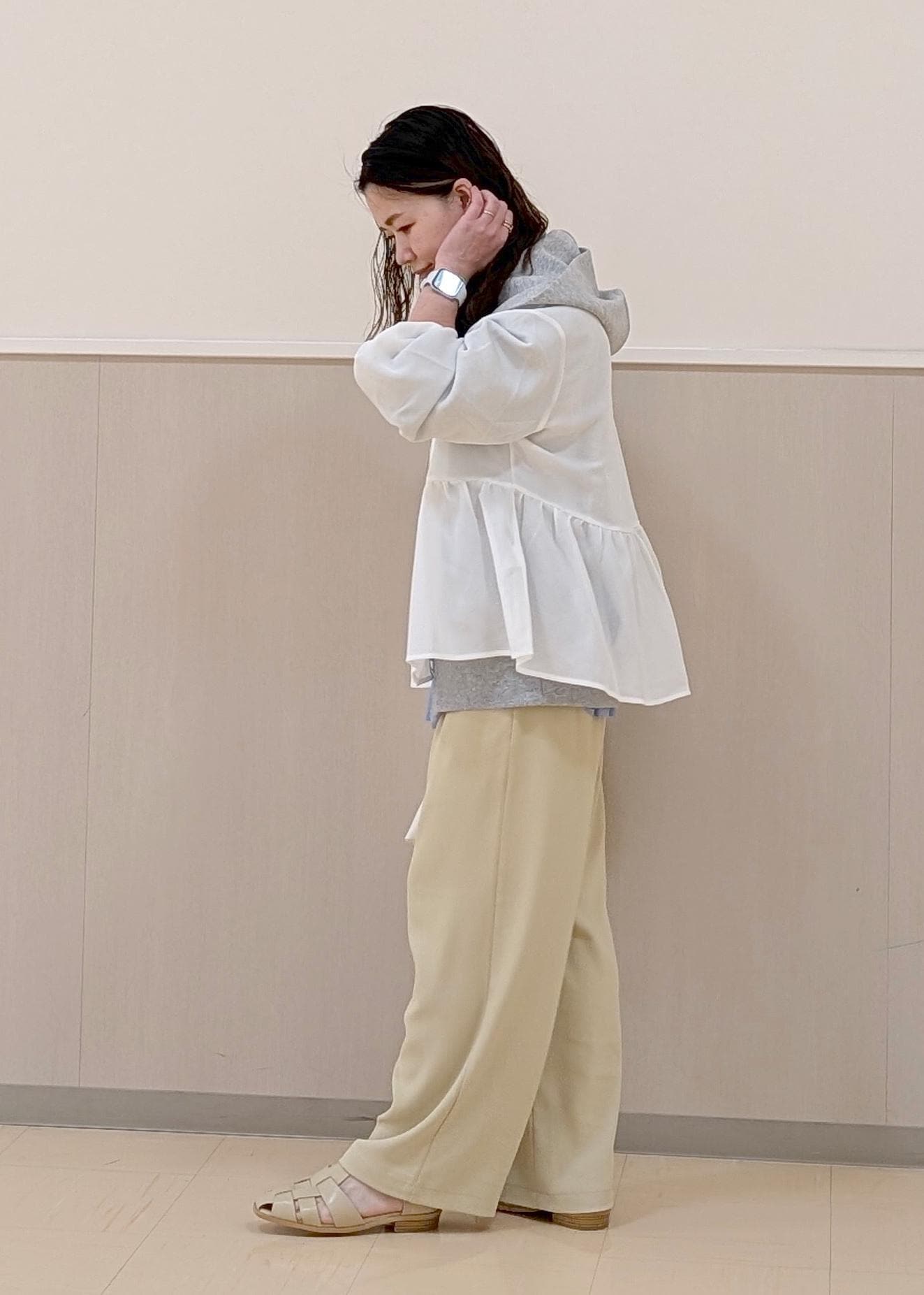 パーカースタイルをカジュアルになりすぎないような、レイヤードスタイルでまとめてみました♪