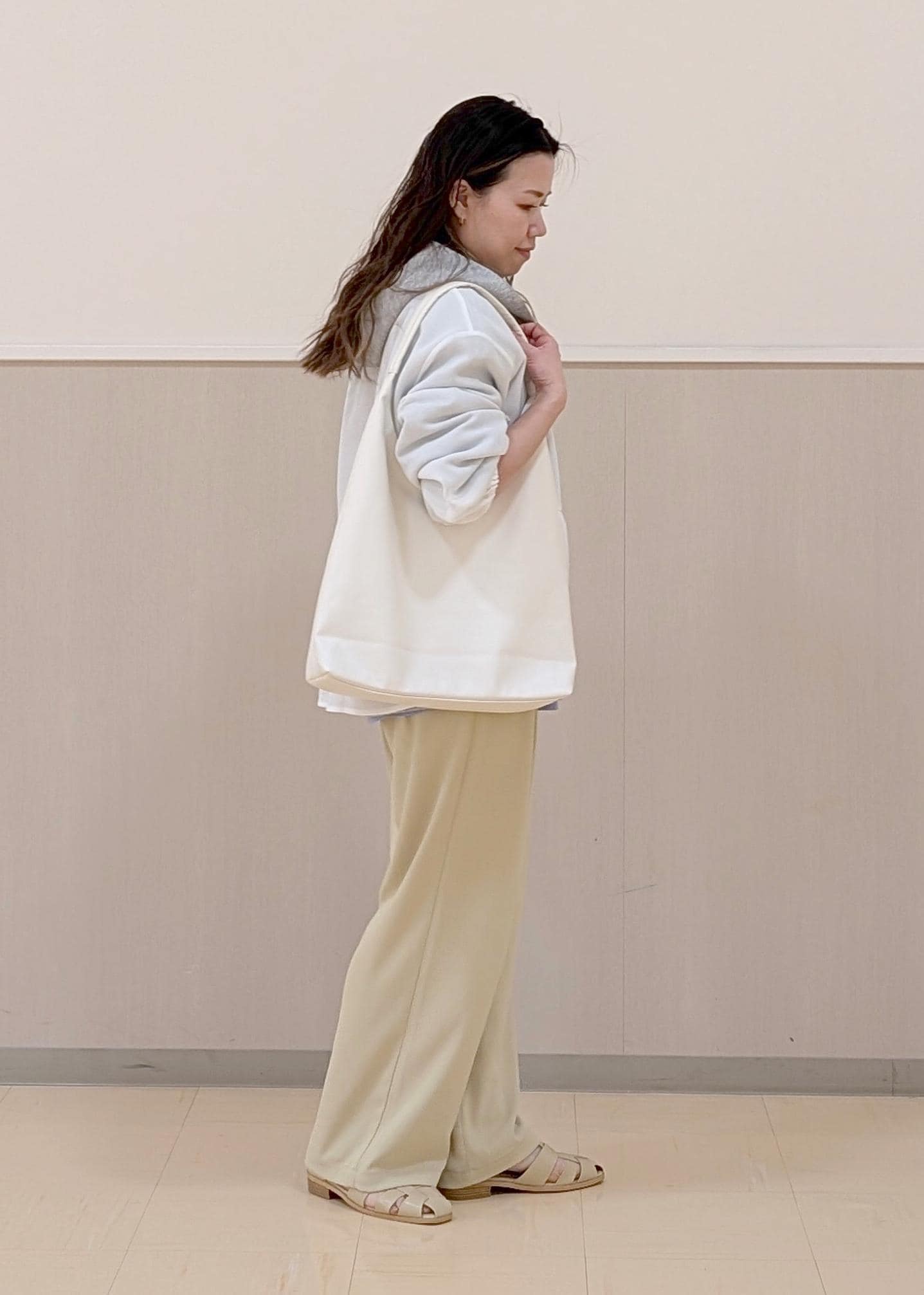 シルエットはゆったりしてワイドシルエットです。 -