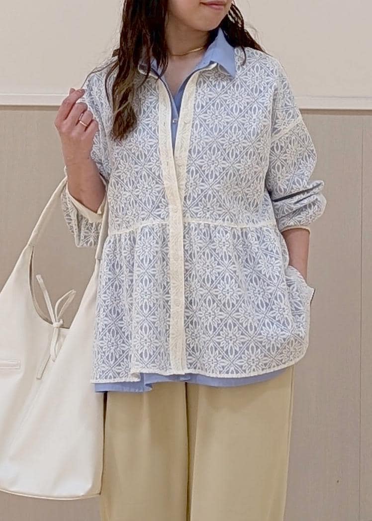 ROPÉ PICNICペプラムシャツブラウス/UVカット・防シワブルー / F¥4,994レビューこのペプラムブラウスのオススメポイントは、なんといっても防シワ加工がされていることです‼️