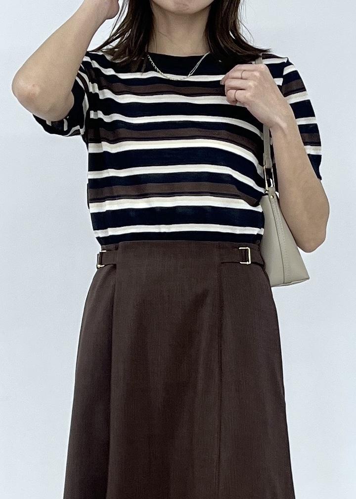 ブラウンスカートで大人カジュアルコーデ