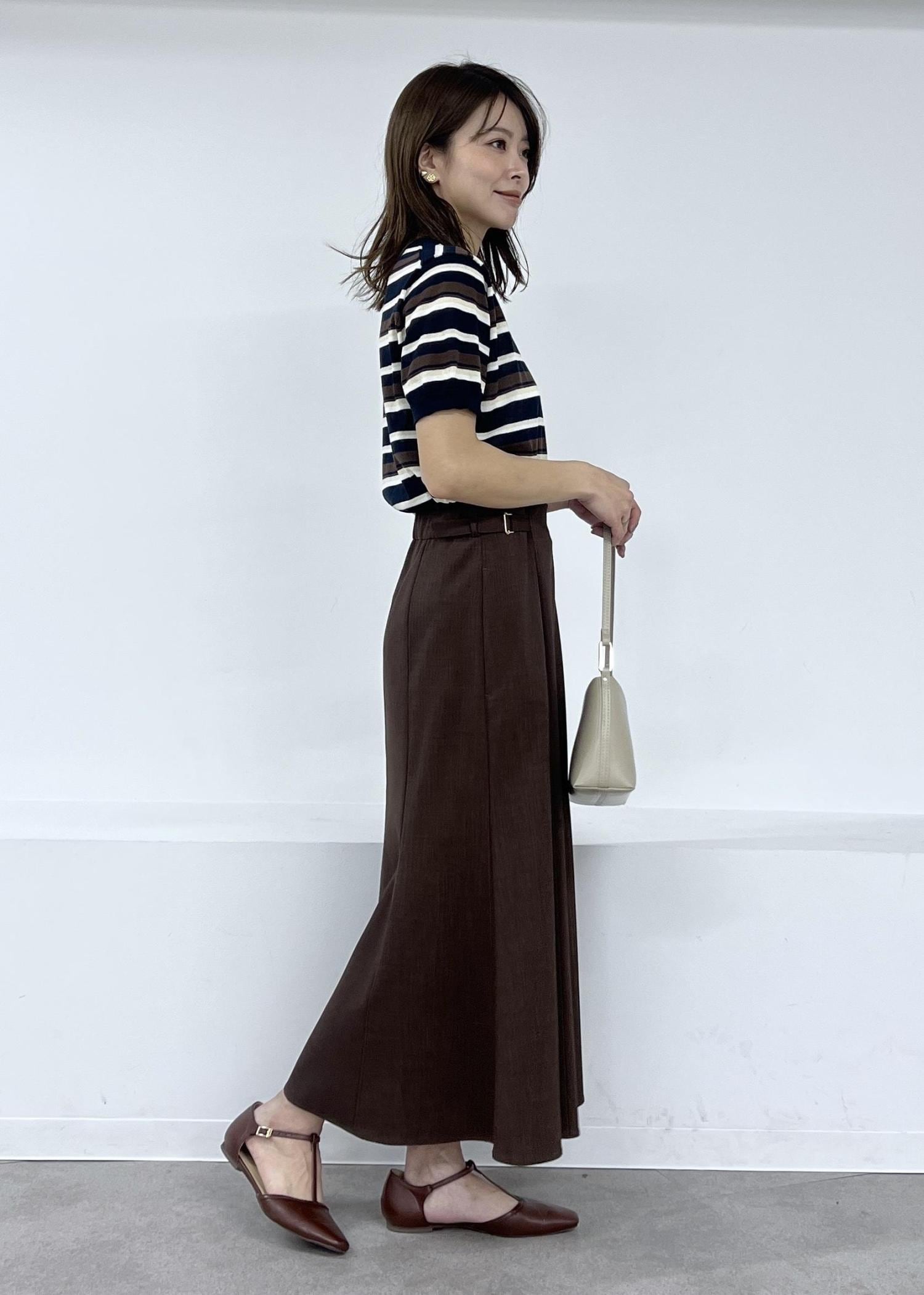 サラッと履き心地の軽いスカートは、マーメイドラインで女性らしさのあるシルエット。