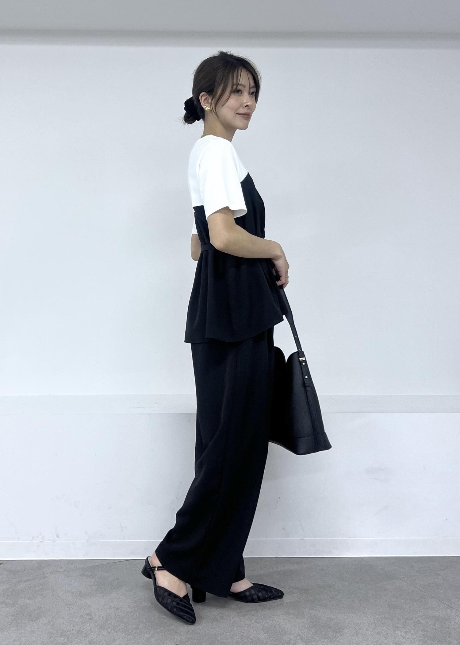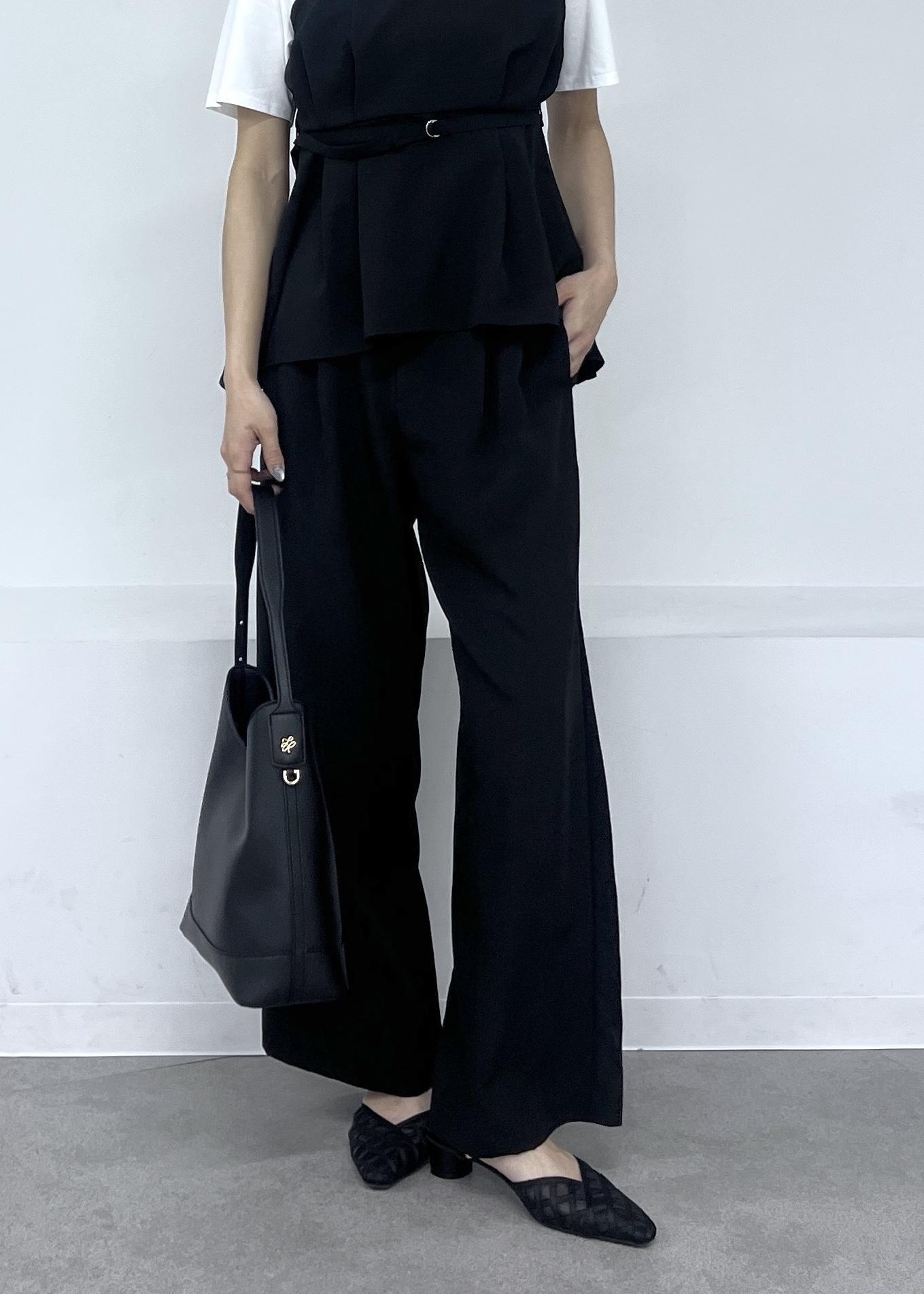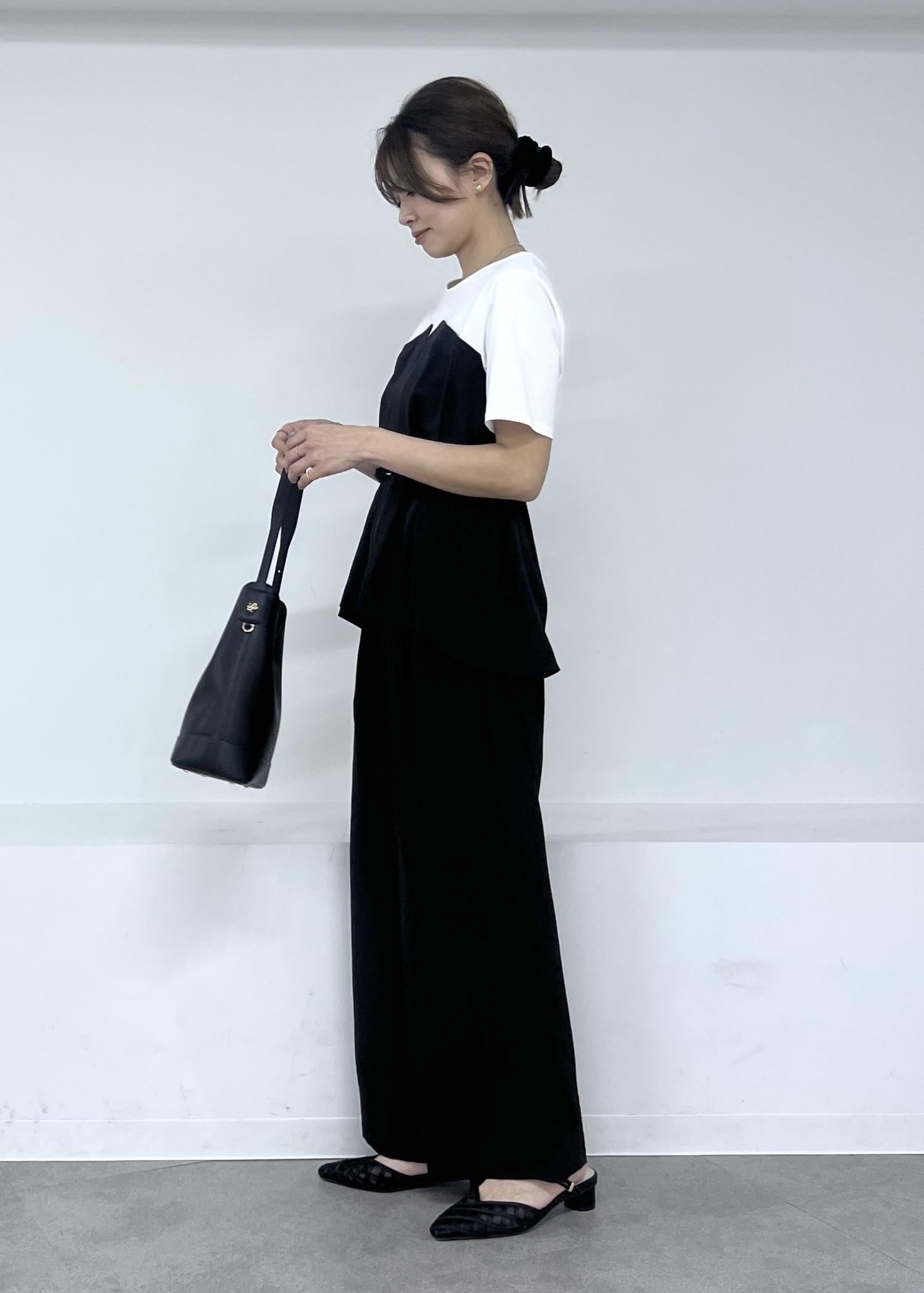 小物も潔くブラックのみでまとめて、重たく見えないように素材感で軽さを出すのがポイントです。