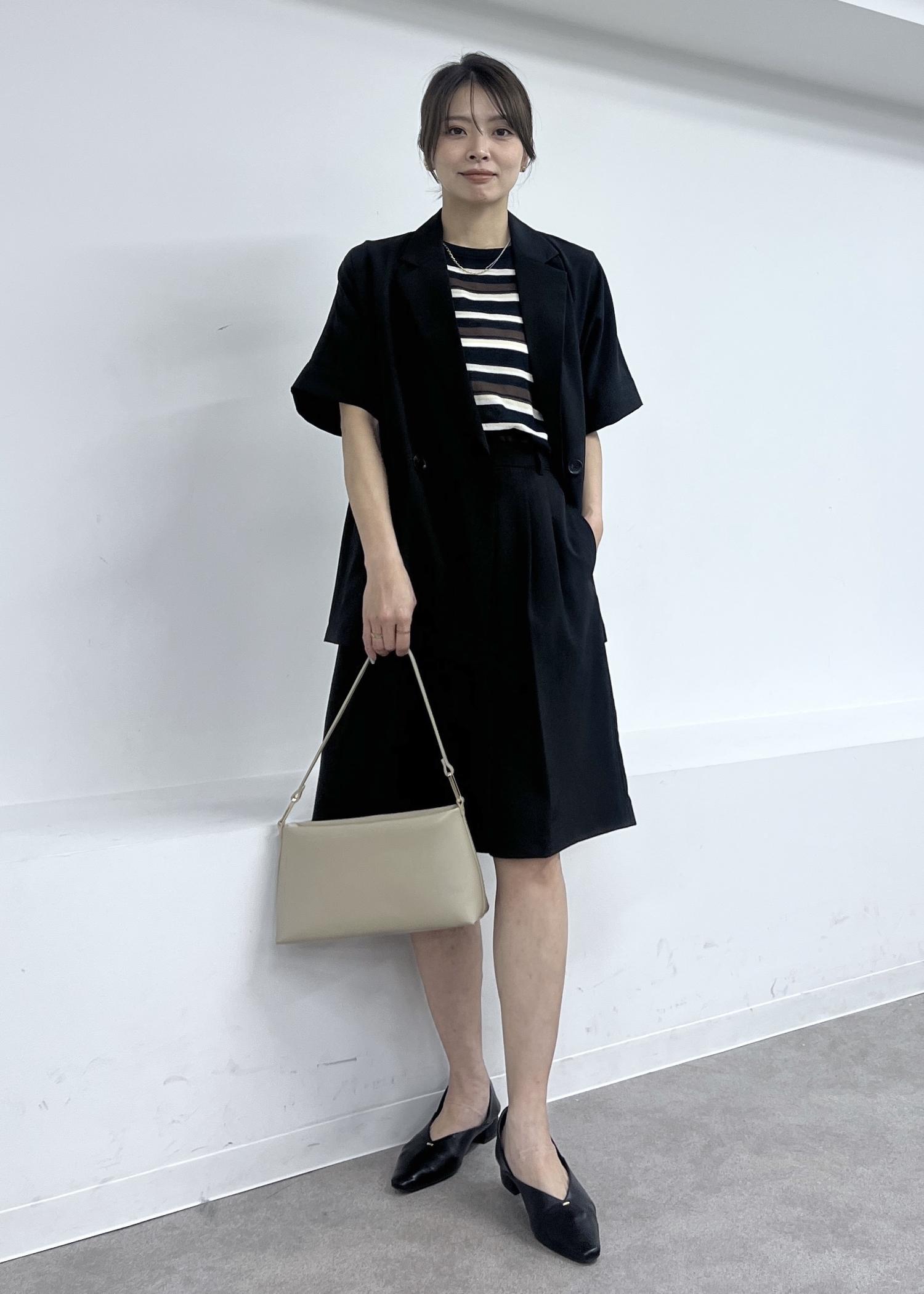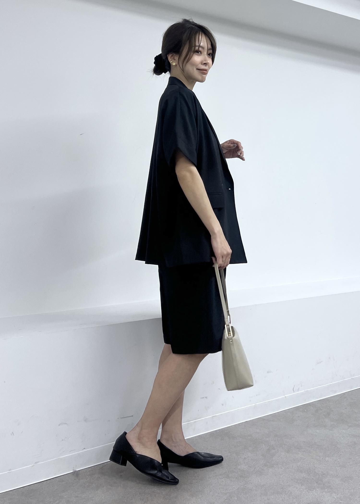 幼くならないようにブラックでまとめて、大人っぽさのあるスタイリングにしました。