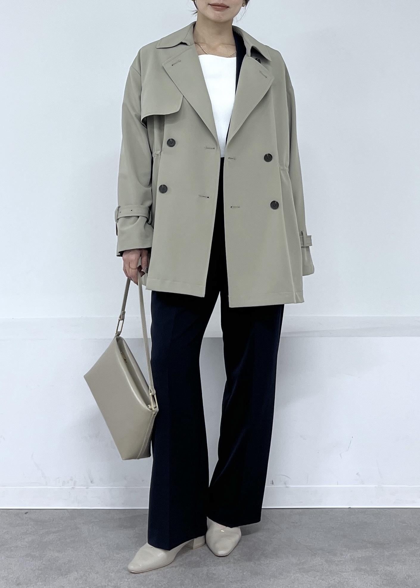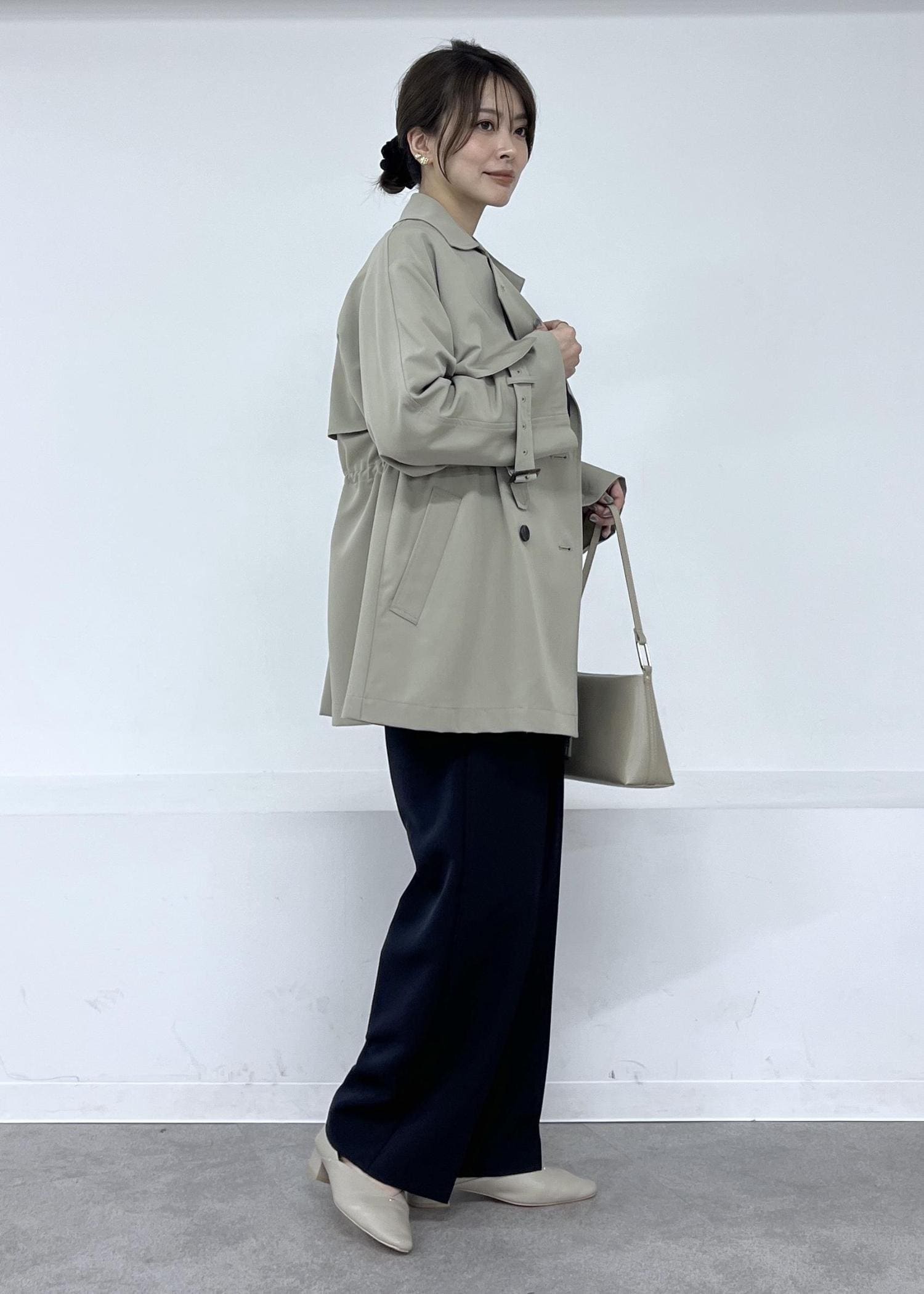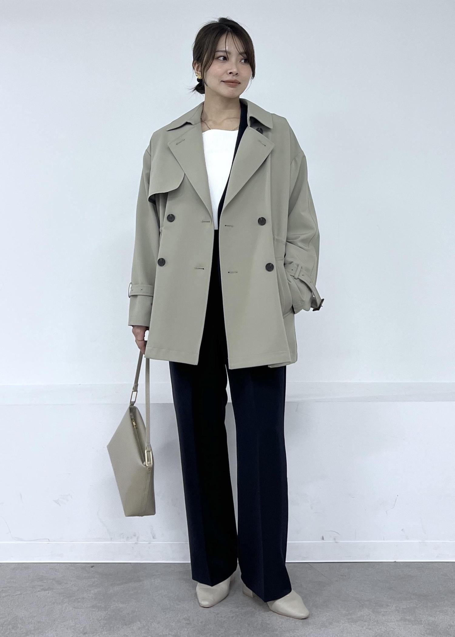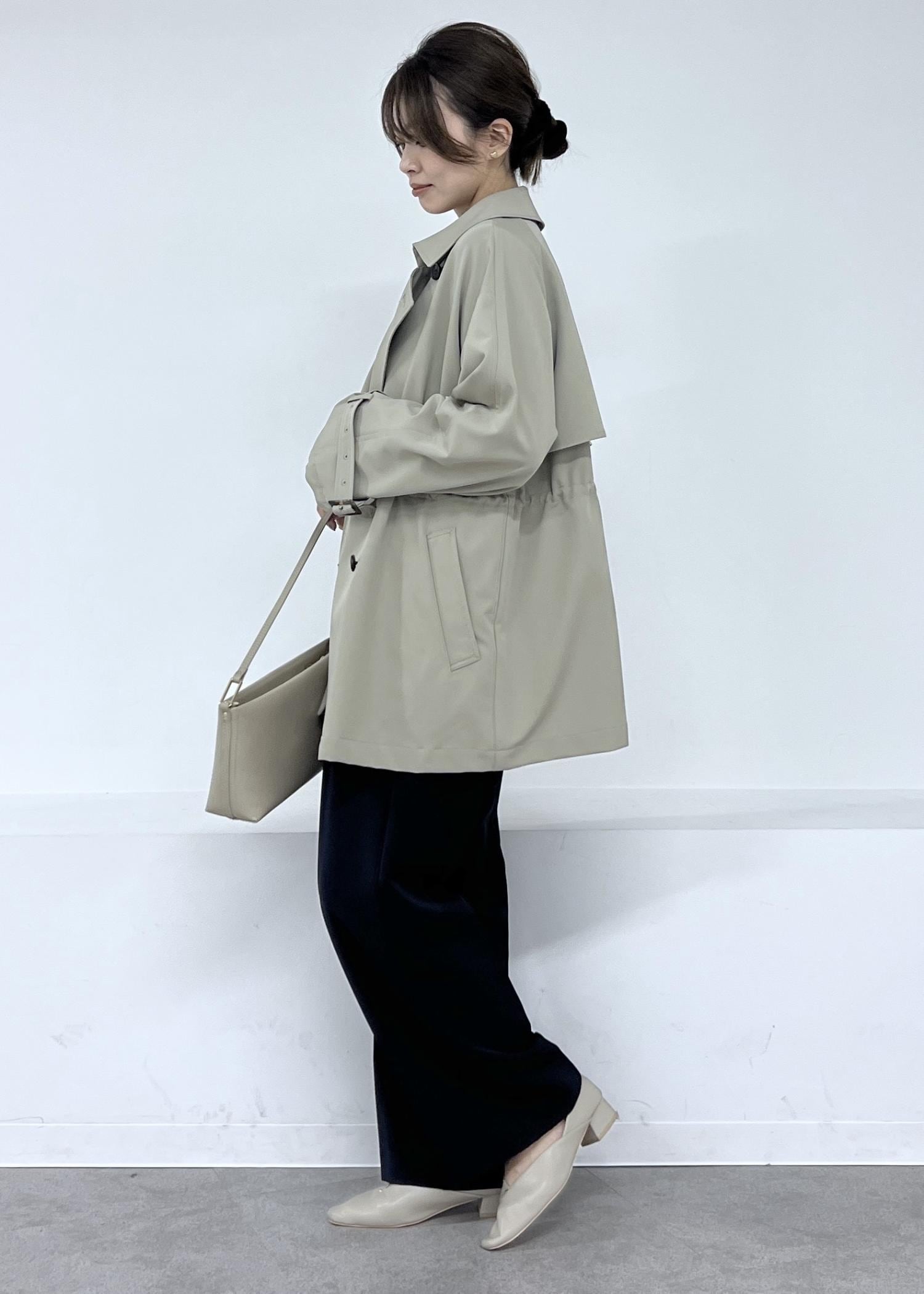 ヒップの隠れるミドル丈のトレンチコートは、通勤スタイルにもおすすめ。