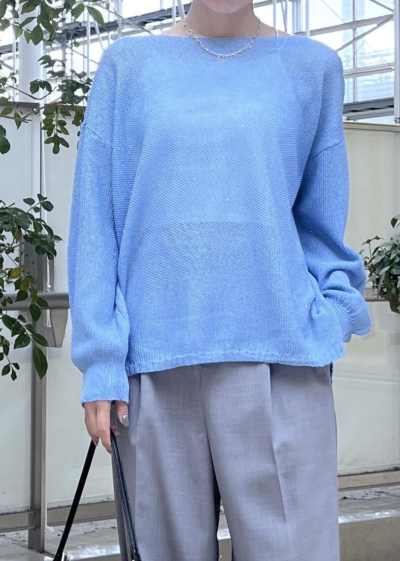 ROPÉ PICNICプチスパンコールメッシュニットサックス / F¥5,489レビュー柔らかく伸縮性のあるシアーニット生地で、ミニスパンコール入りでキラキラ感のある素材感。