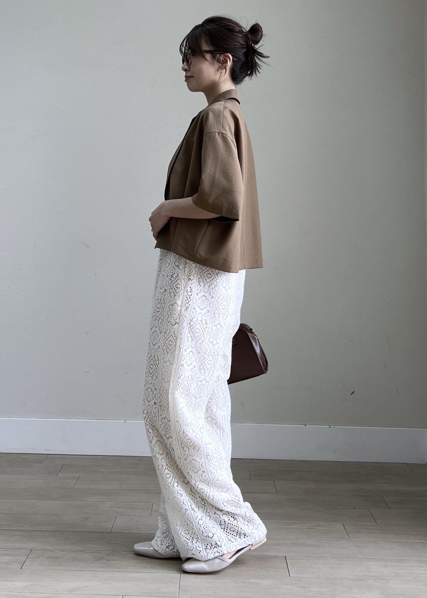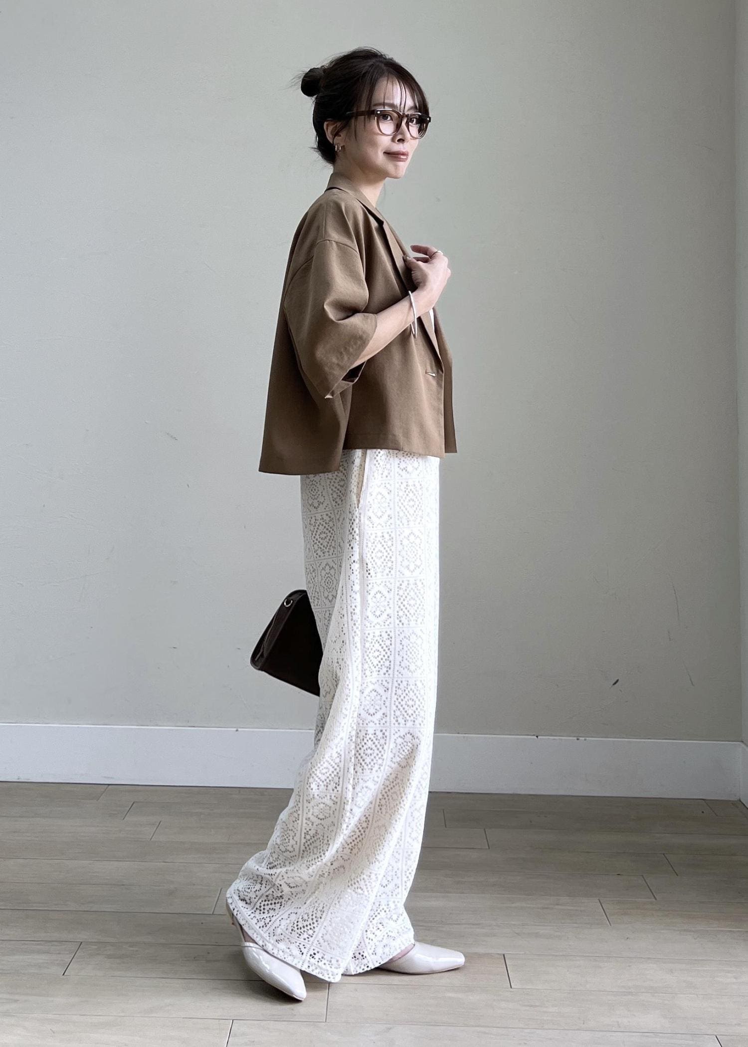 ブラウンのジャケットを羽織れば、ちょっときれいめ見えしてくれるので大人スタイルにおすすめのコーデです。