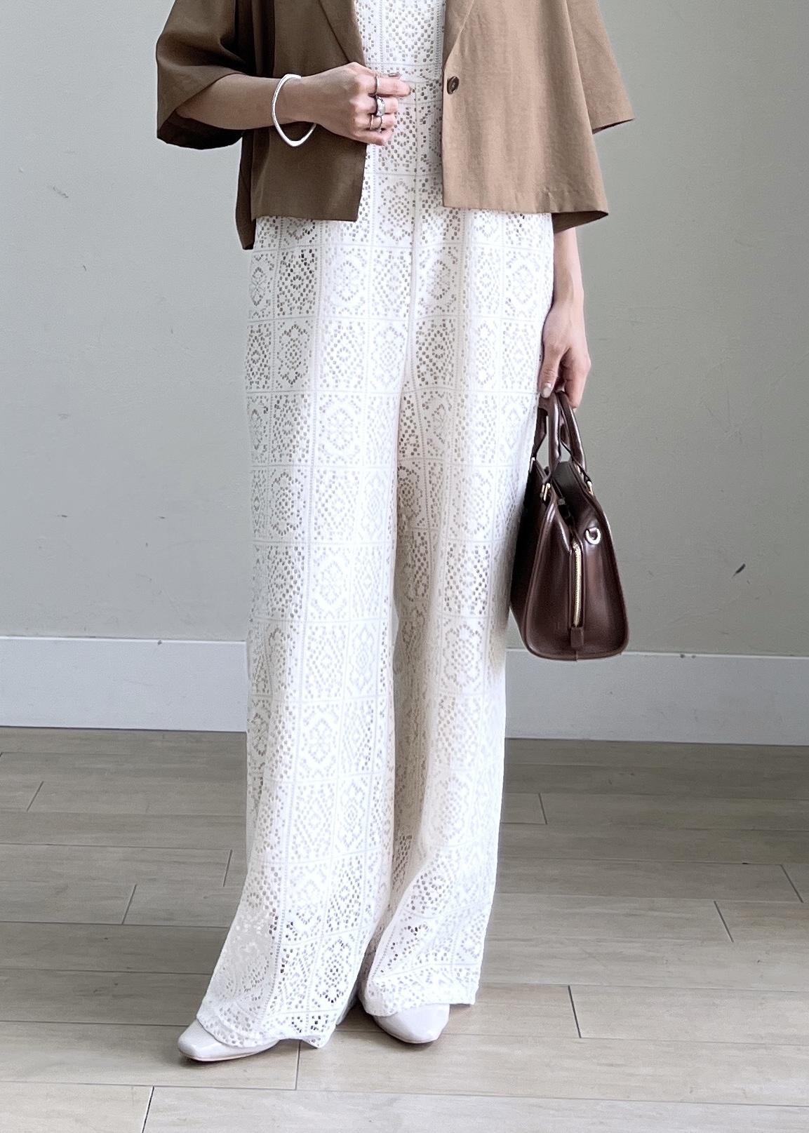 NEW! 予約ROPÉ PICNIC幾何学レースオールインワンキナリ / F¥7,491レビュー柔らかくしなやかなレース生地で、裏地付きなので透け感も気にせずに着やすい素材感。