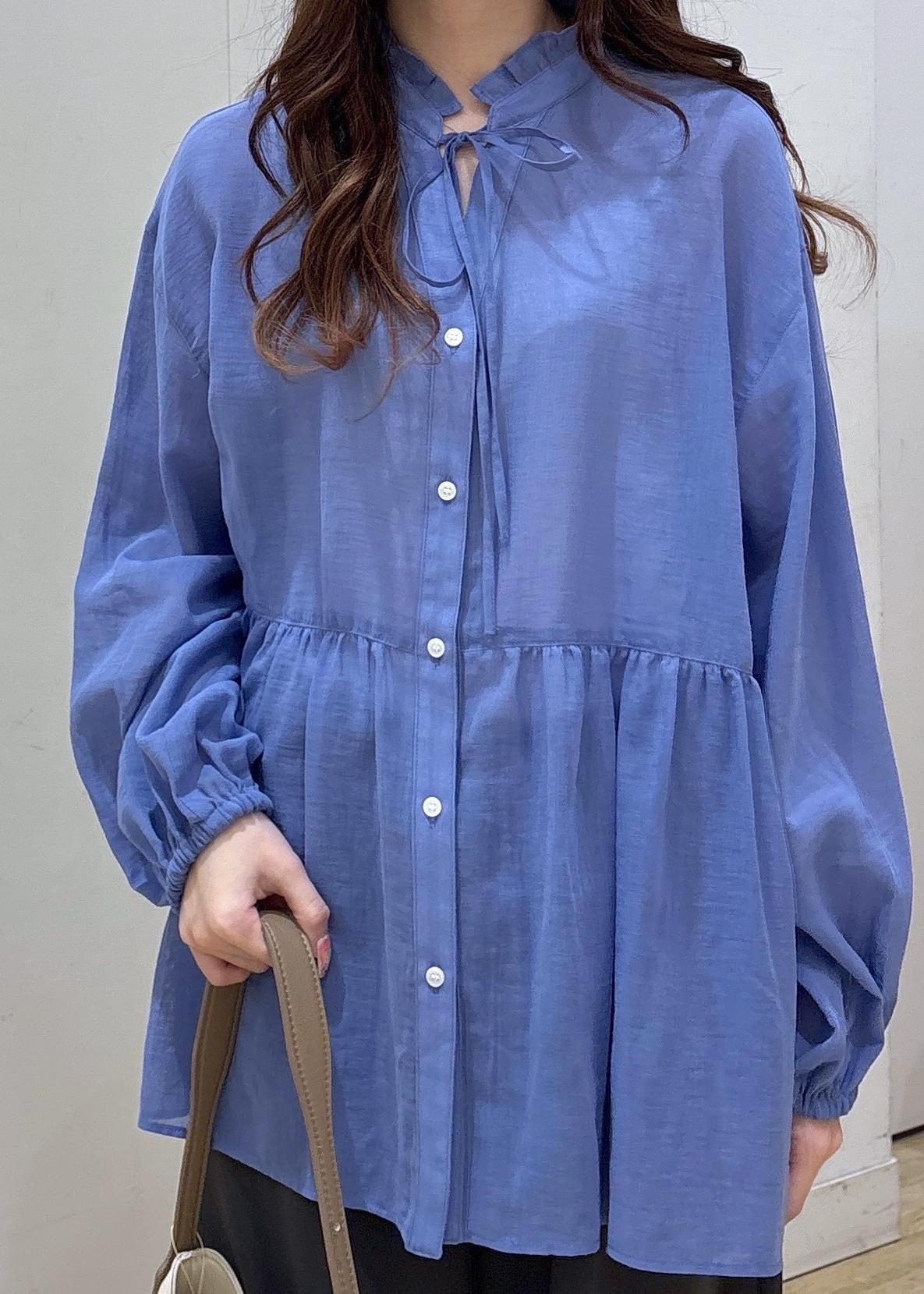 ROPÉ PICNICお着軽シャツシリーズ コットンボイルスタンドフリルシャツ/接触冷感・通気性ブルー / F¥4,994レビュー全体的にゆったりしています!