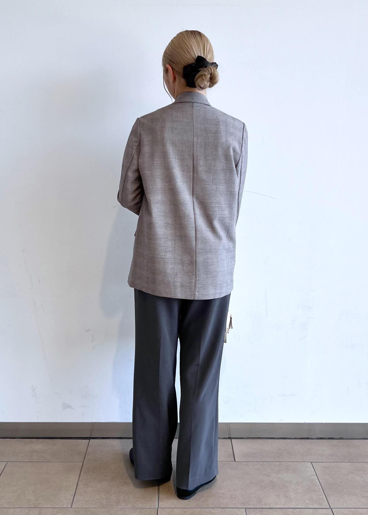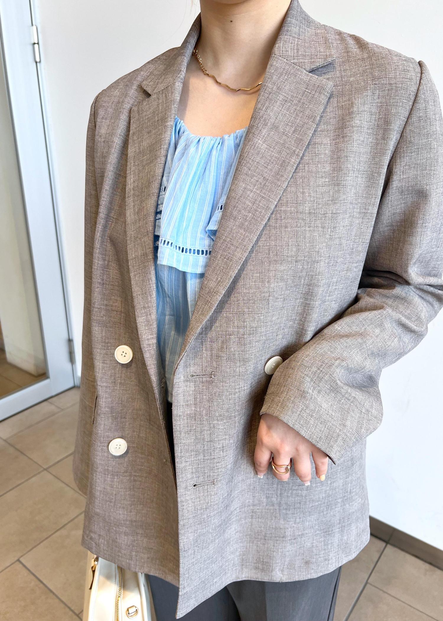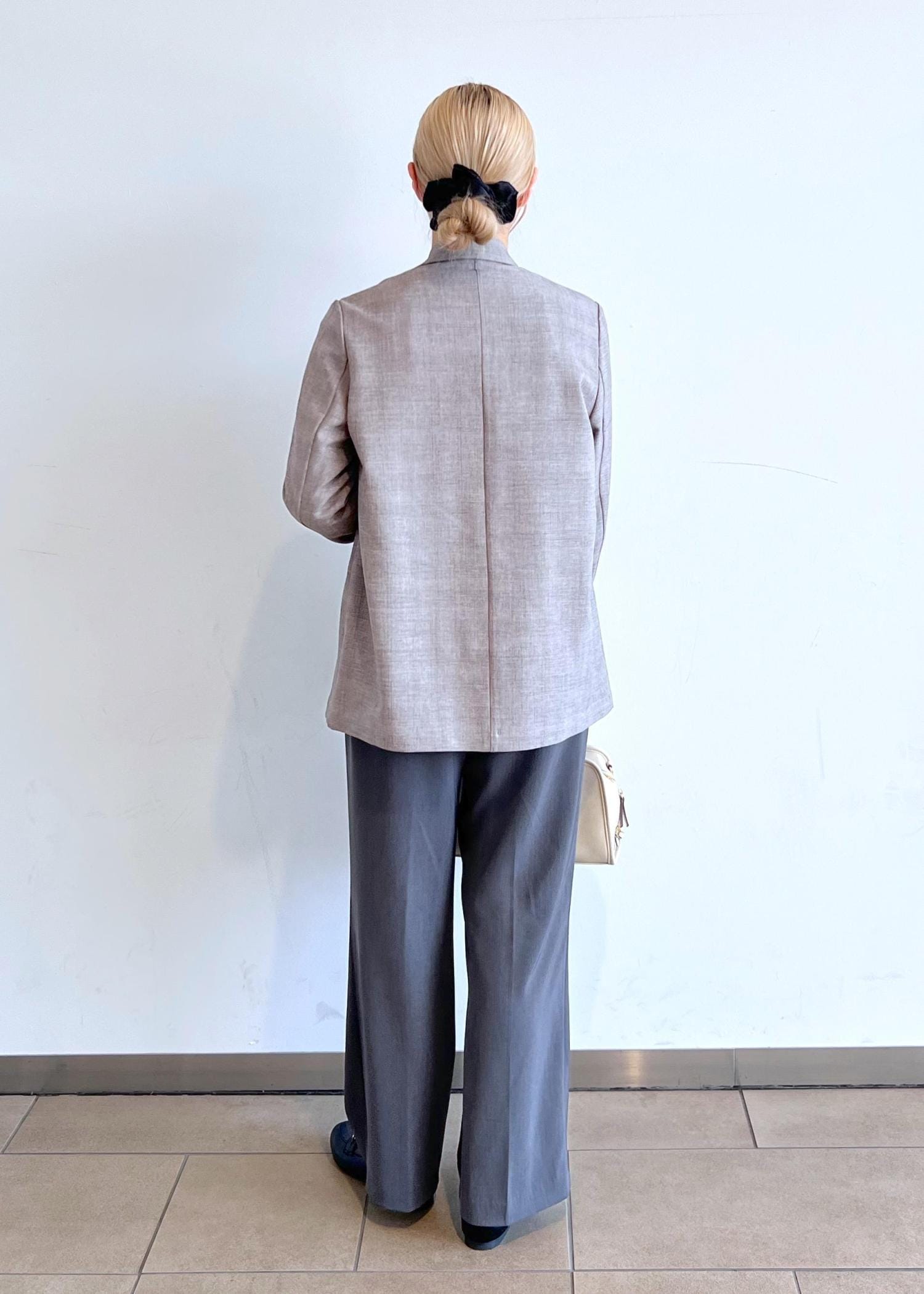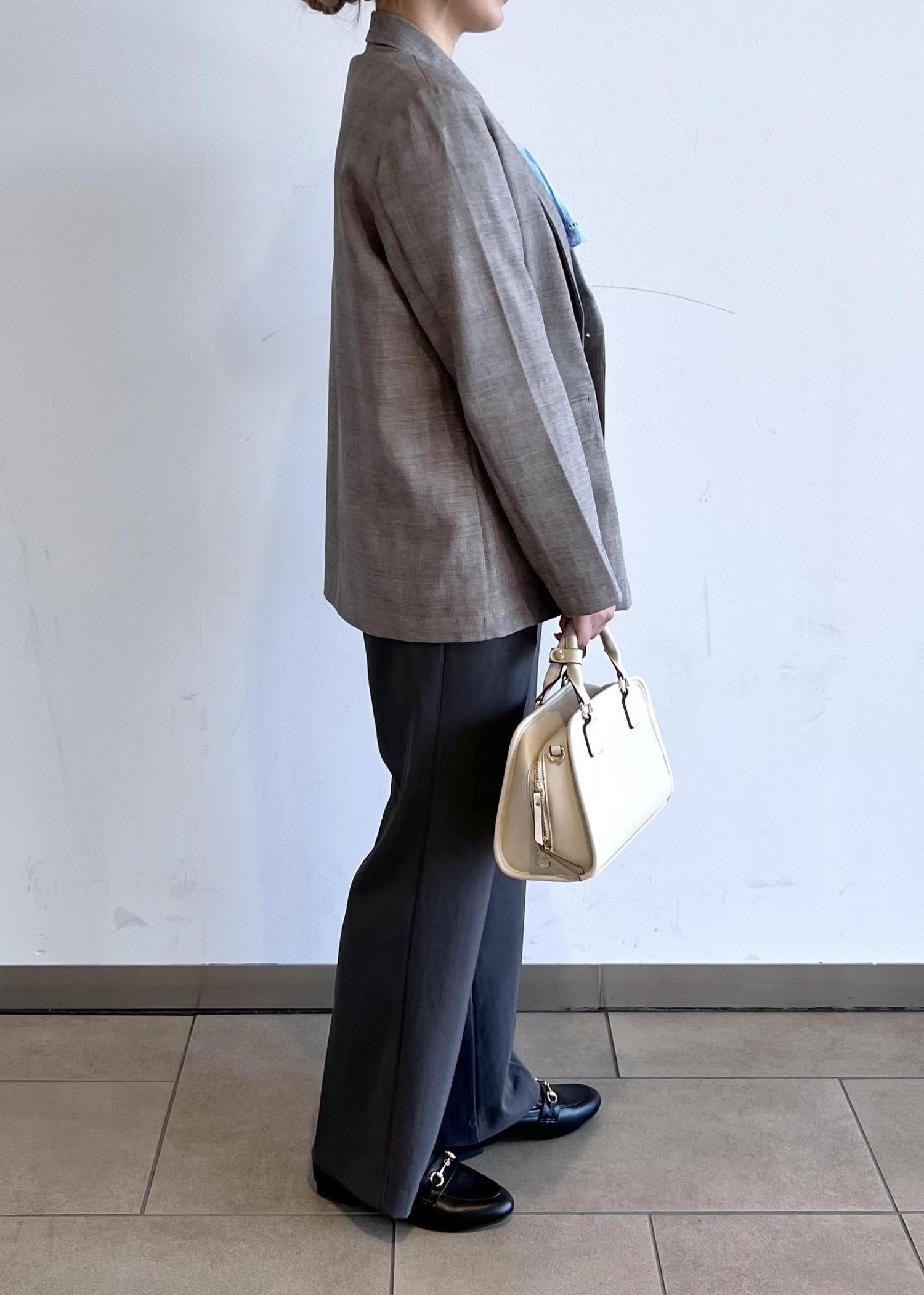 ジャケットで大人っぽい印象にしつつ水色のブラウスを合わせることで女性らしいコーディネートにしました!