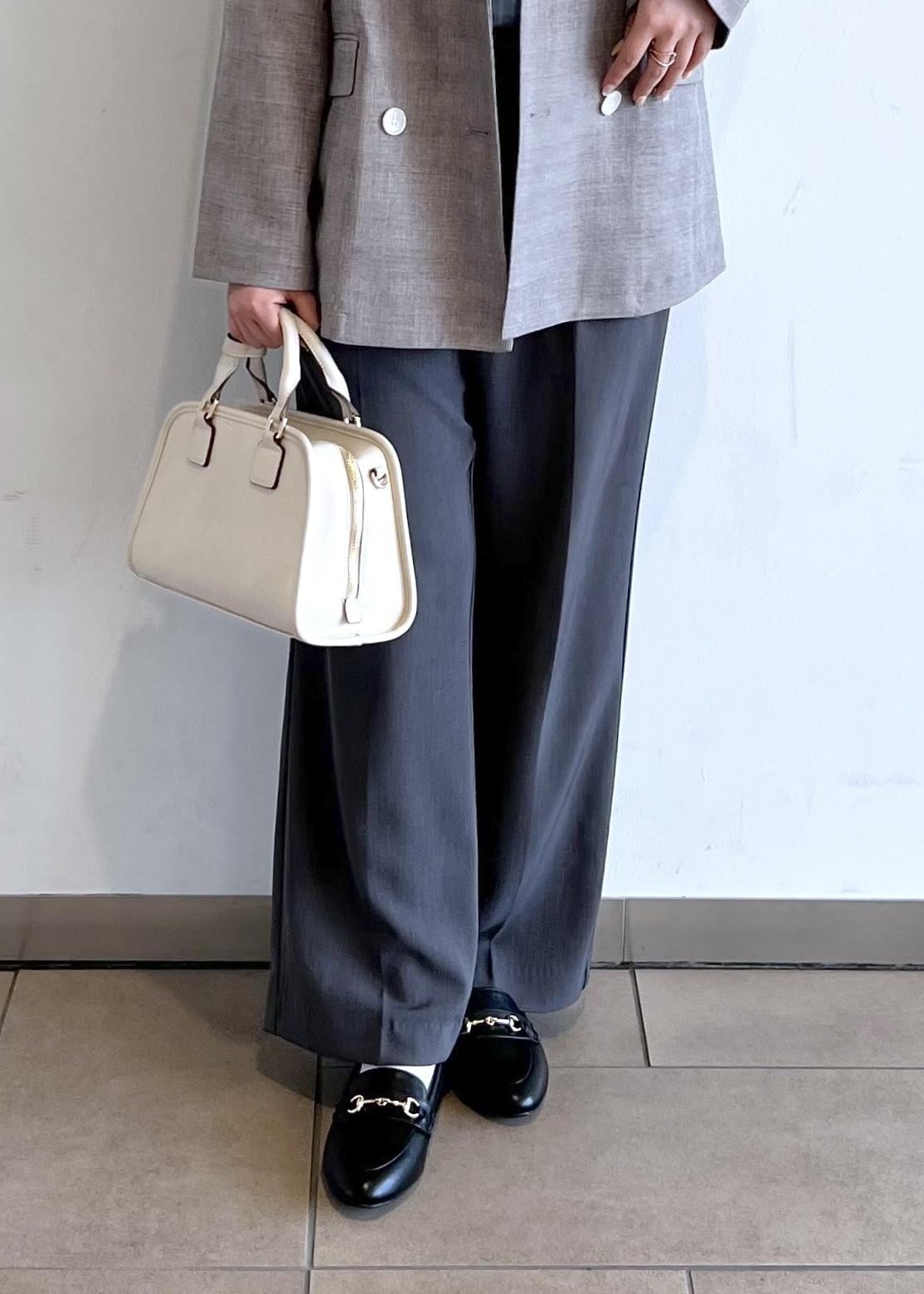 ボトムスは太さがあるパンツにすることで抜け感を出し、かっちりしすぎないコーディネートを意識しました◎