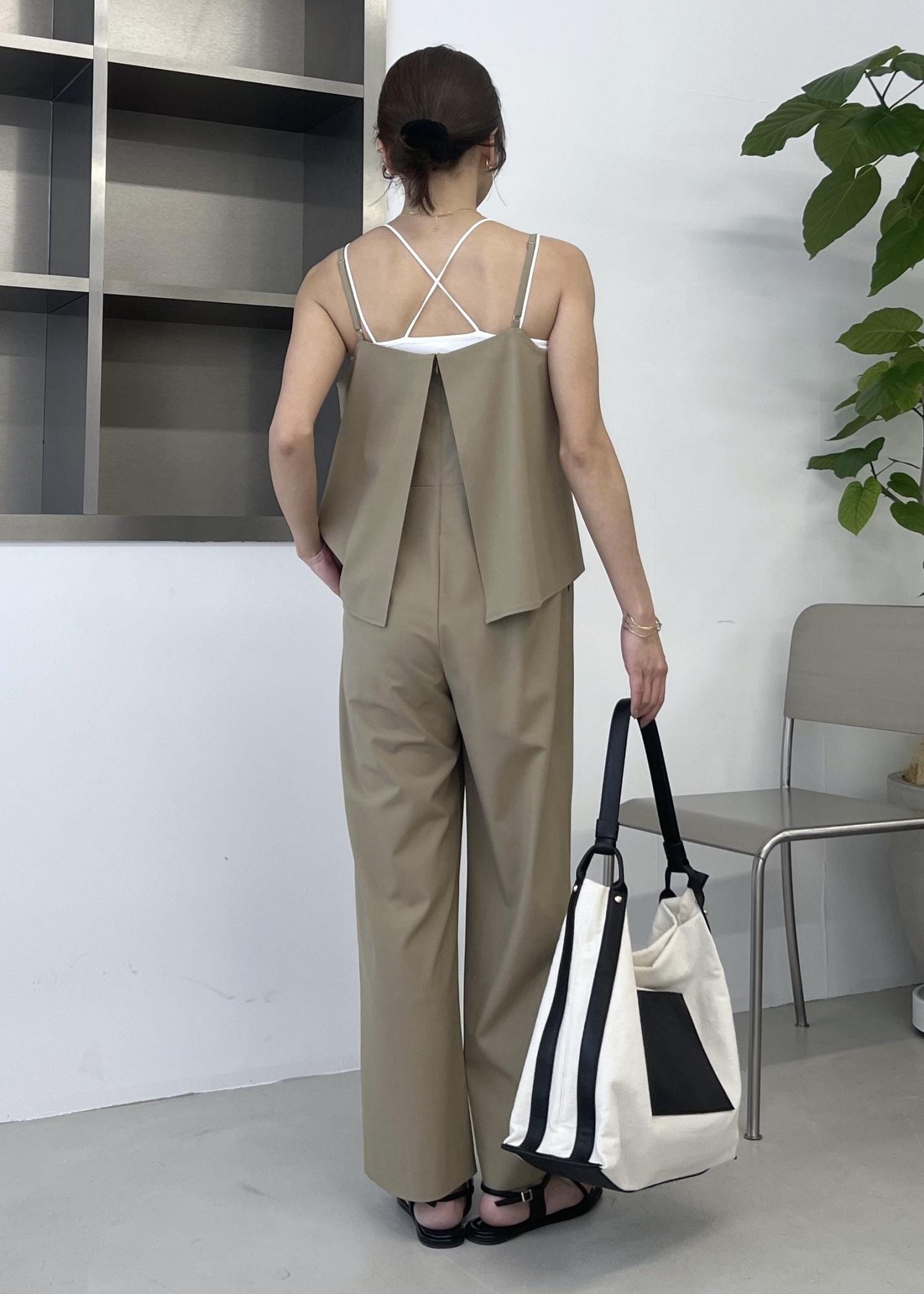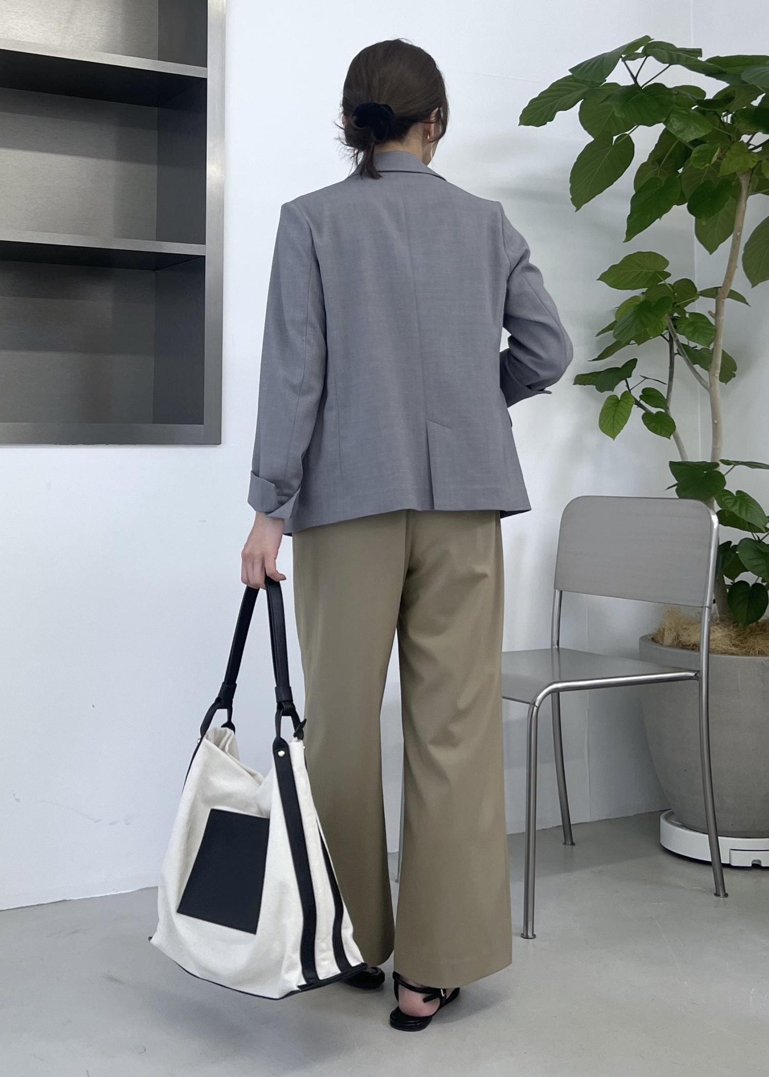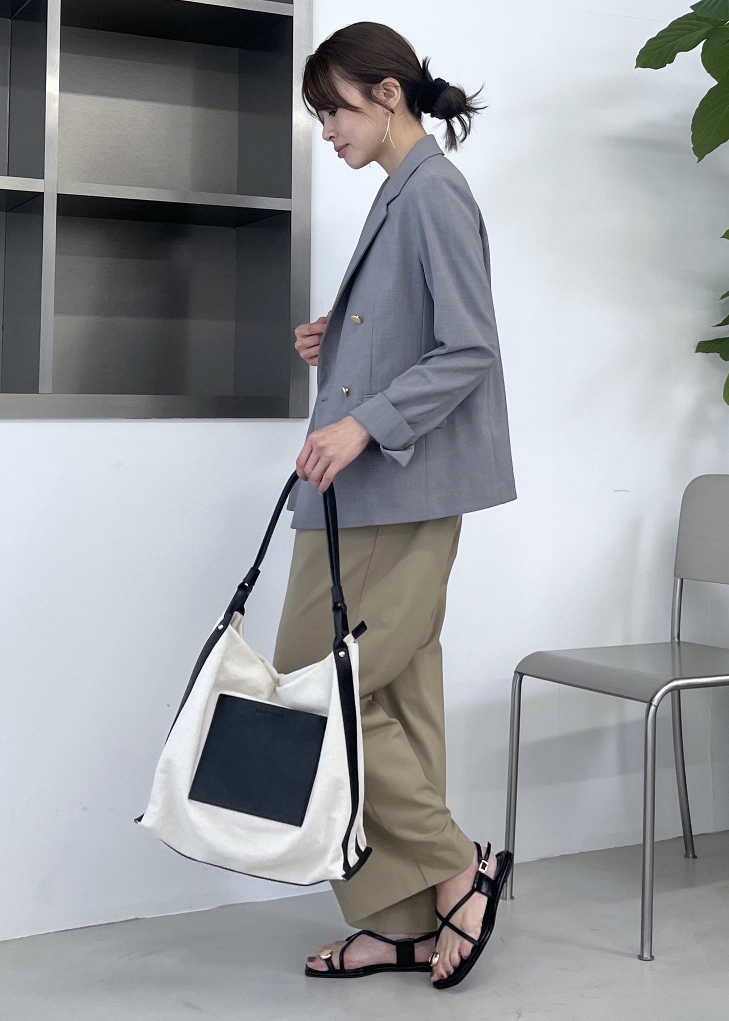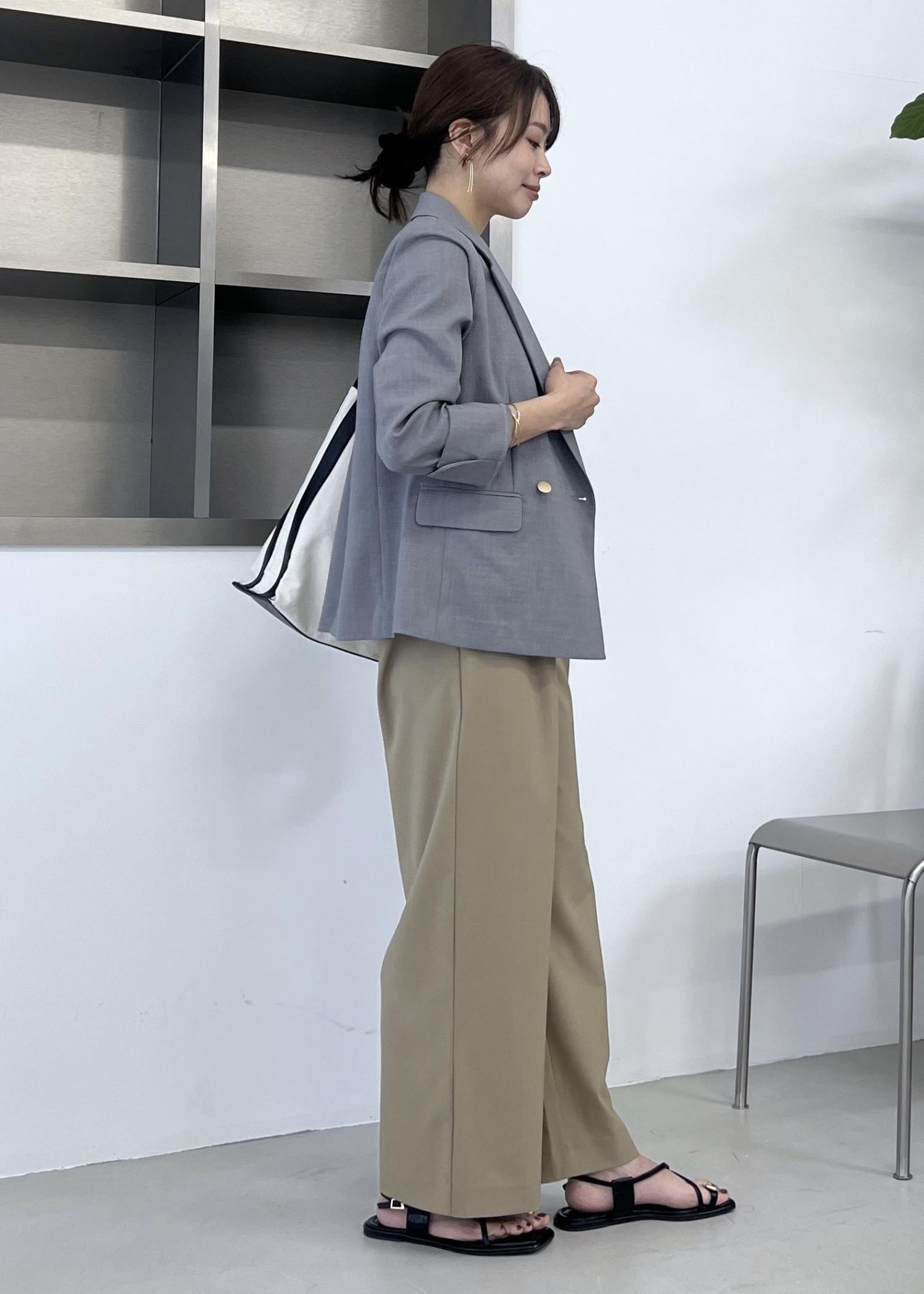 大人カジュアルに着やすいさらっとした肌触りのジャケットは、オールインワンに羽織って春夏コーデにも。