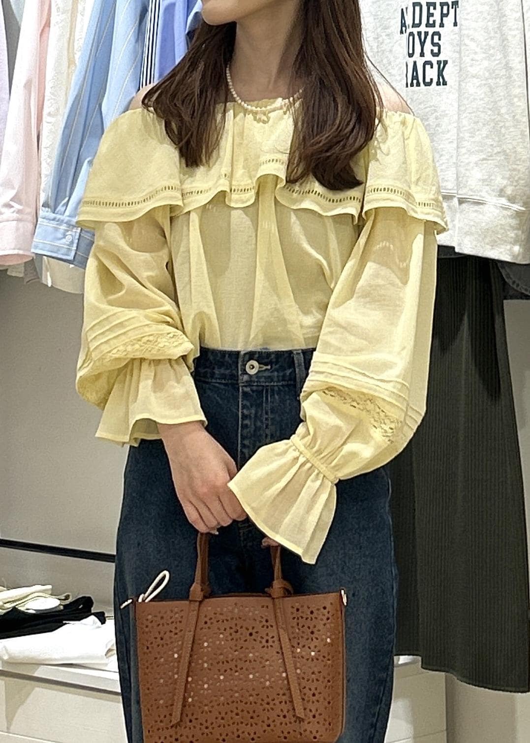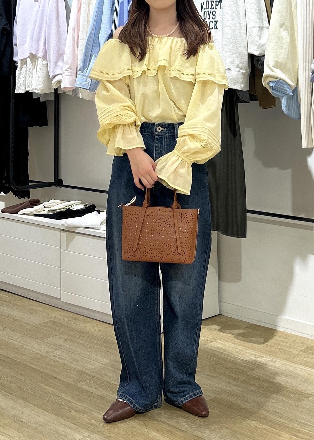 トレンド感のあるイエローと華やかなパールデニムの合わせがが、これからの春にピッタリのコーデです◎