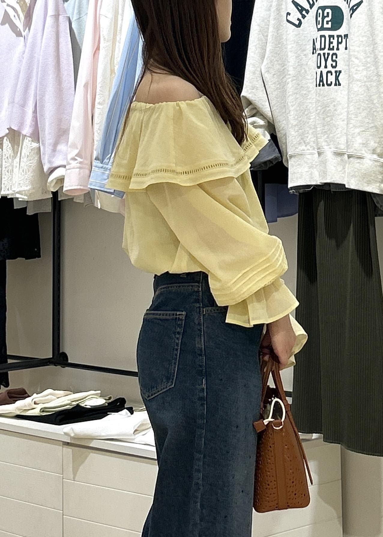 オフショルブラウス×デニムコーデ