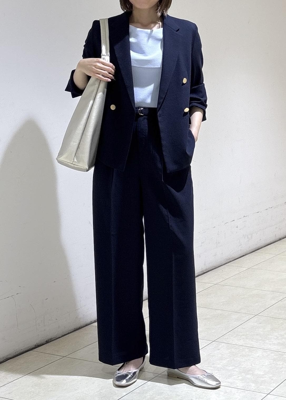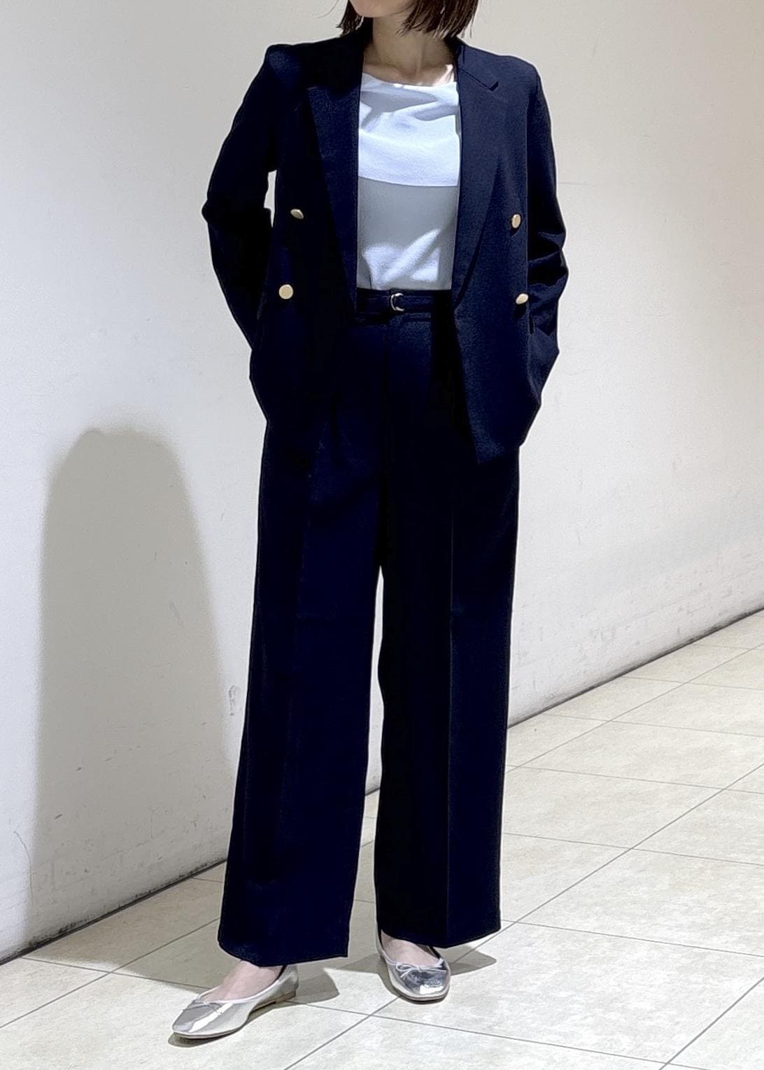 ネイビージャケットのセットアップを合わせた