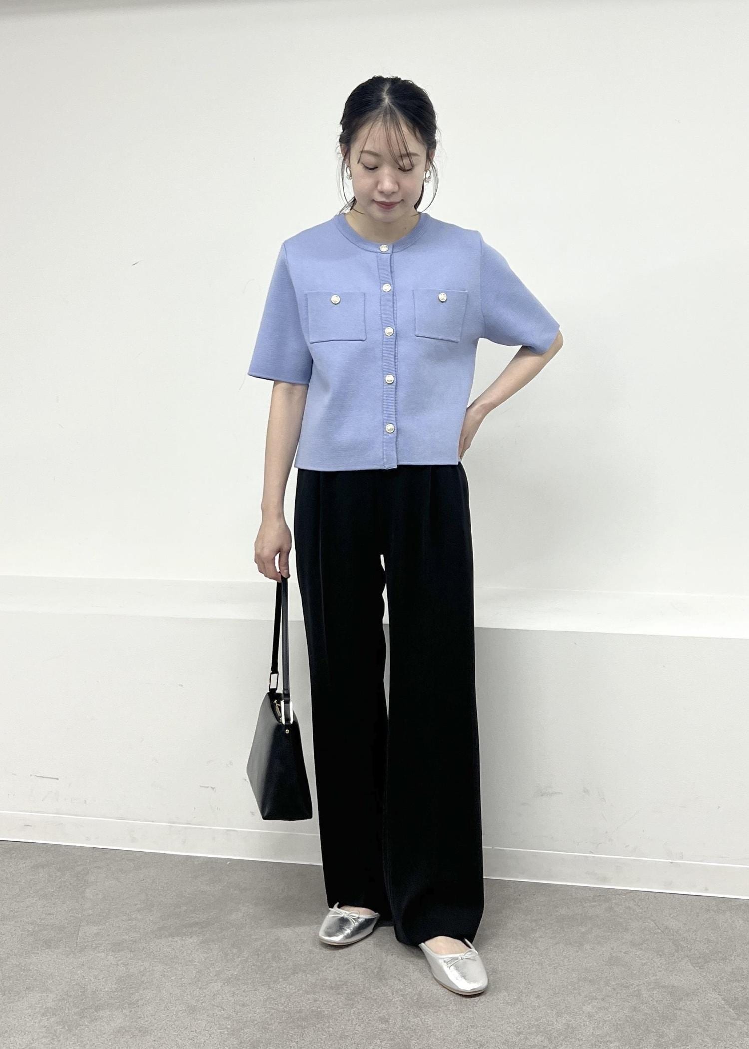 パンツは綺麗見えしつつ楽ちんな履き心地なので、お仕事にぴったり◎