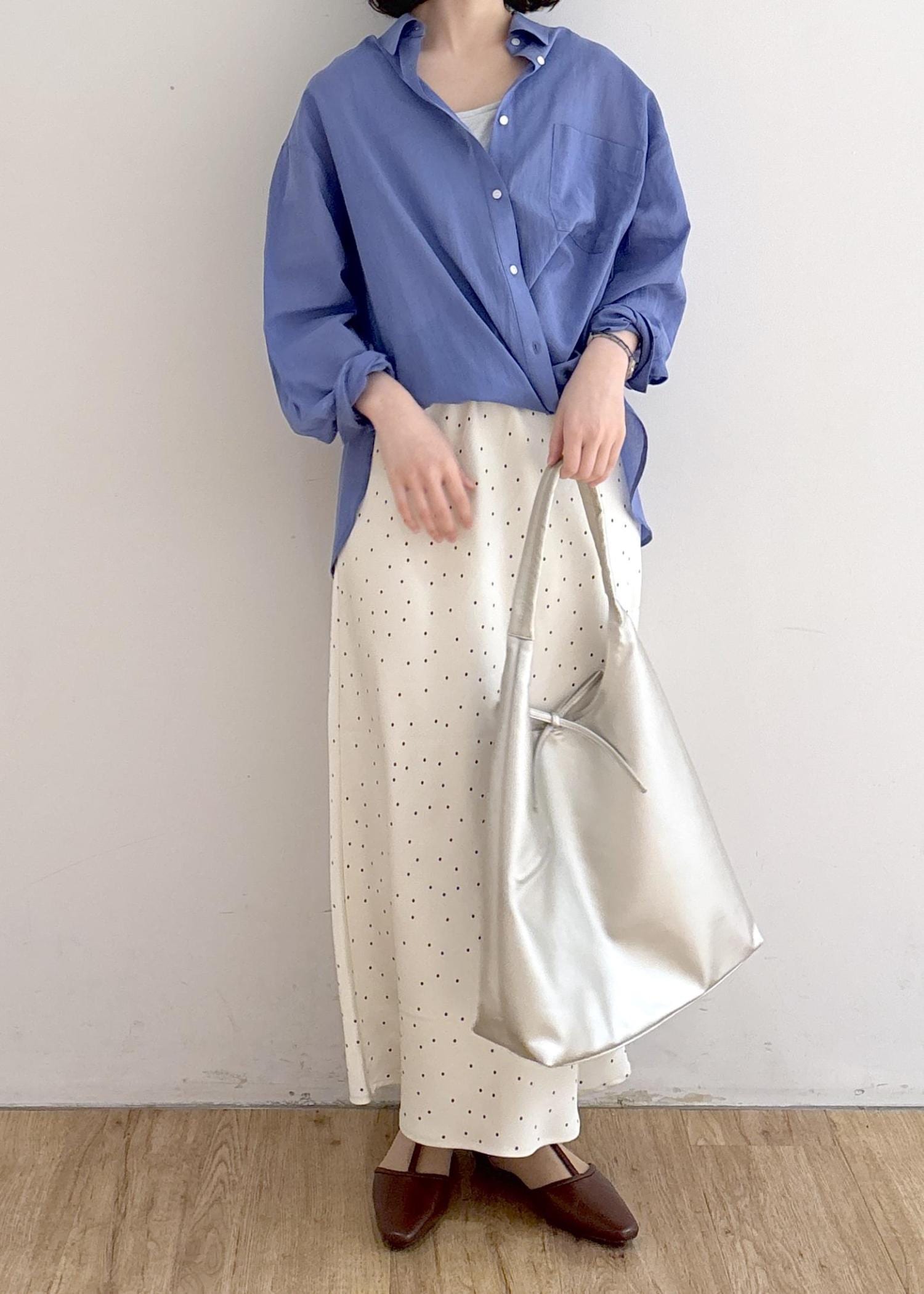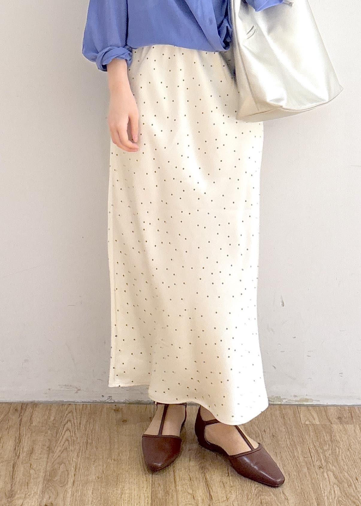 ROPÉ PICNIC細見えバイアスサテンドットスカートキナリ系 / F¥6,490レビュー・163cmでくるぶし見える丈