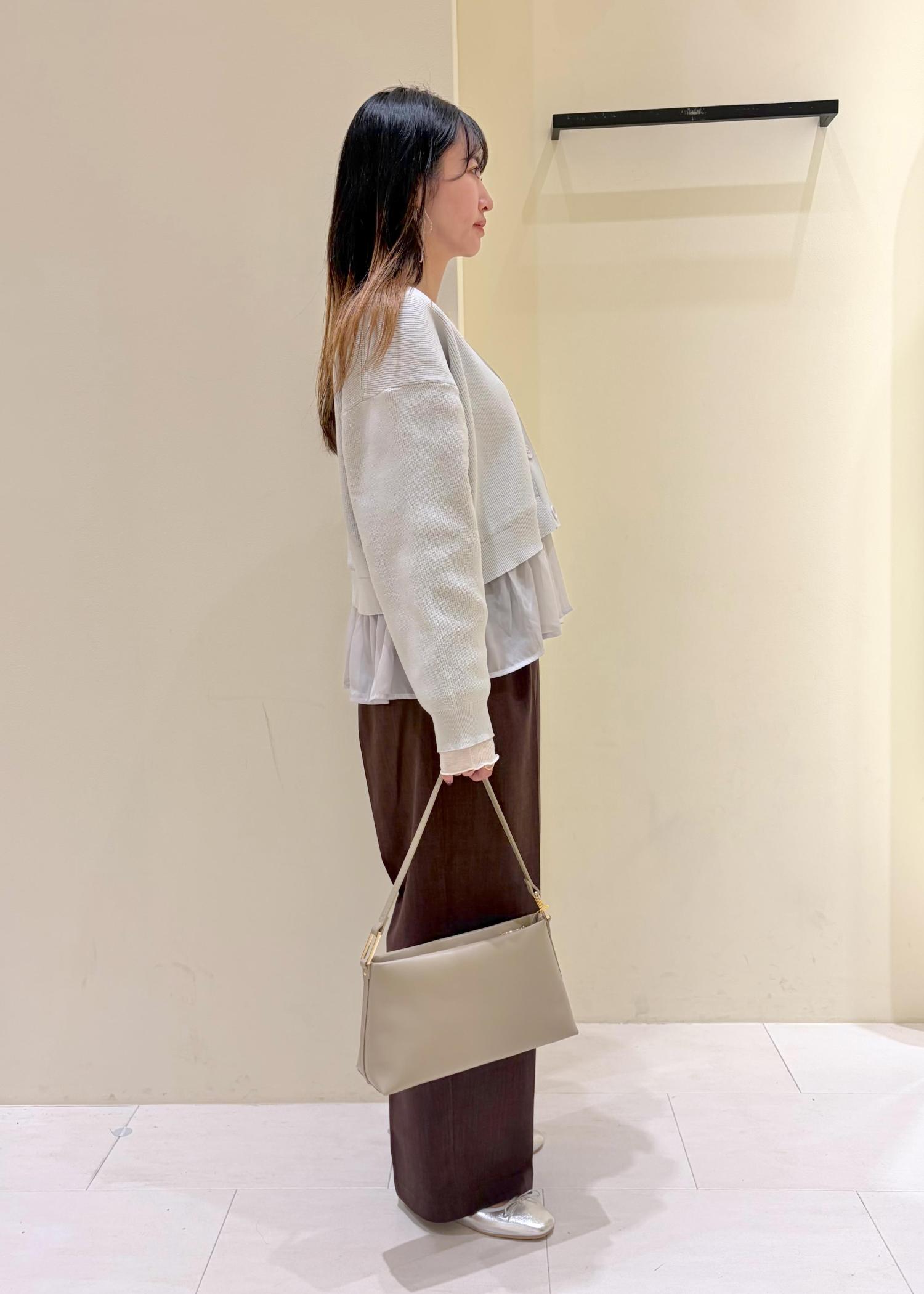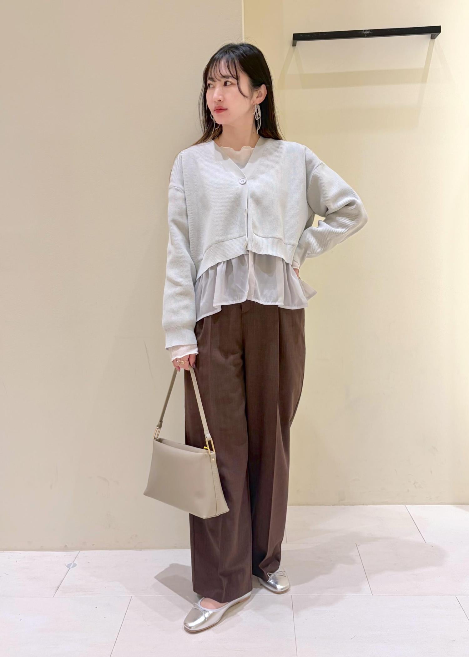 異素材ドッキングのカーディガンでさり気なく体型カバーできるコーディネート◡̈