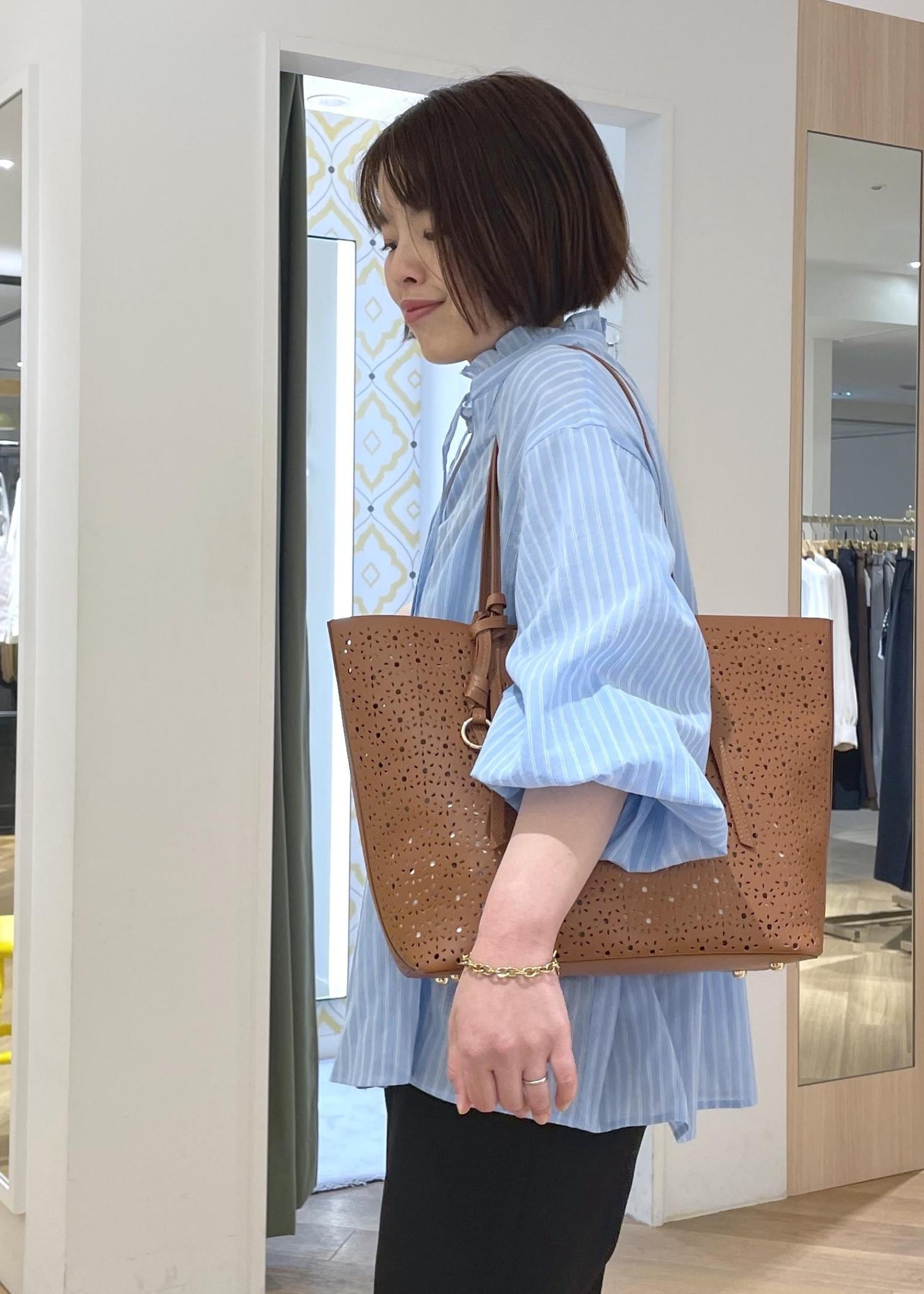 ROPÉ PICNIC PASSAGEフルーレットパンチングレーストートバッグ/A4対応ブラウン / F¥7,491レビューパンチングレースが爽やかで持つだけでポイントになるトートバッグです。A4サイズの収納もでき、マチもしっかりあるので収納力も抜群です。長めのハンドルなので肩にもかけやすかったです。中に巾着も付いているので、透けを気にせず使って頂けます。