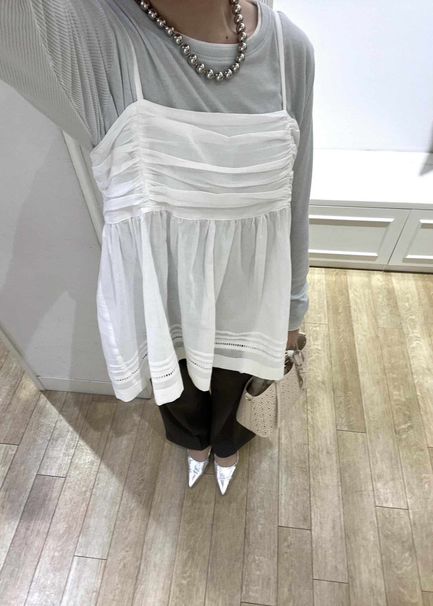 お気軽シリーズのキャミソールをメインにしたコーディネートです。