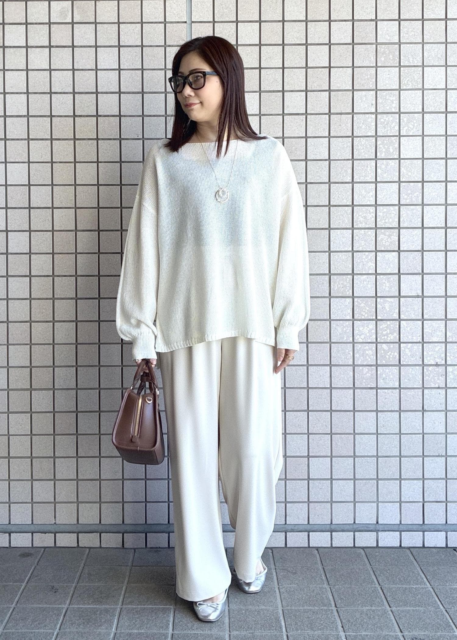 さらっとした生地感のニット素材で、伸縮性もあり楽にお召しいただけます! -