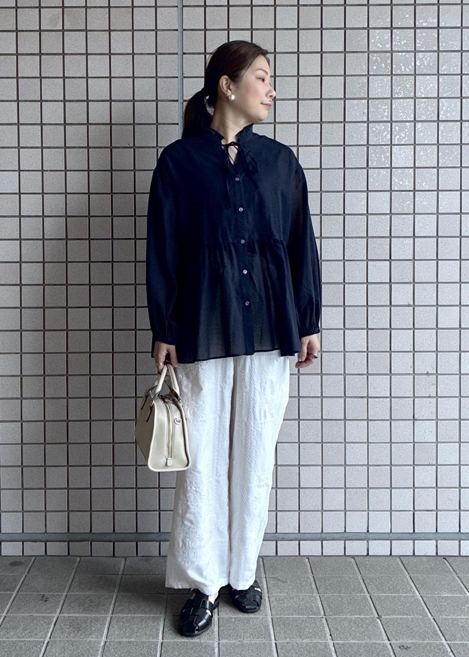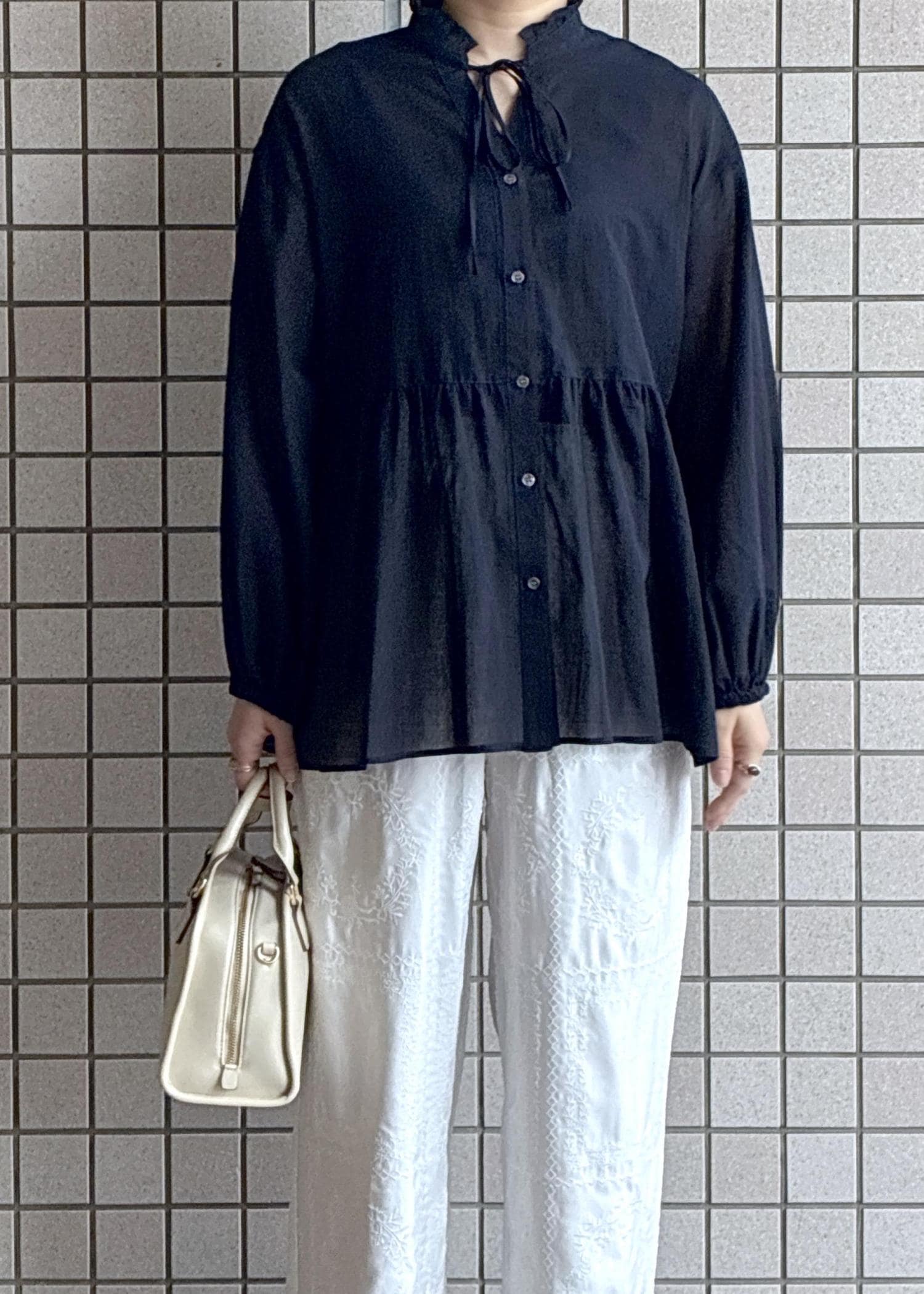 お着軽シャツシリーズ フリルカラーシアーペプラムブラウス/接触冷感・通気性