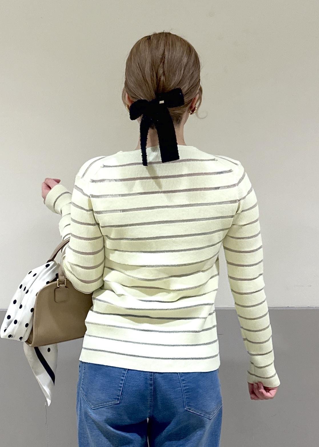 ROPÉ PICNICシアーボーダーニットカーディガンクリーム / F¥5,489レビューラメの入った糸でシアー感のあるストライプが可愛いカーディガンです!