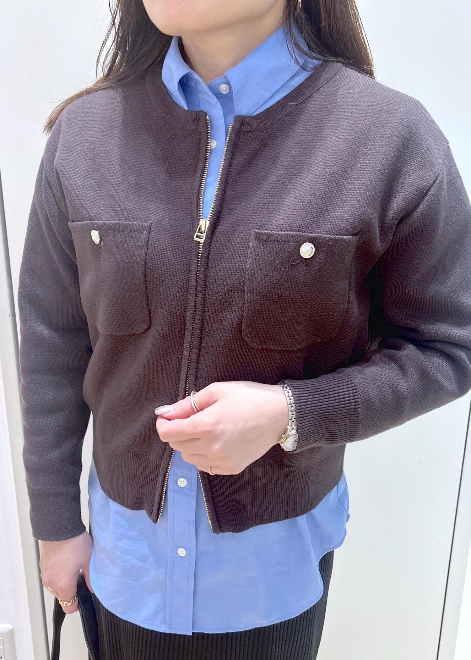 ROPÉ PICNICミラノリブダブルジップニットカーディガンダークブラウン / F¥6,490レビューミラノリブ素材のWジップカーディガン。