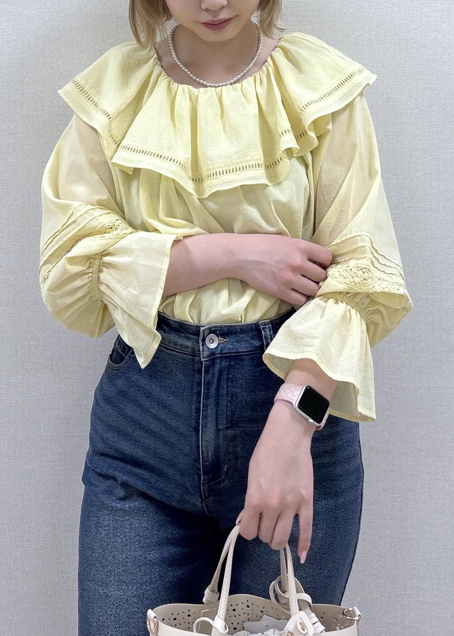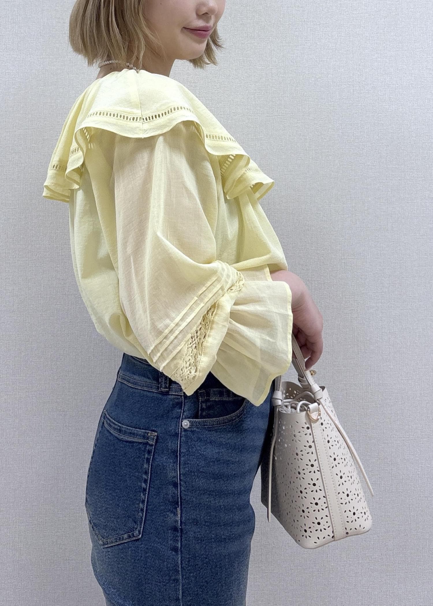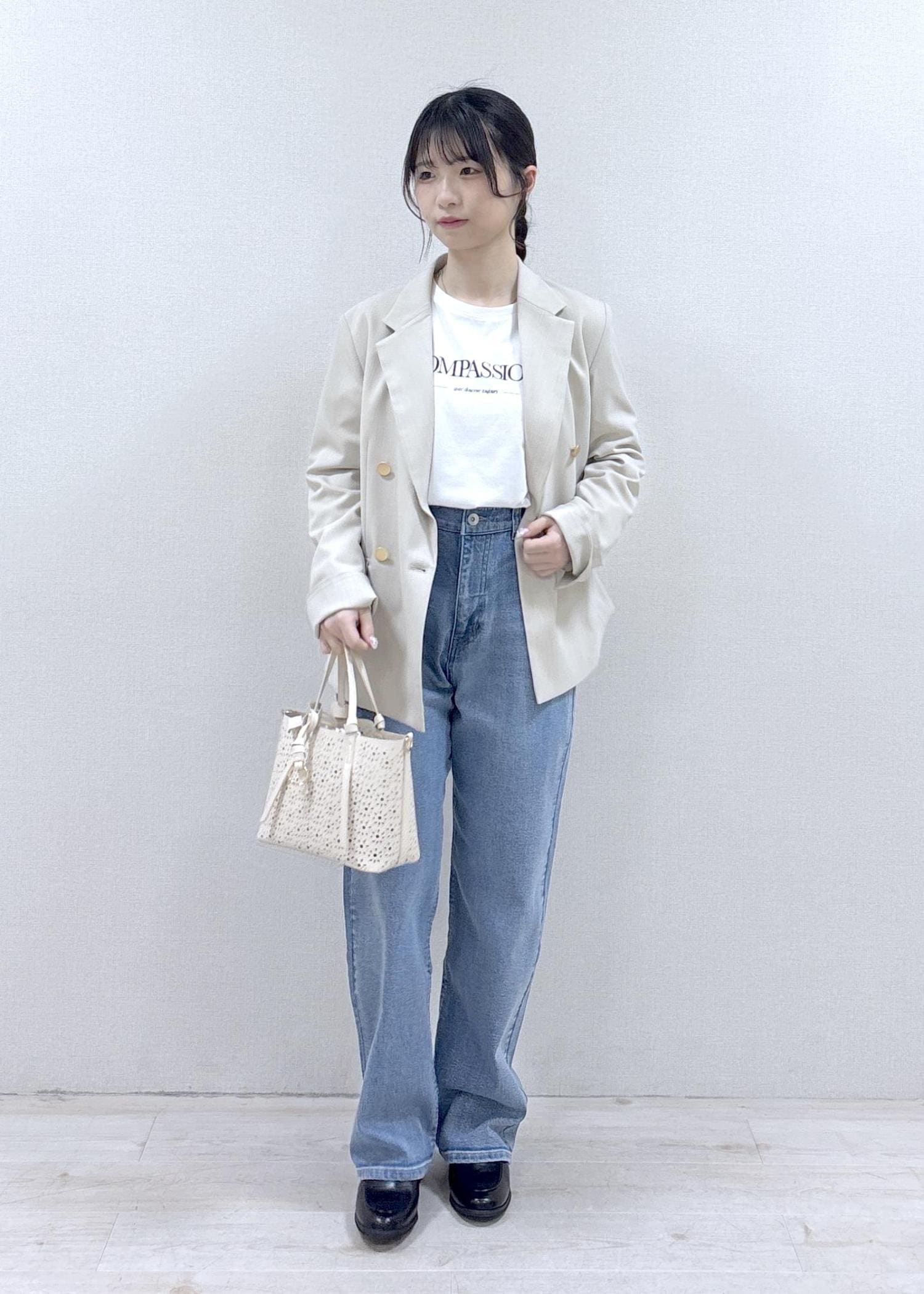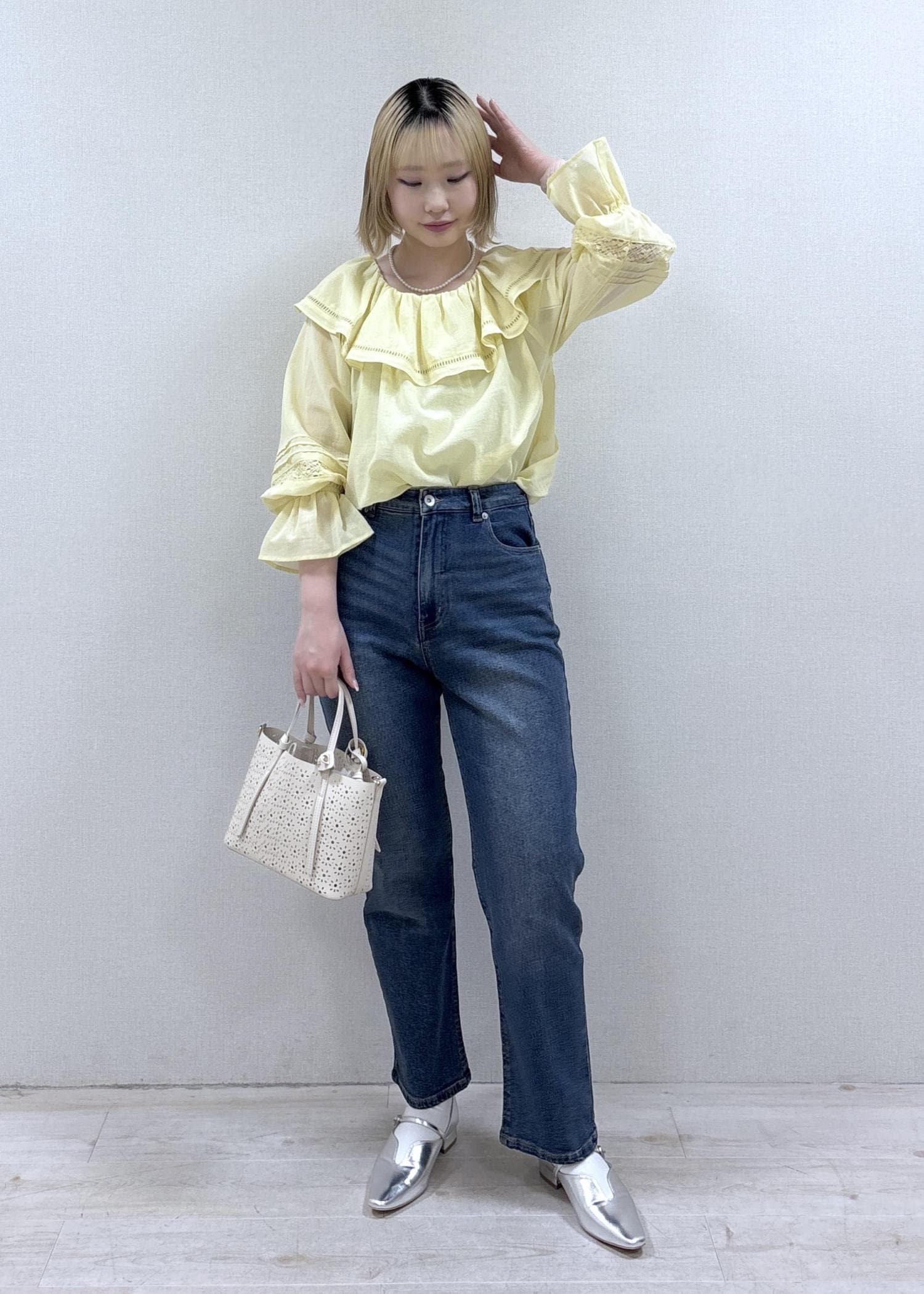 デニム合わせで甘すぎない印象にしてみました。