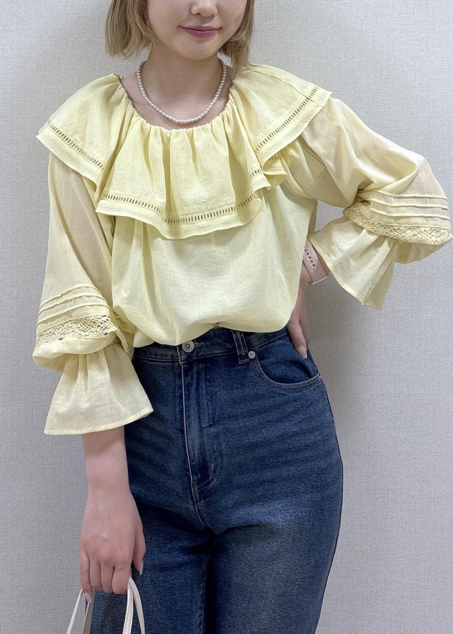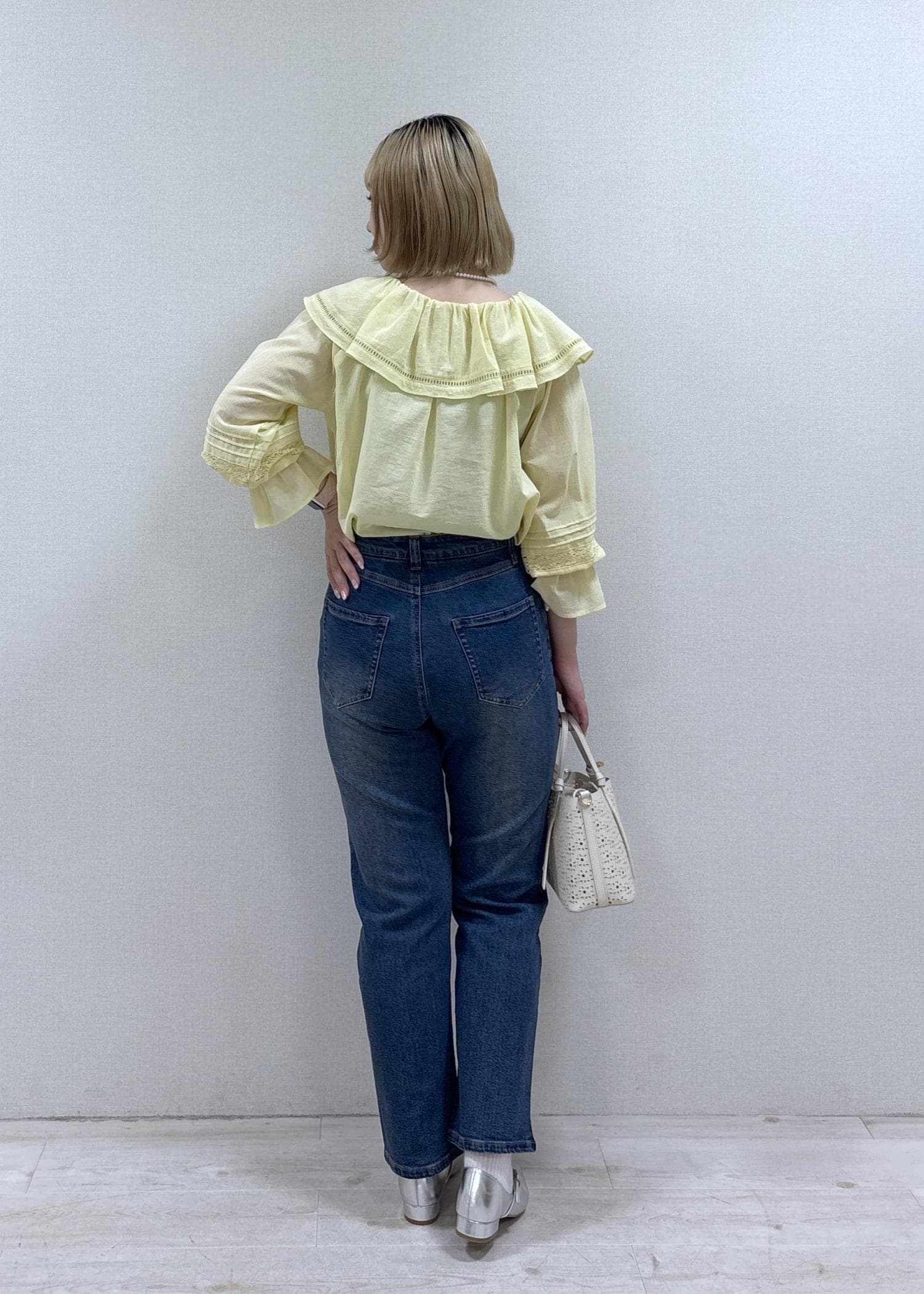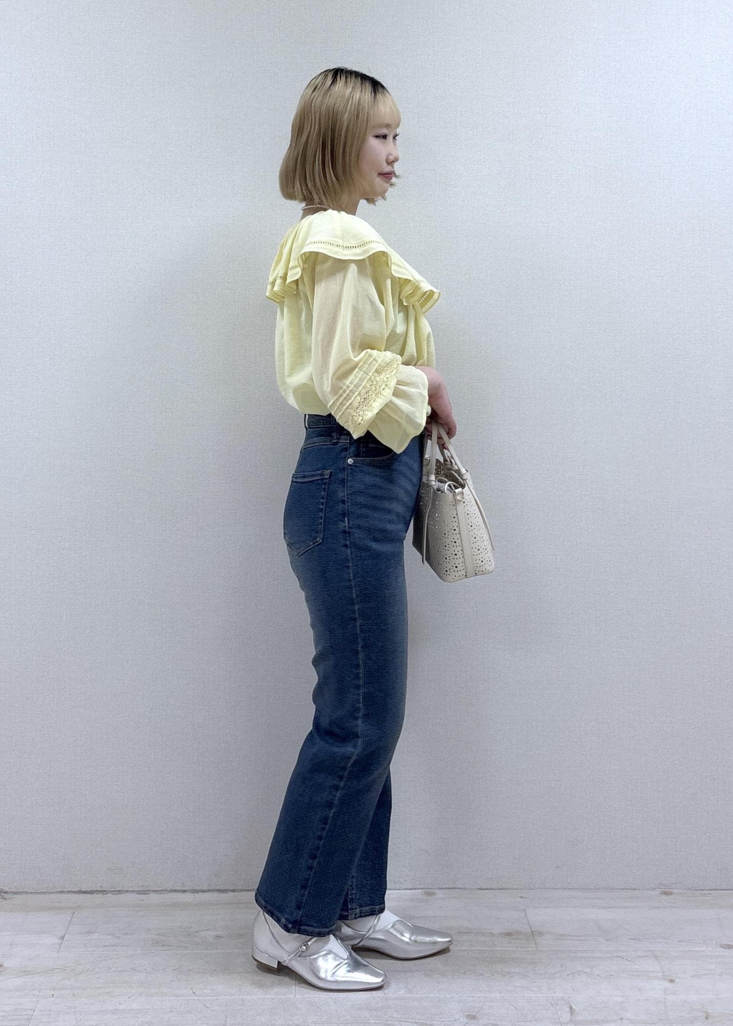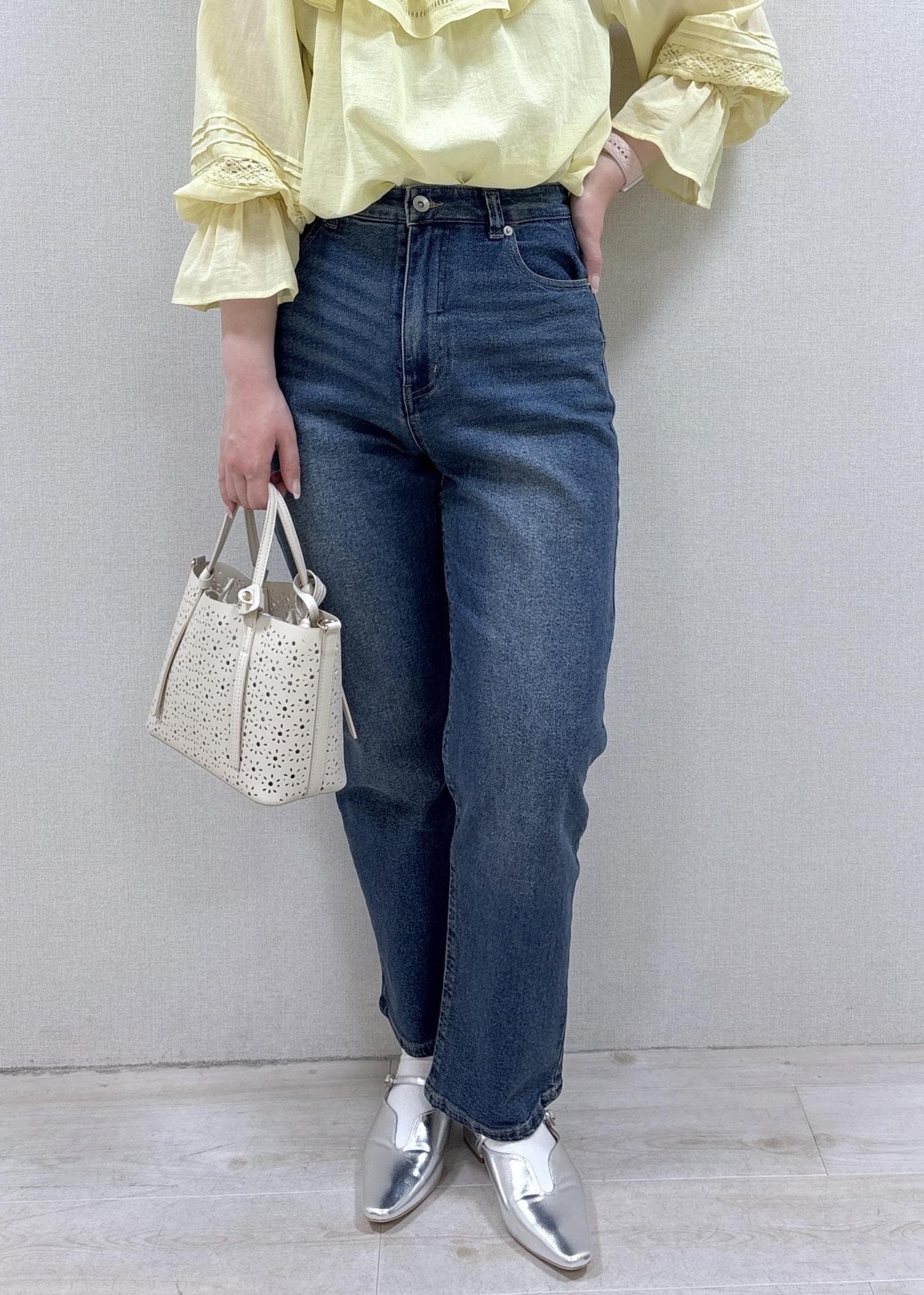 デニム合わせで甘すぎない印象にしてみました。