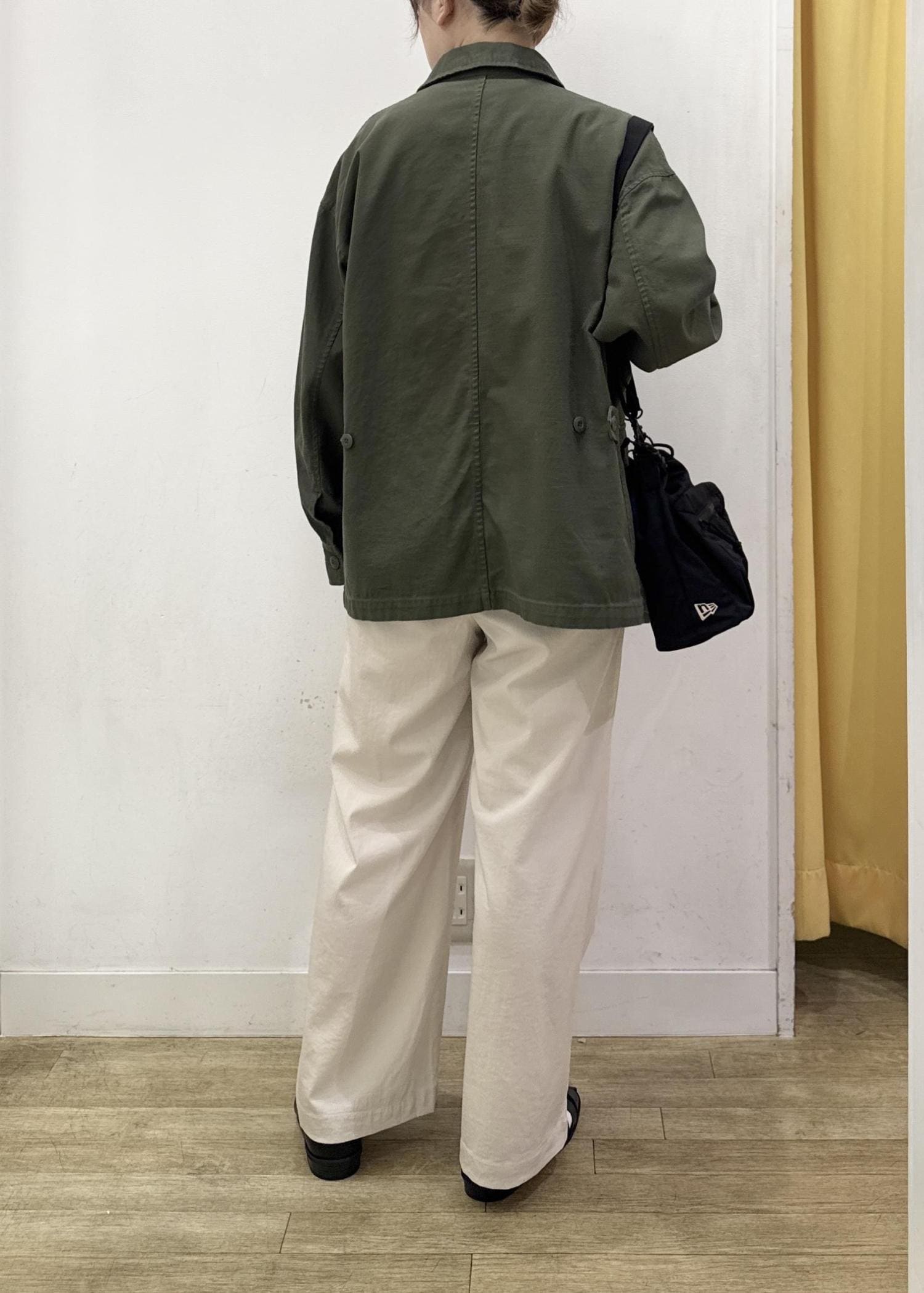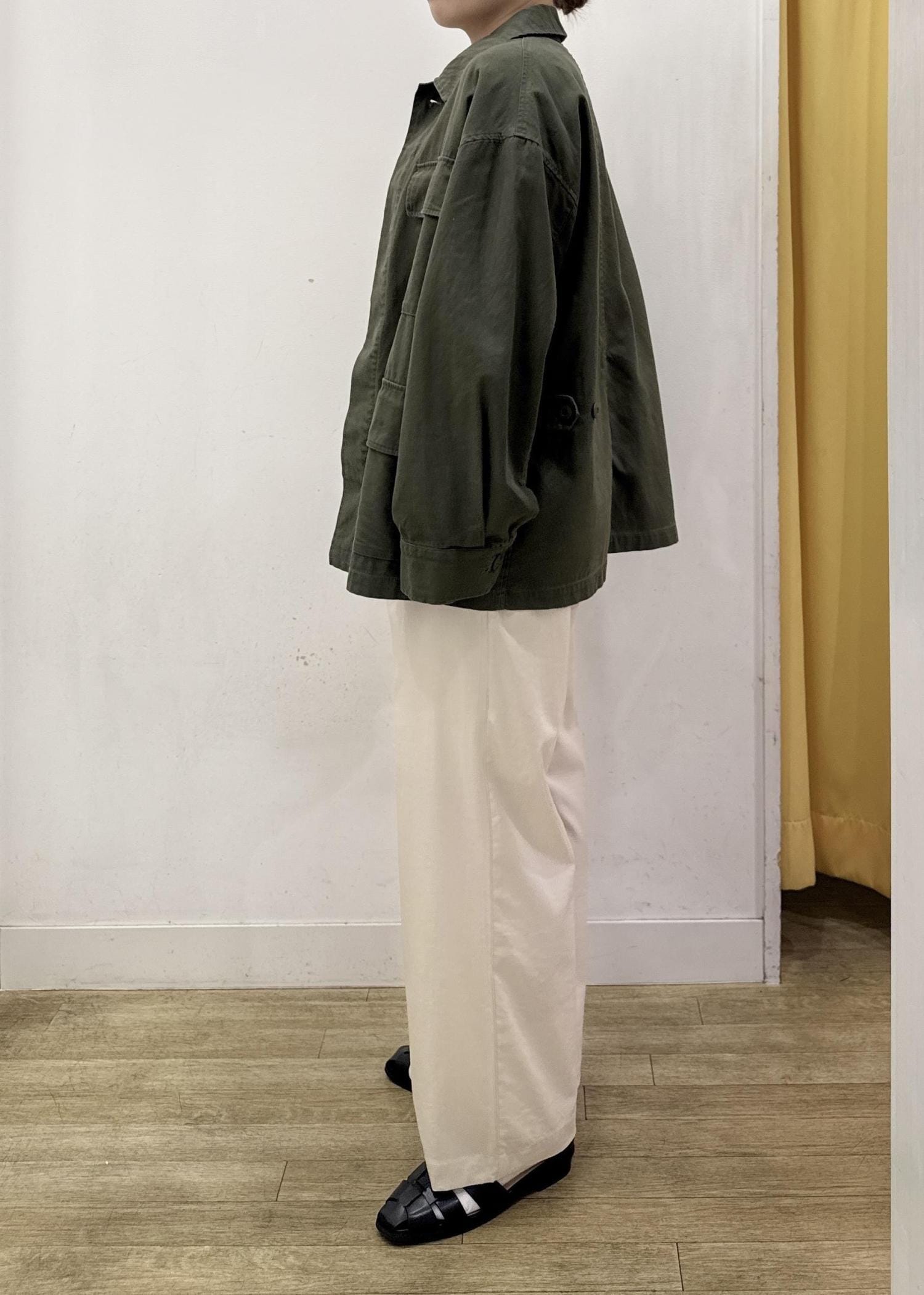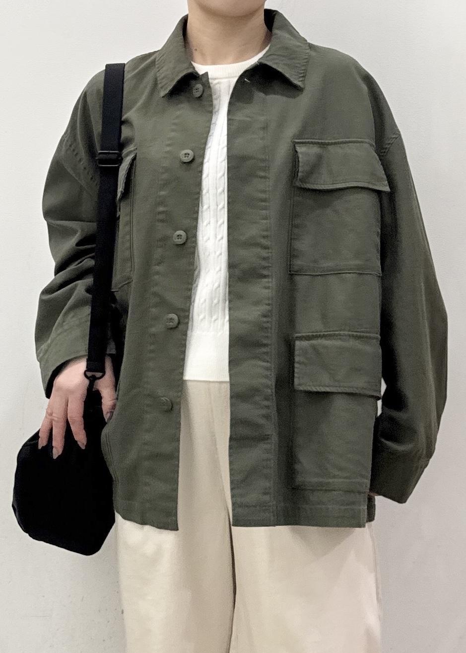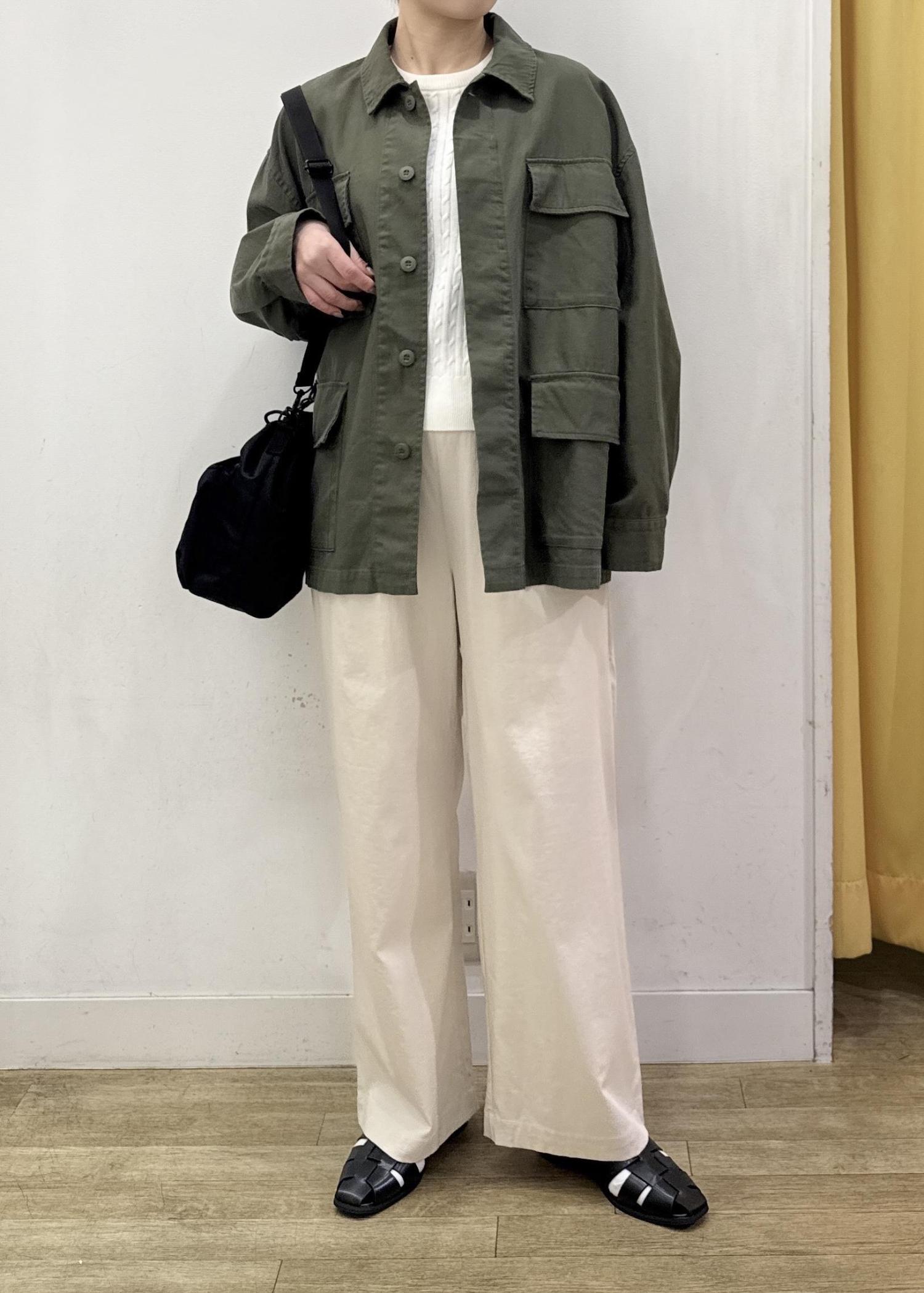 ヒップをカバーできるぐらいの着丈で、パンツ、スカート、ワンピースなど様々なシルエットのアイテムとも相性◯ -