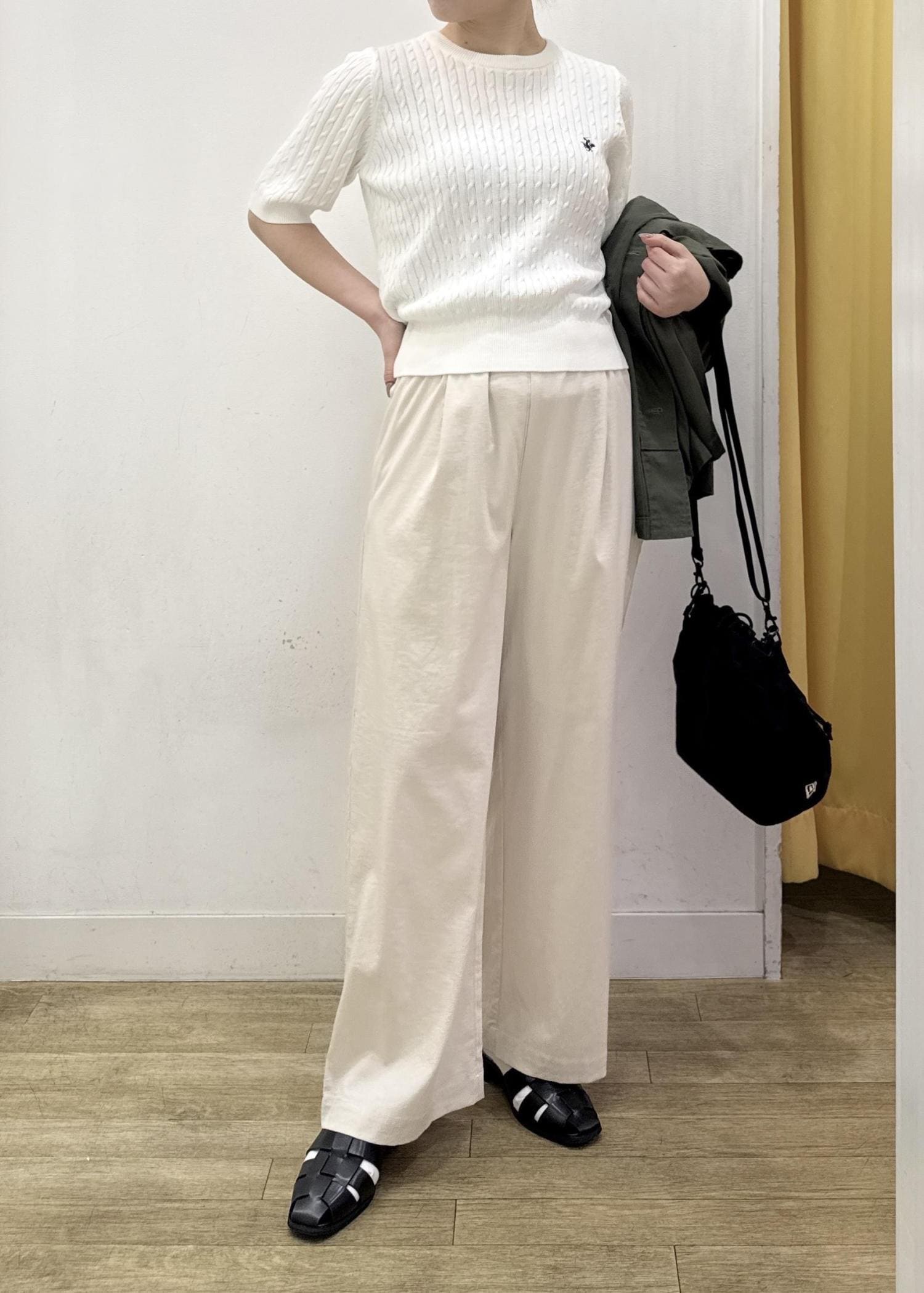サラッと薄手の素材感で暑い時期にも穿きやすいオススメのワイドパンツです。 -