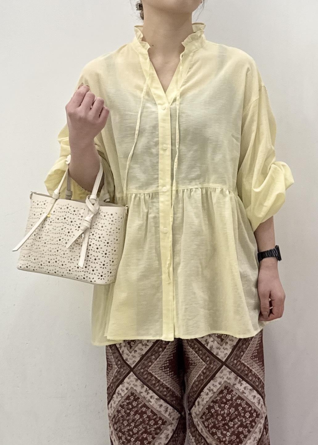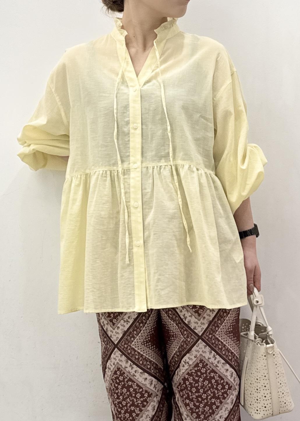 お着軽シャツシリーズ コットンボイルスタンドフリルシャツ/接触冷感・通気性