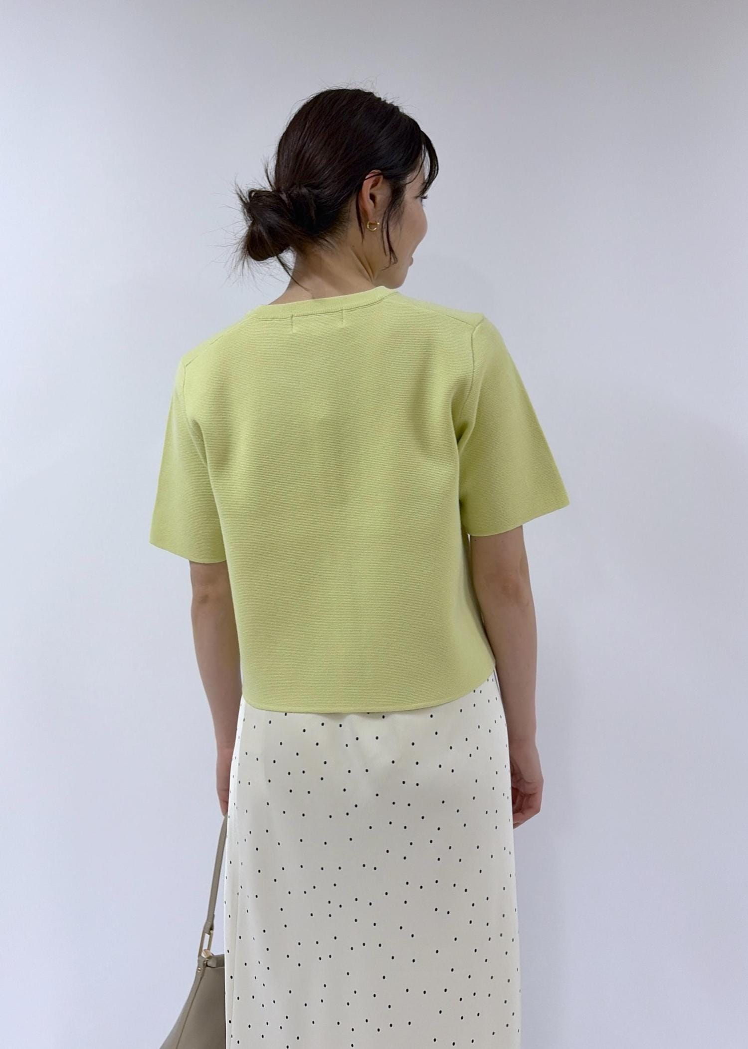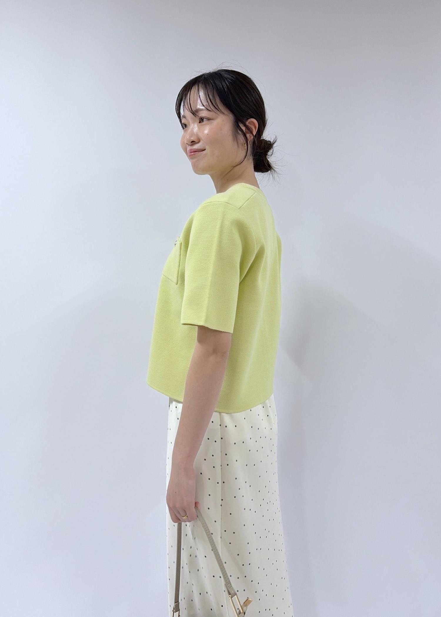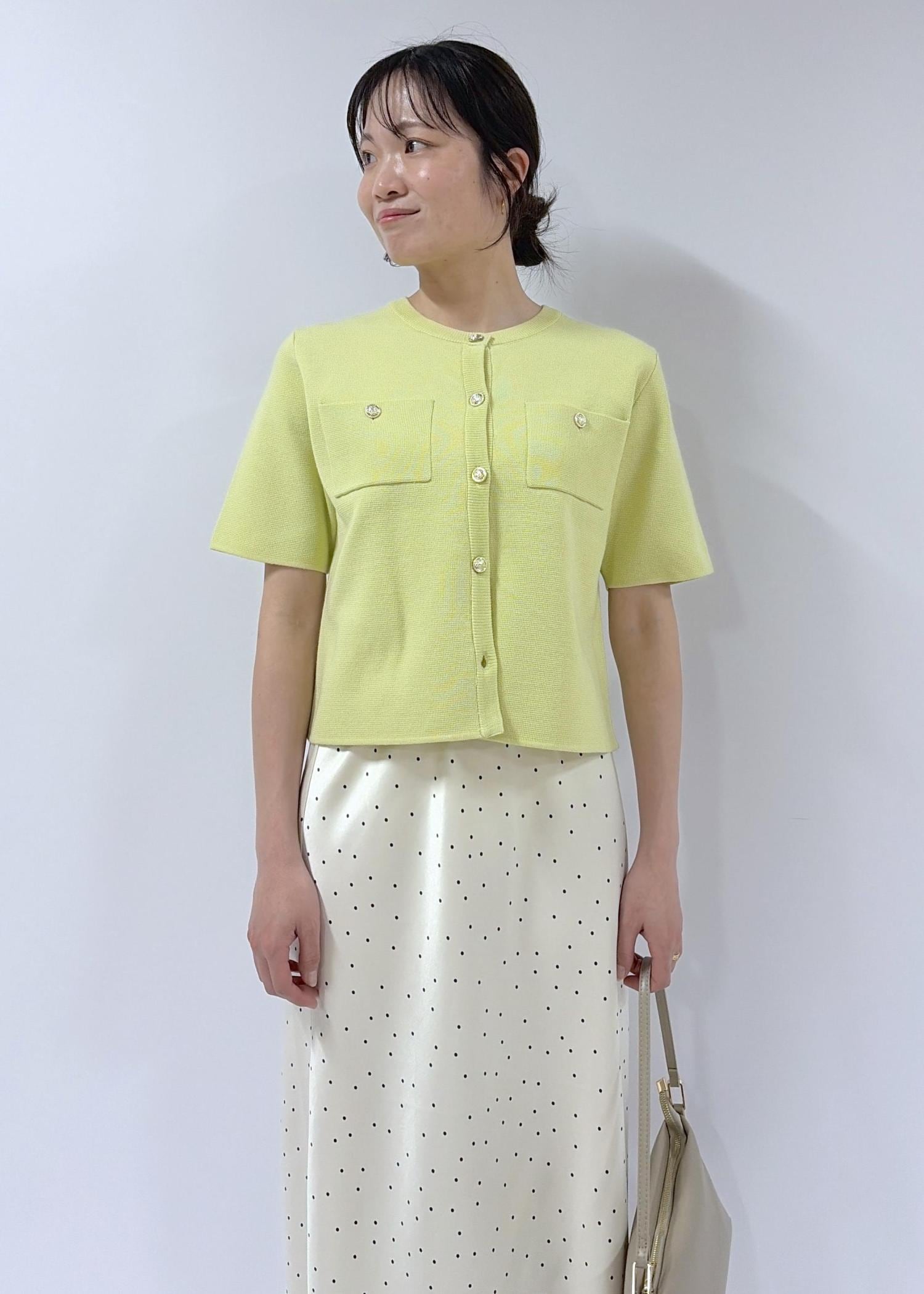 ROPÉ PICNICミラノリブ金ボタン半袖カーディガンキミドリ / F¥5,489レビュー毎年人気のミラノリブシリーズ。目の詰まったニットで少し張りのある素材感。前を開けて羽織でも着やすいカーディガンです。
