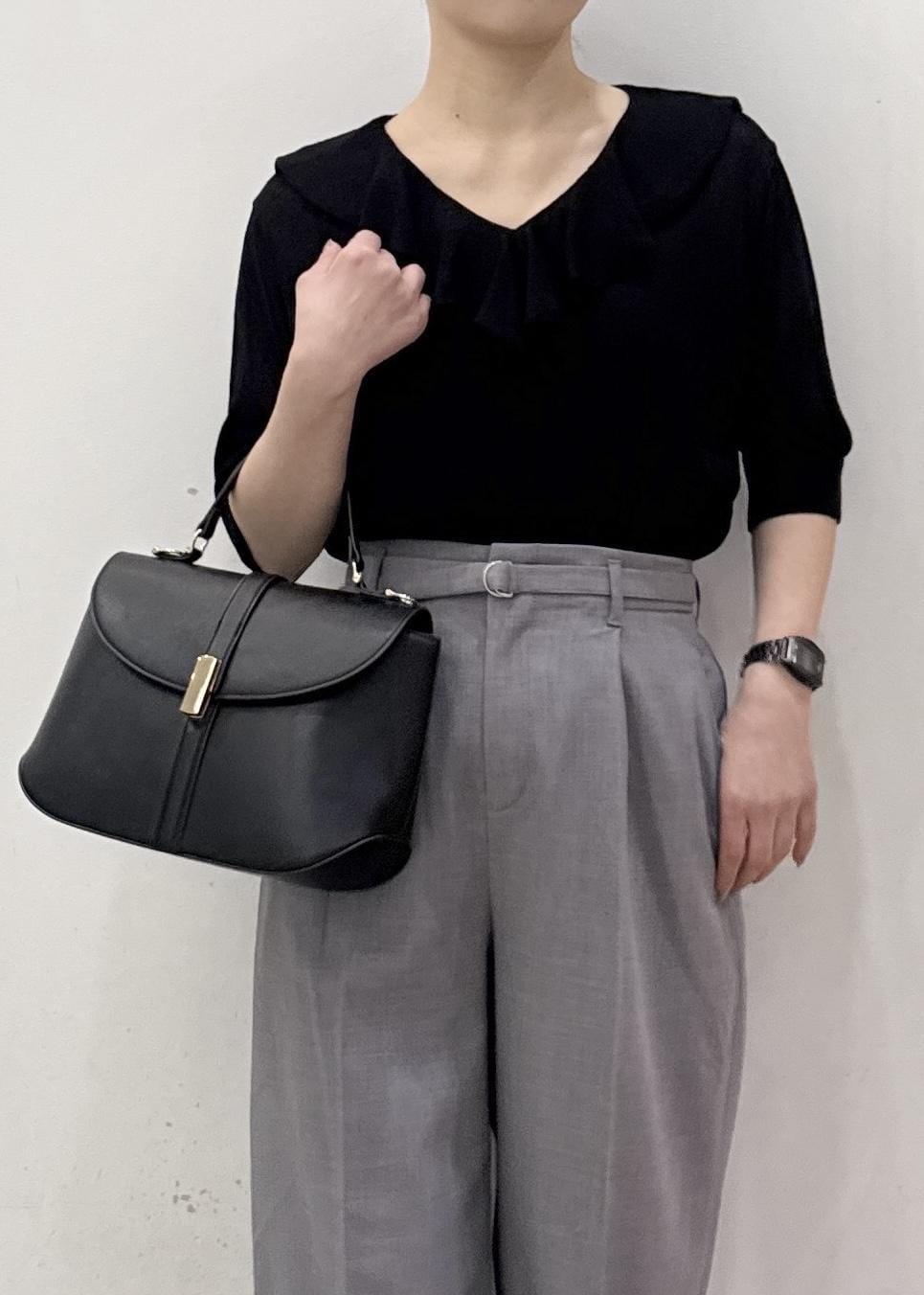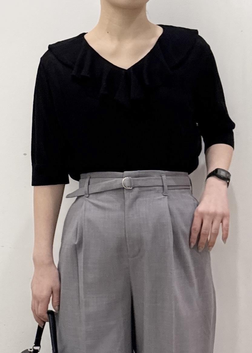 ROPÉ PICNIC5分袖フリルニットブラック / F¥4,994レビューひじが隠れるぐらいの少し長さのある袖丈で、気になる二の腕をカバー!