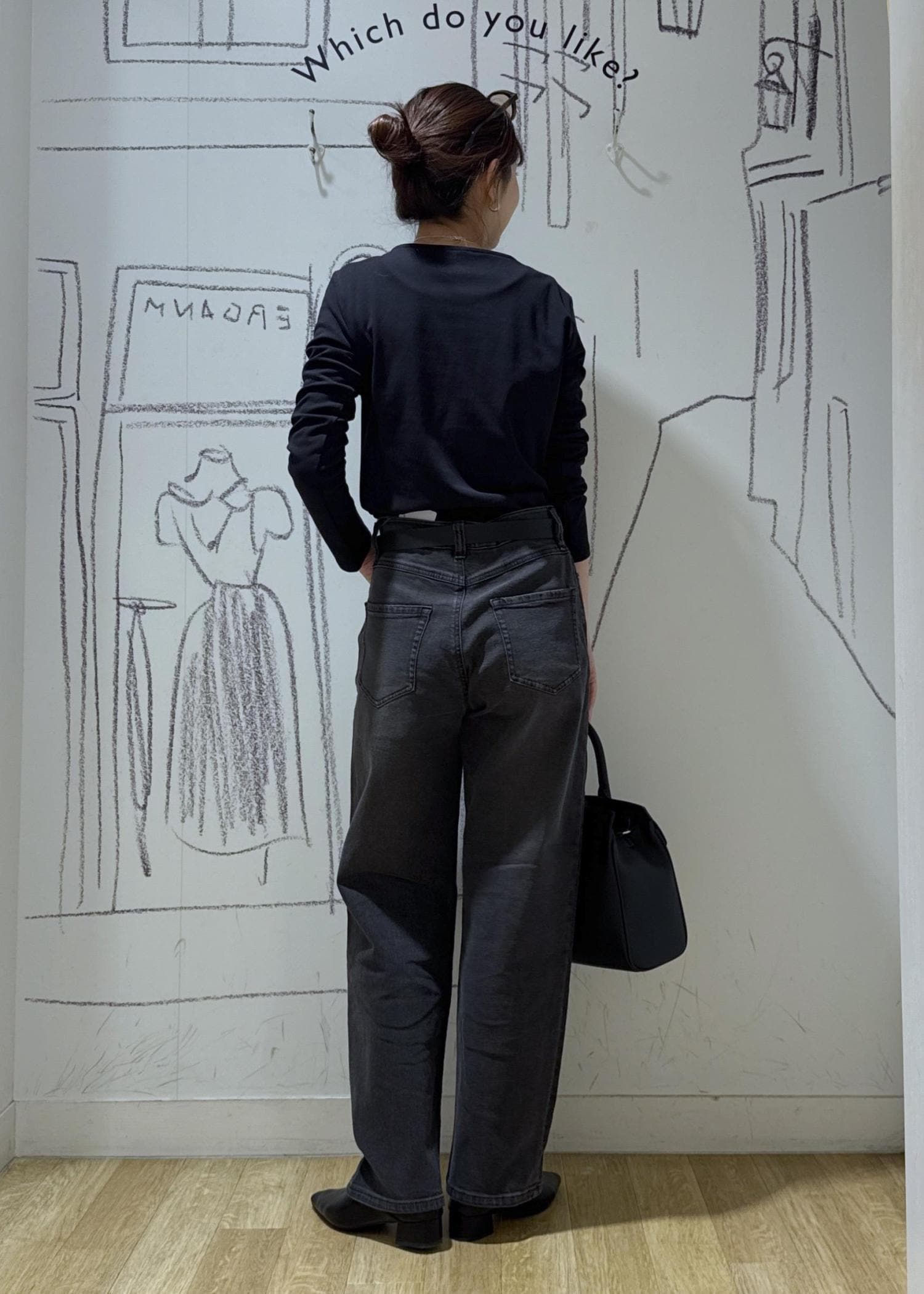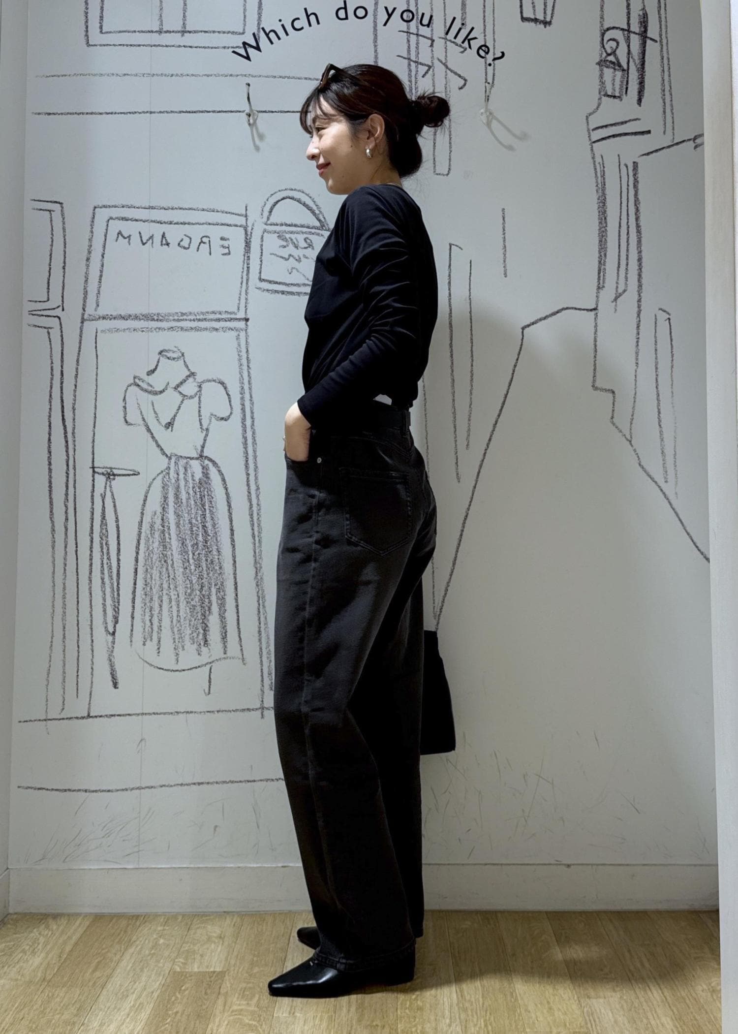 ROPÉ PICNICウエストシェイプハイライズマムジーンズブラック / L¥6,490レビューウエストのフィット感がちょうど良かったです。今回は丈が欲しかったのでLサイズを着用。ウエストは緩くなりますがベルトで抑えれば問題なし。着丈は少しヒールのある靴であればちょうどいい長さでした。デニム特有の硬さはなくストレッチも効いているので楽な履き心地です。