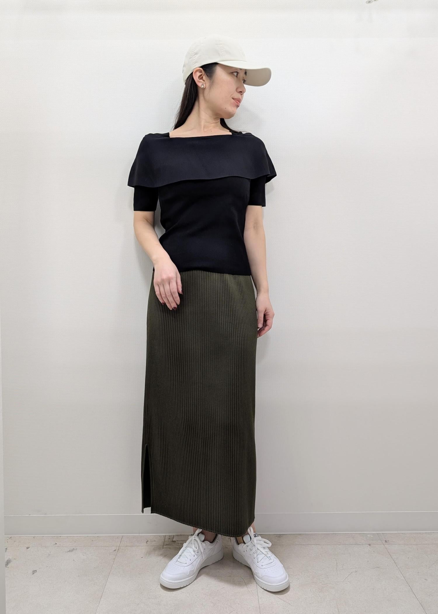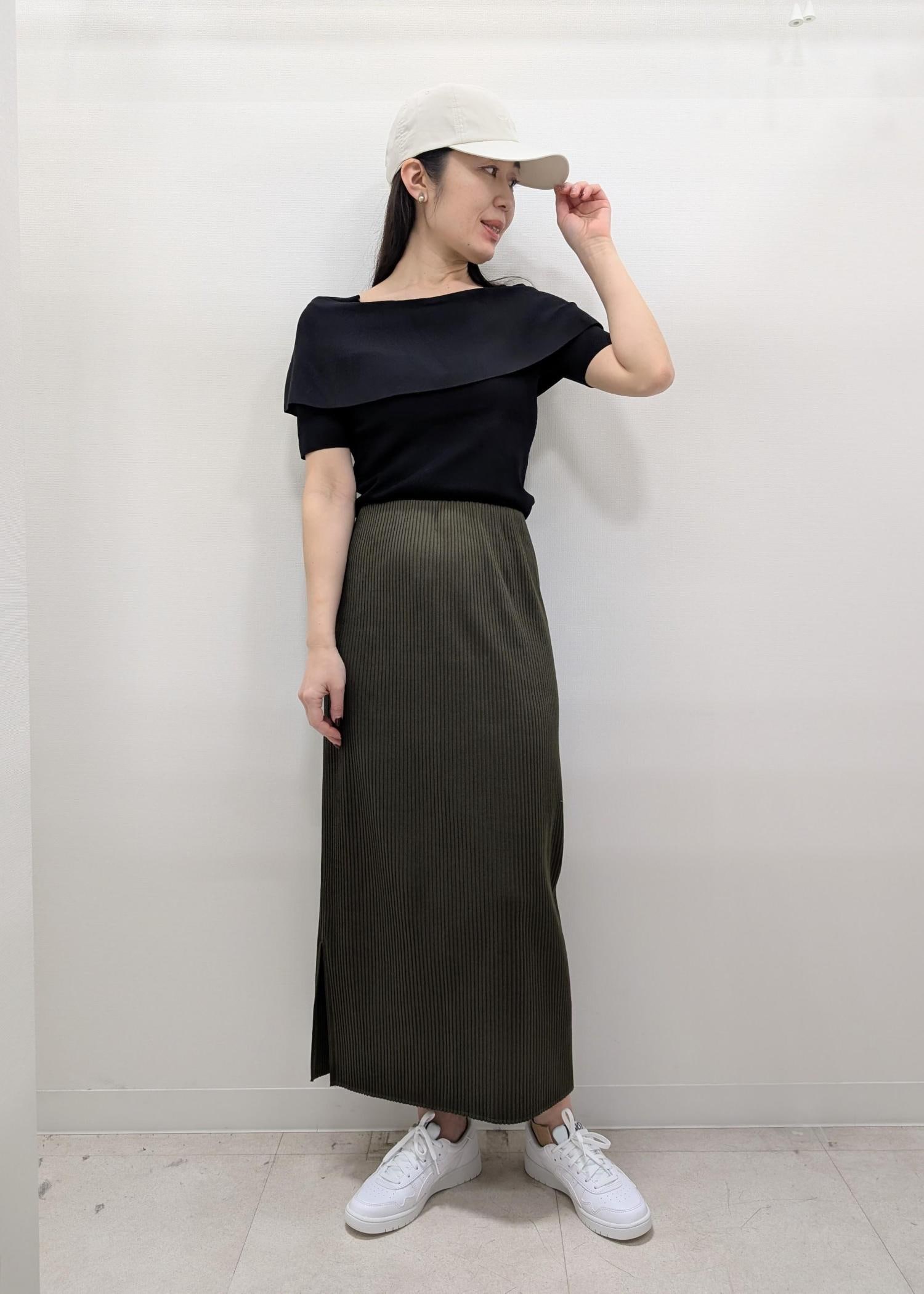 ROPÉ PICNICトタンテレコ Iラインリブニットスカートカーキ / L¥4,994レビュー私は骨格ウェーブで腰が張っているのでタイトスカートは大体40サイズですが、こちらは38サイズでも履けました!