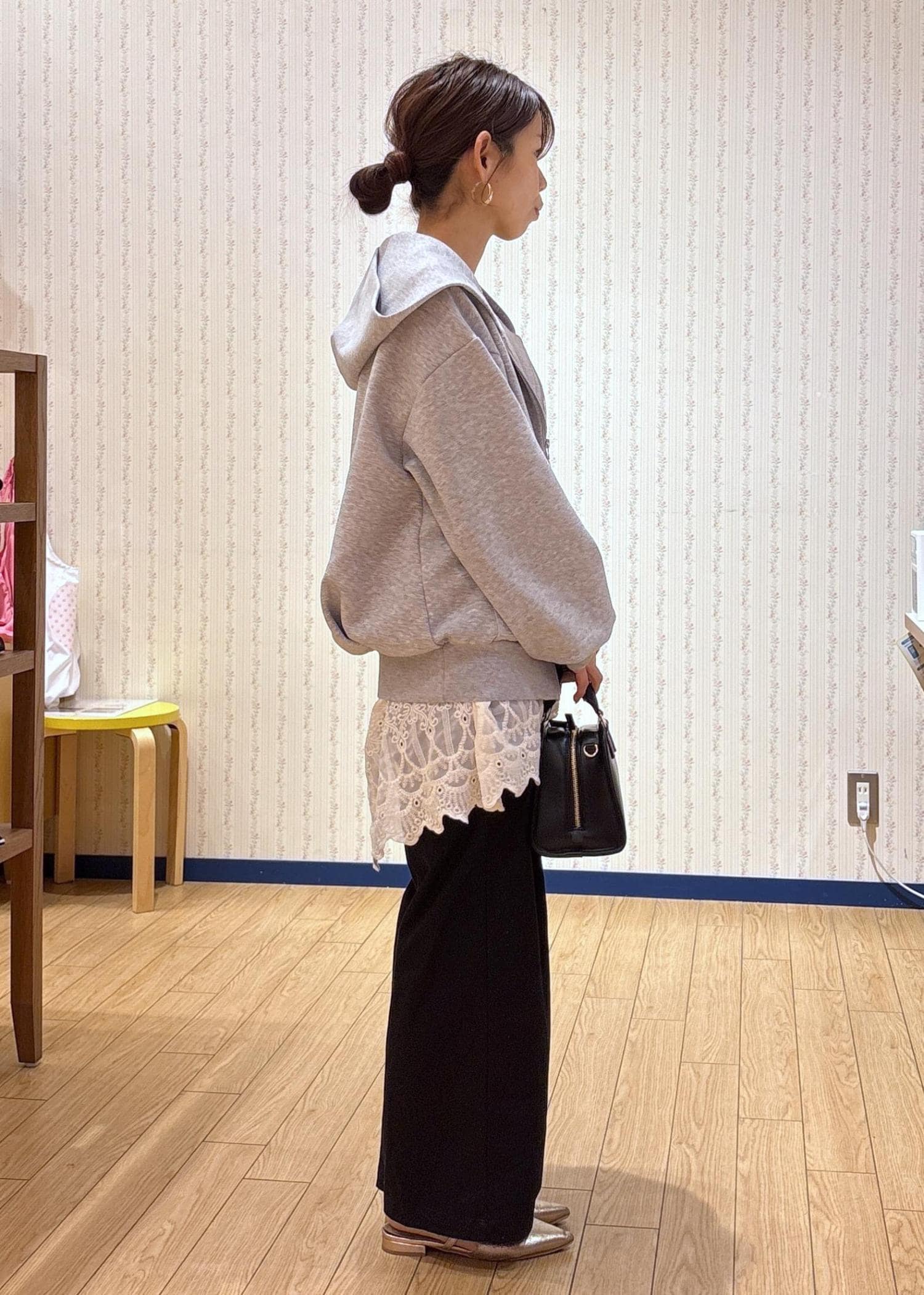 裾はリブなのでスッキリ見えます。