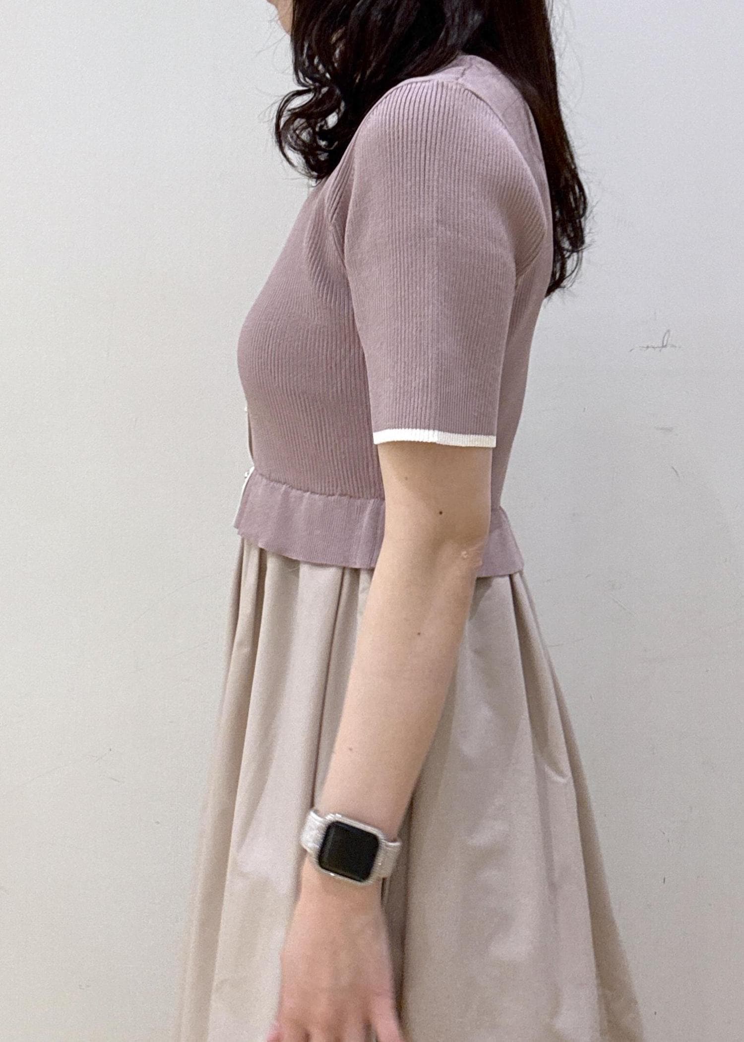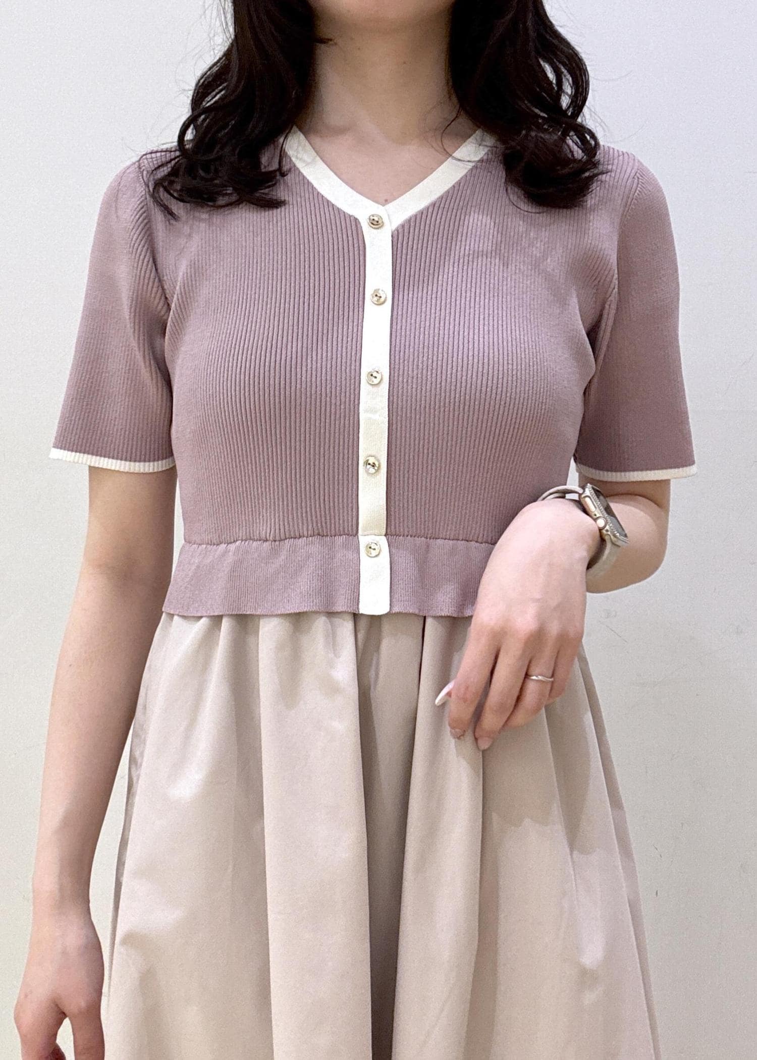 ROPÉ PICNICメタル釦布帛ドッキングハーフスリーブニットワンピースピンク / M¥7,491レビュー裏地は無いですが、しっかりとした生地感なので透ける心配はないです。