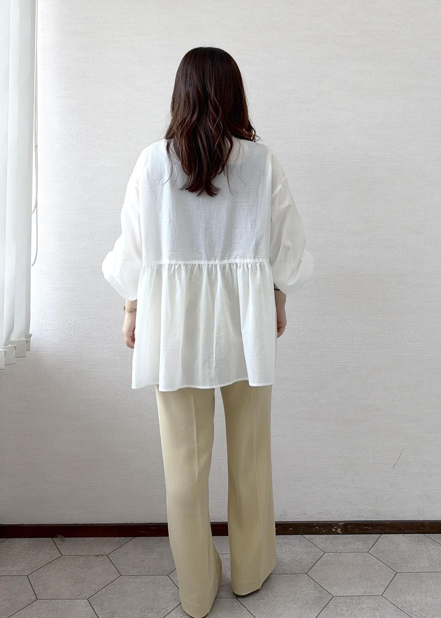 ふんわりと広がるペプラムシルエットは大人可愛いになれます! -