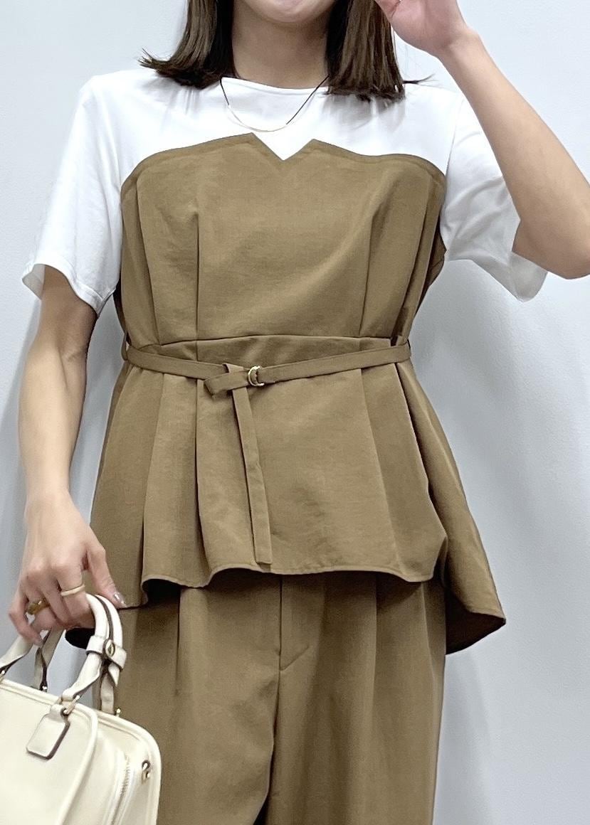 予約ROPÉ PICNICエアリーリネンライク ドッキングカットトップス/UVカットキャメル / F¥5,489レビュー柔らかくサラッとした肌触りで、カットソーとリネンライクの生地のドッキングデザイン。