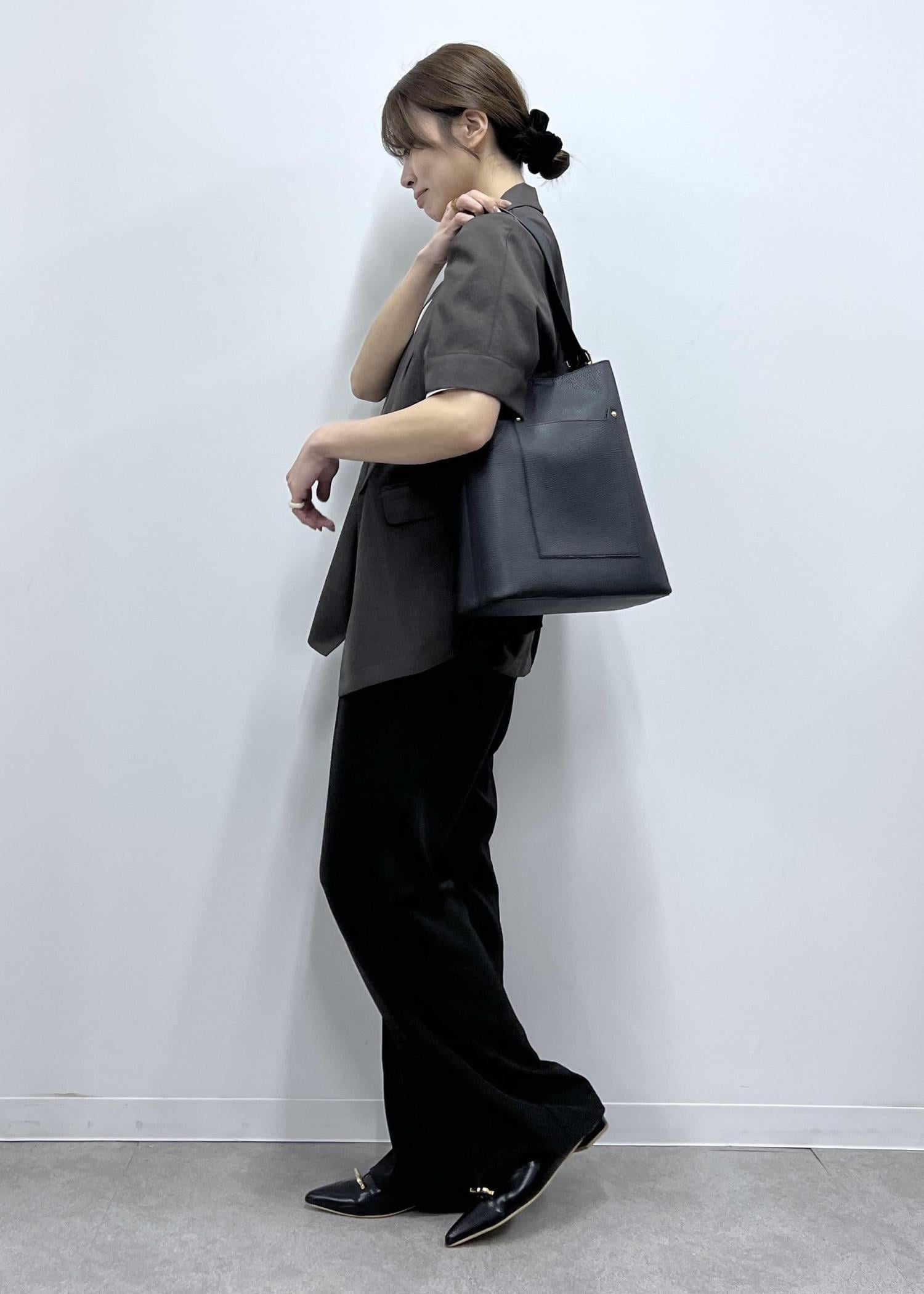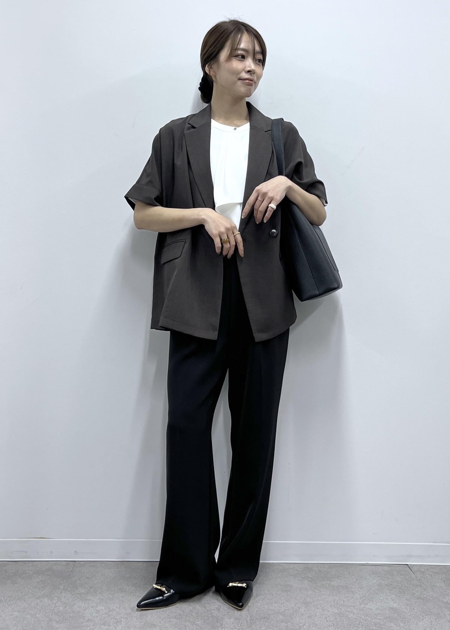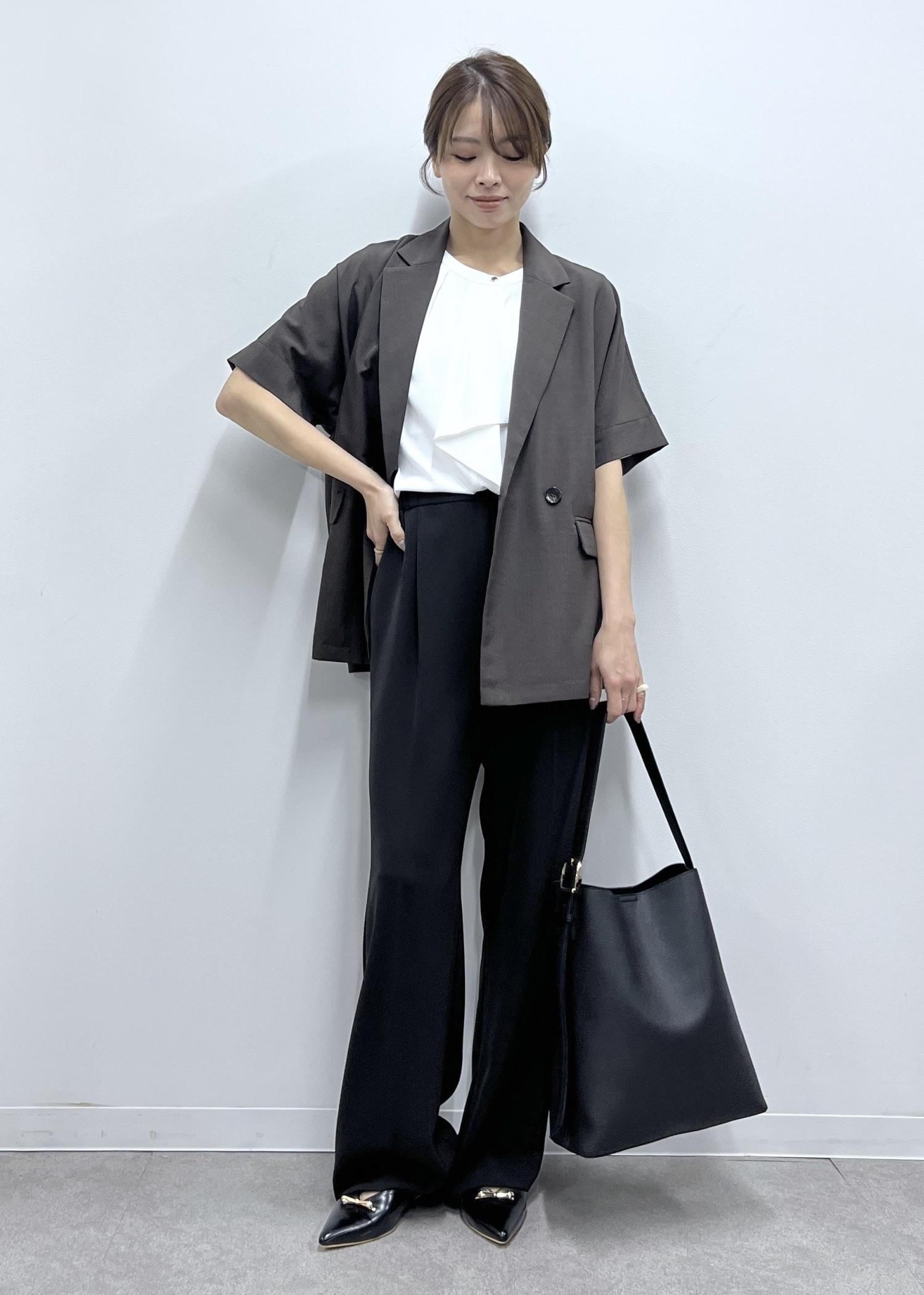 接触冷感の半袖ジャケットは、夏の通勤スタイルにもおすすめ。
