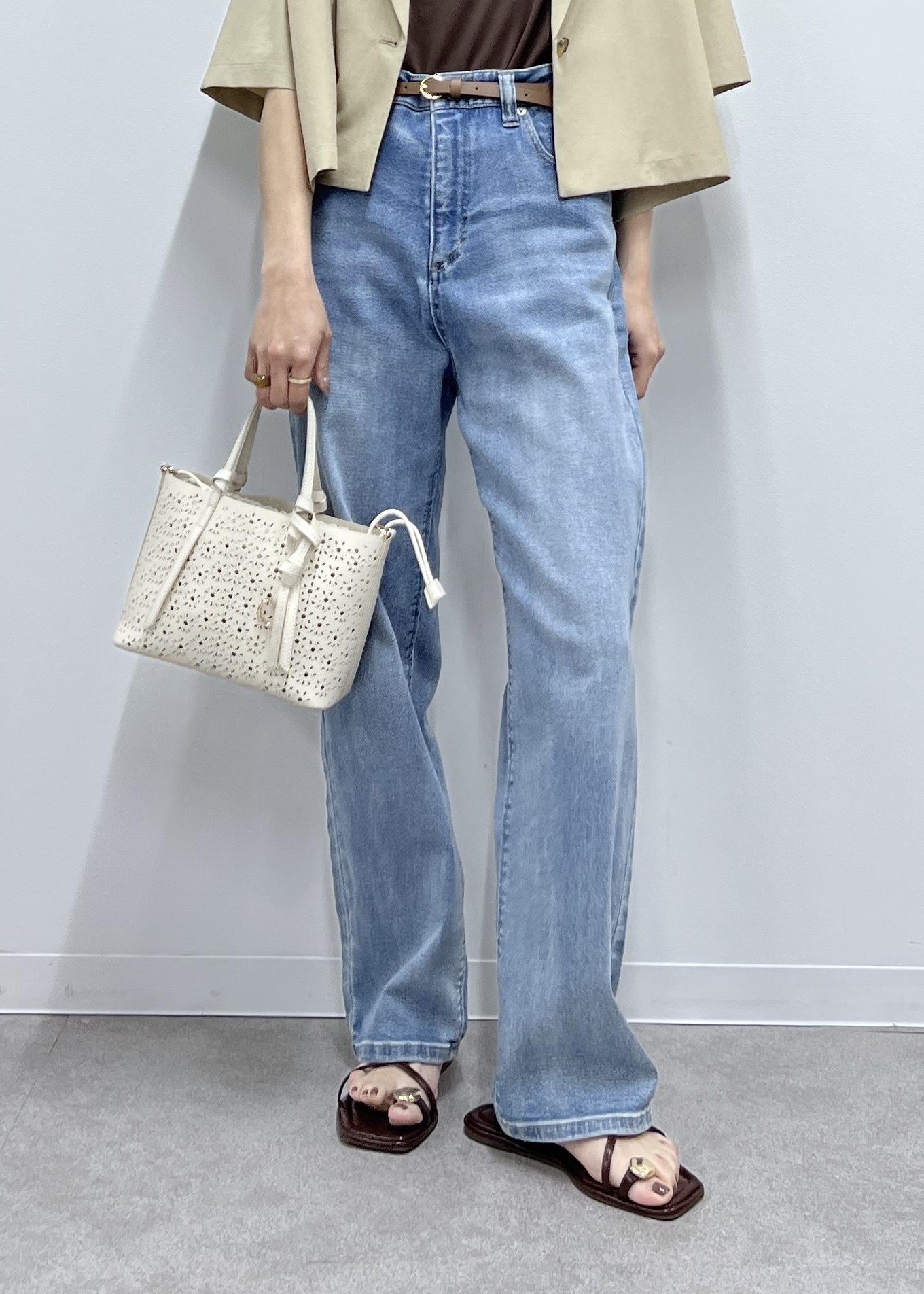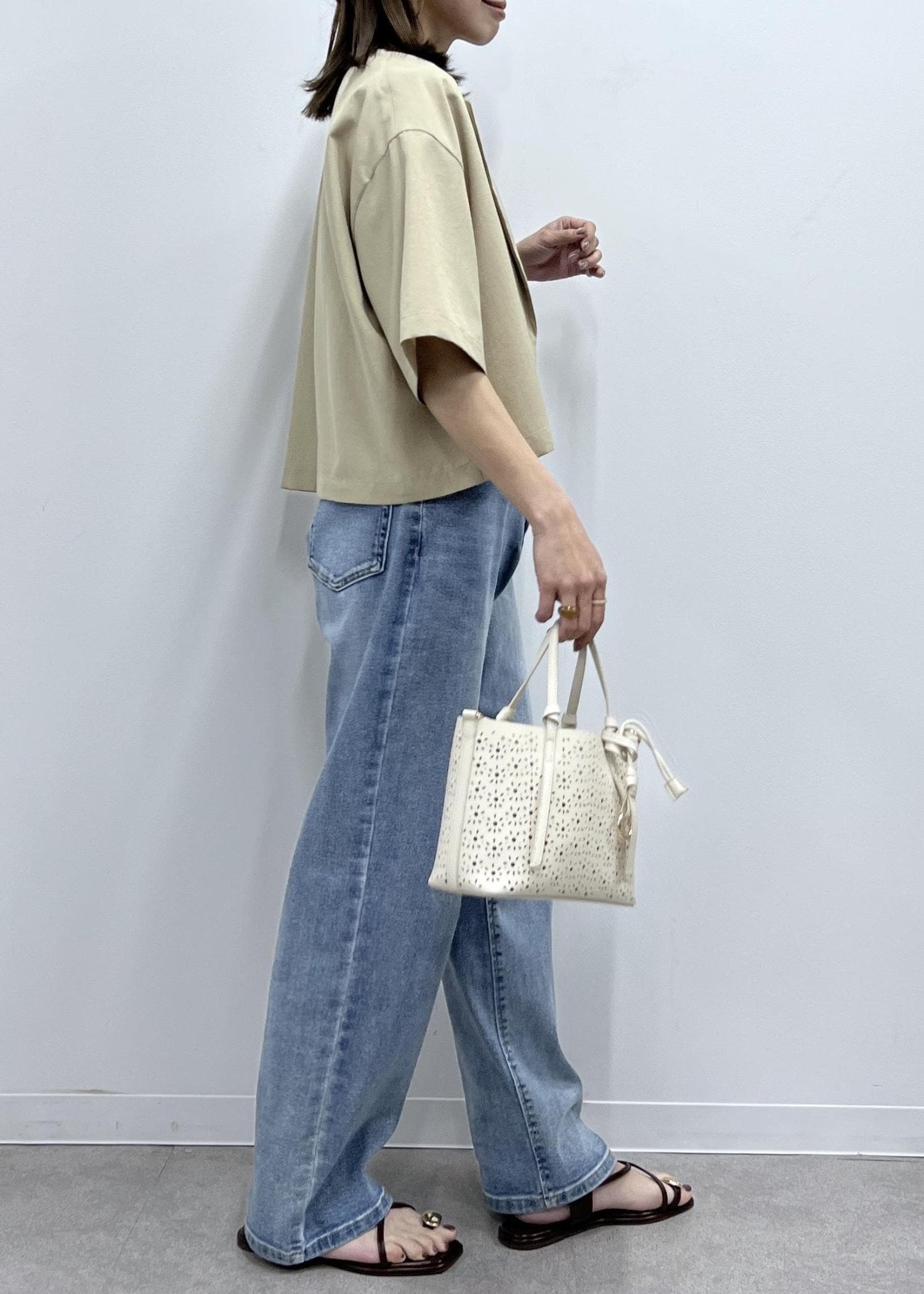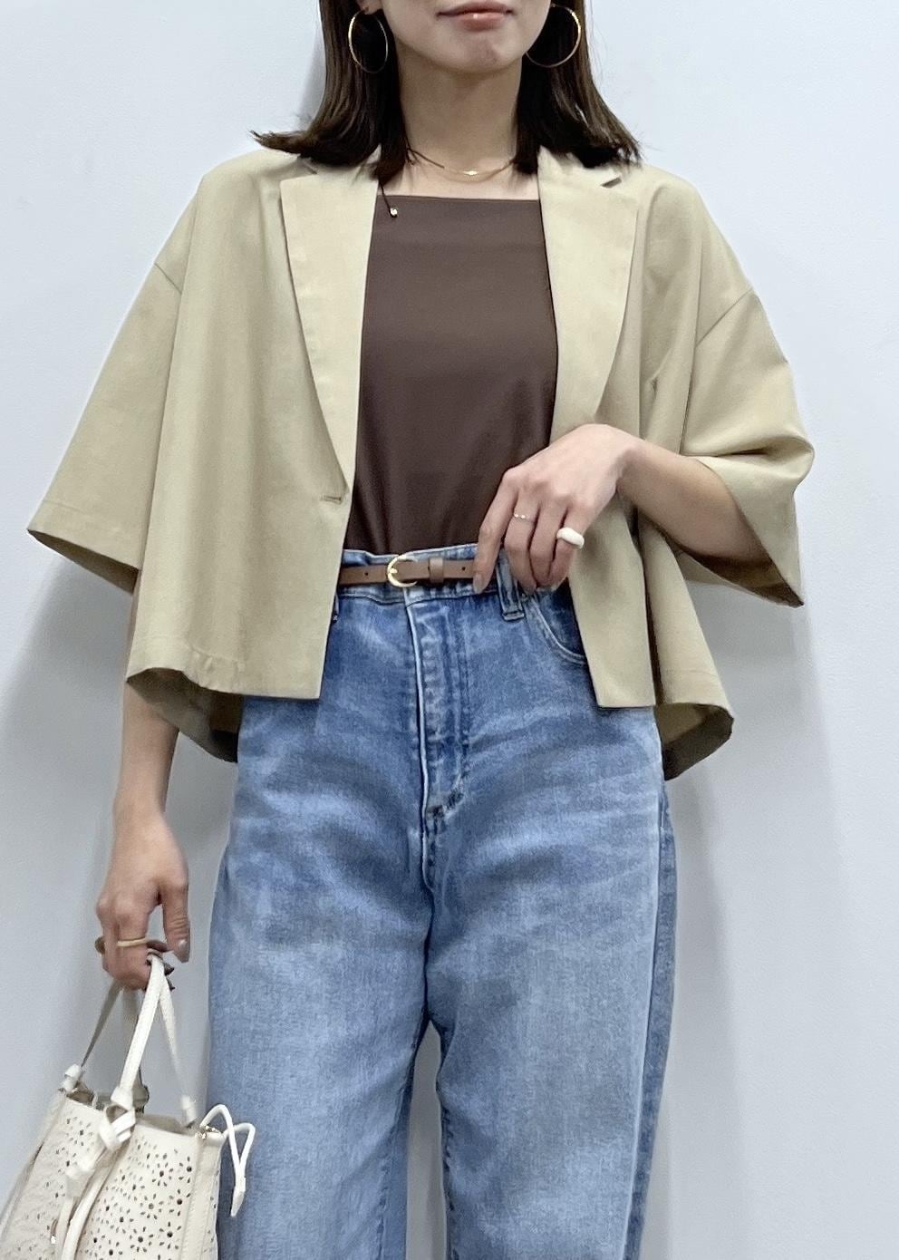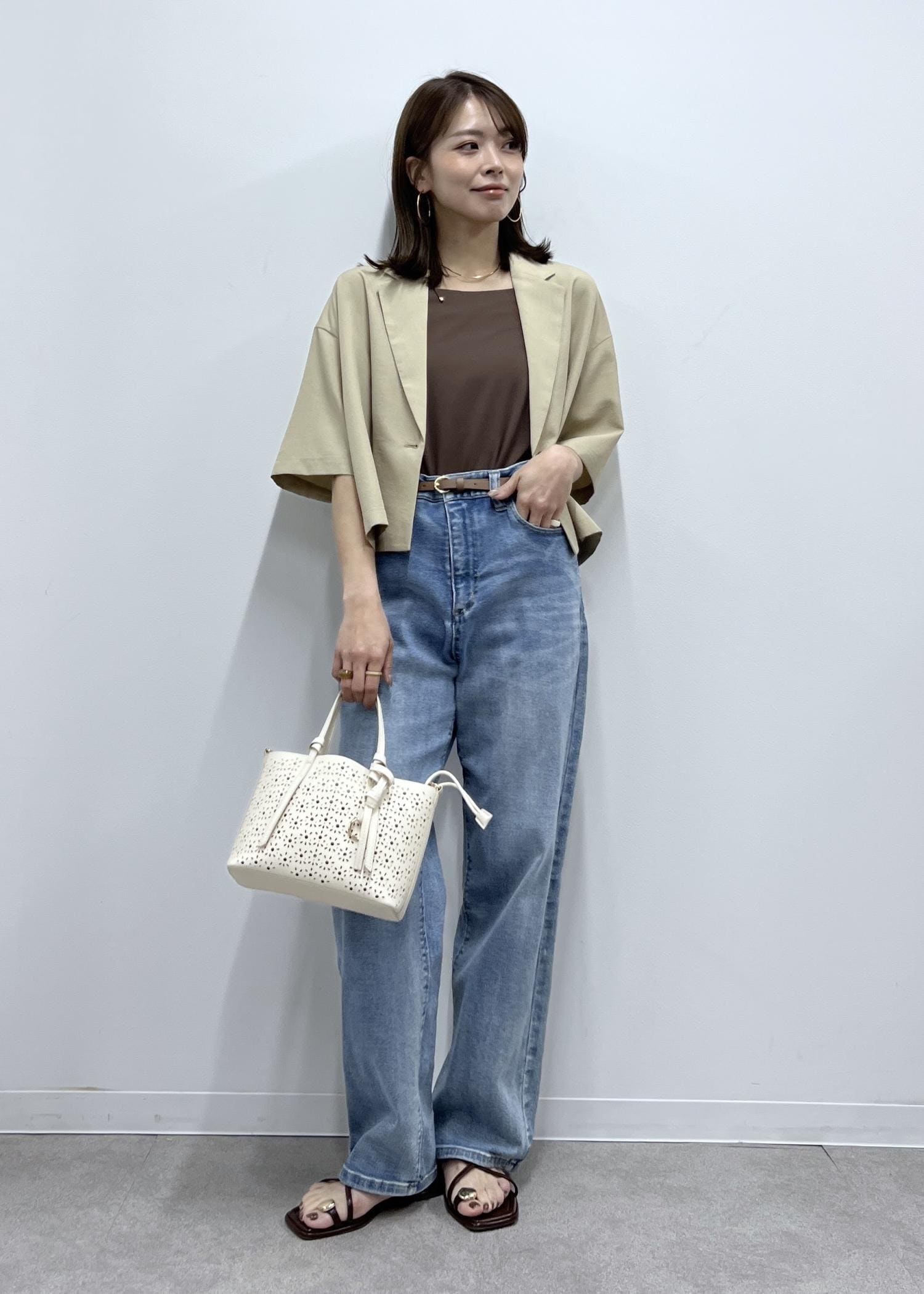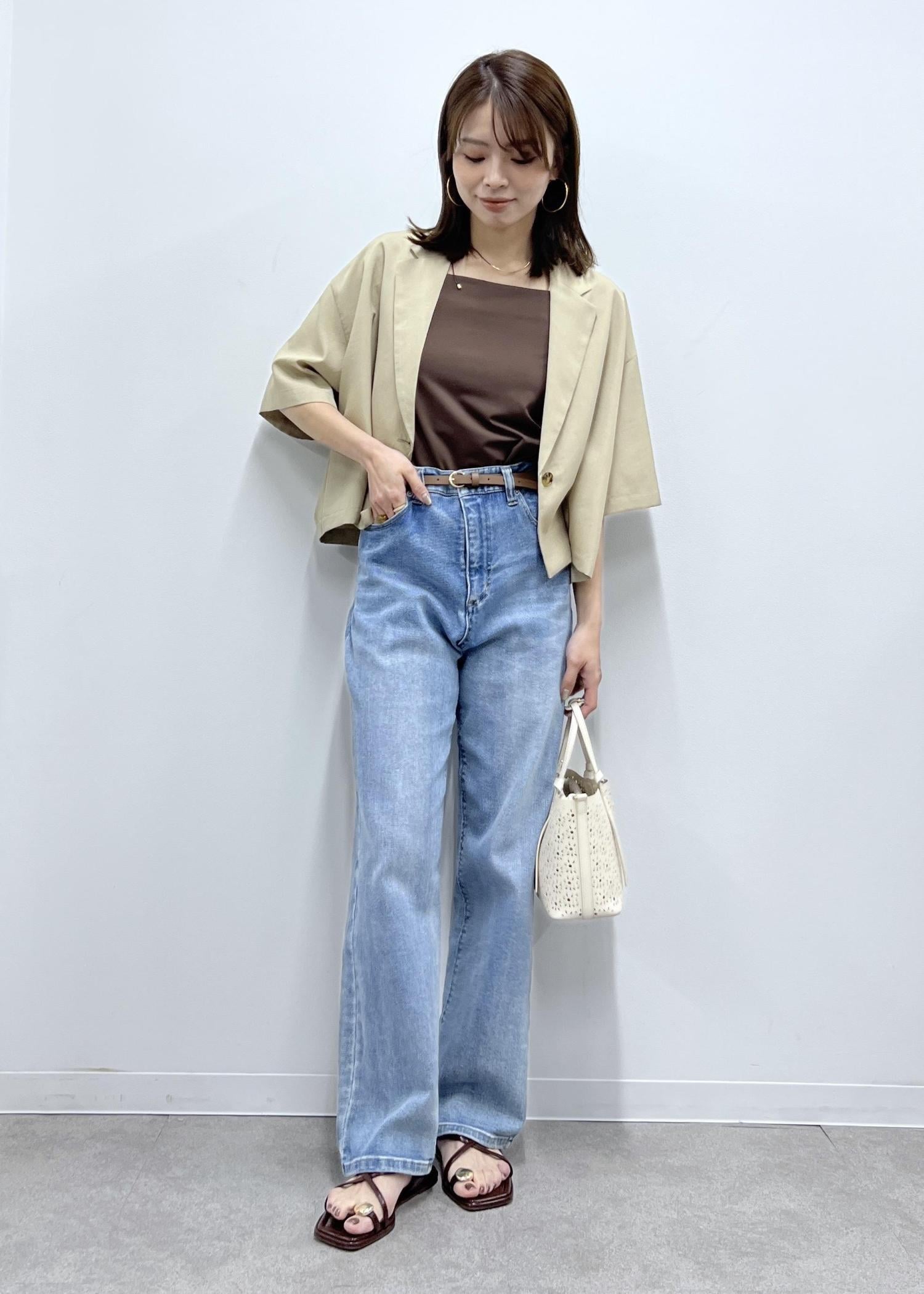 ジャケットのインナーには潔くキャミソールで、夏らしい涼しげなコーデにしました。