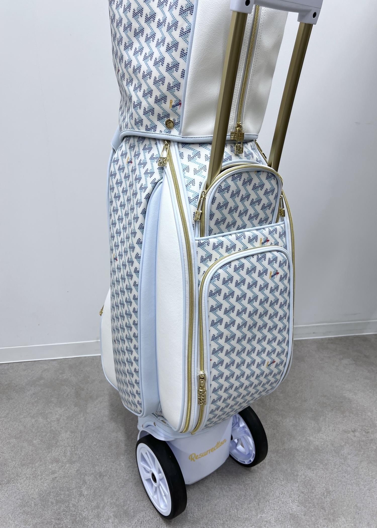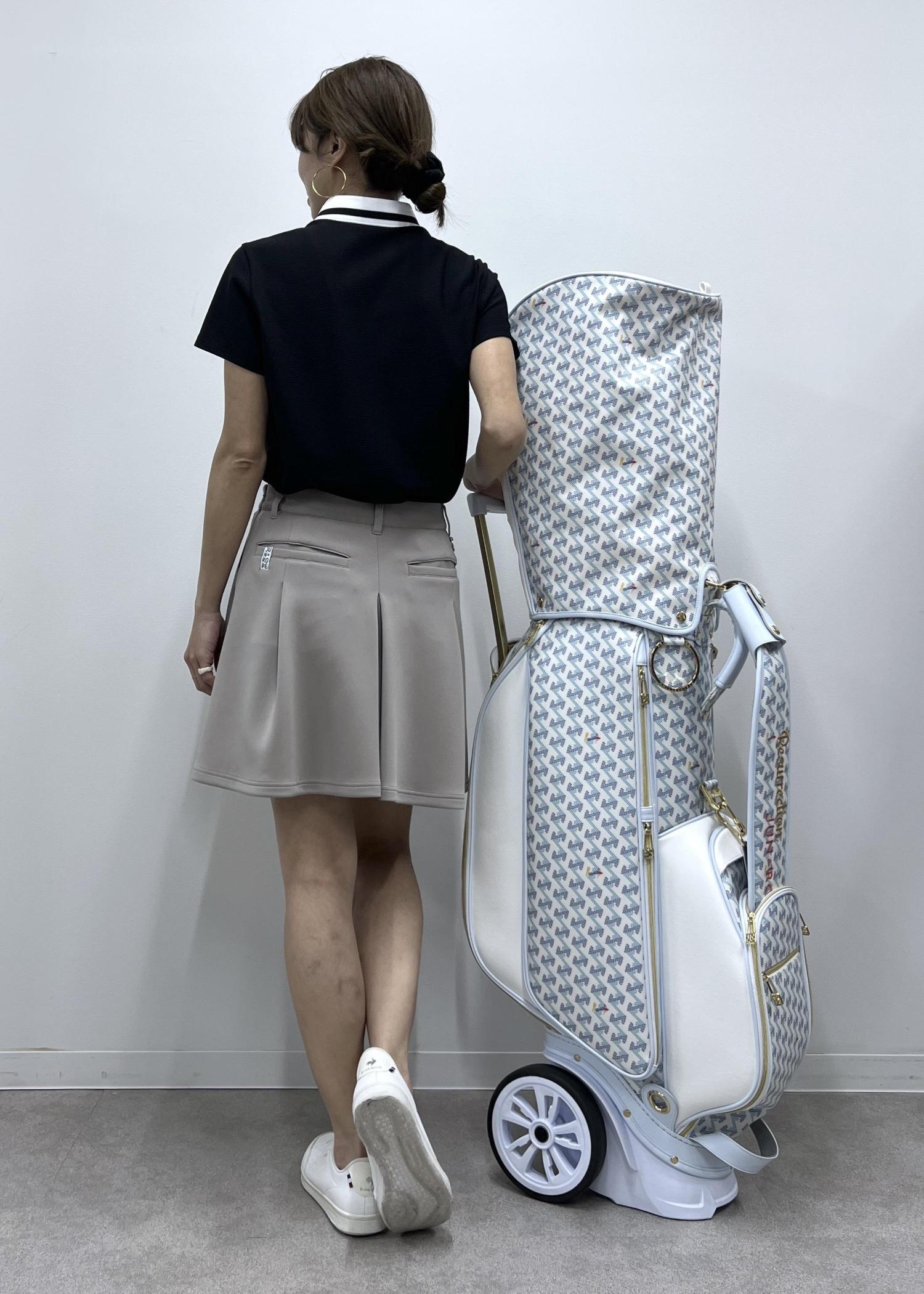 トロリー型のゴルフバッグはレザレクション別注デザイン。