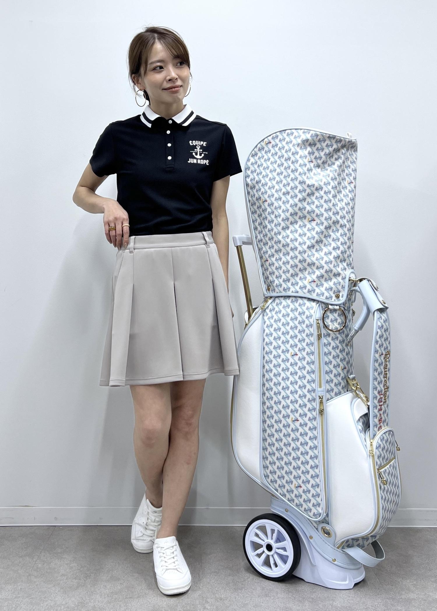 フレアのスカートで動きやすさもしっかり備えたゴルフコーデにしました。