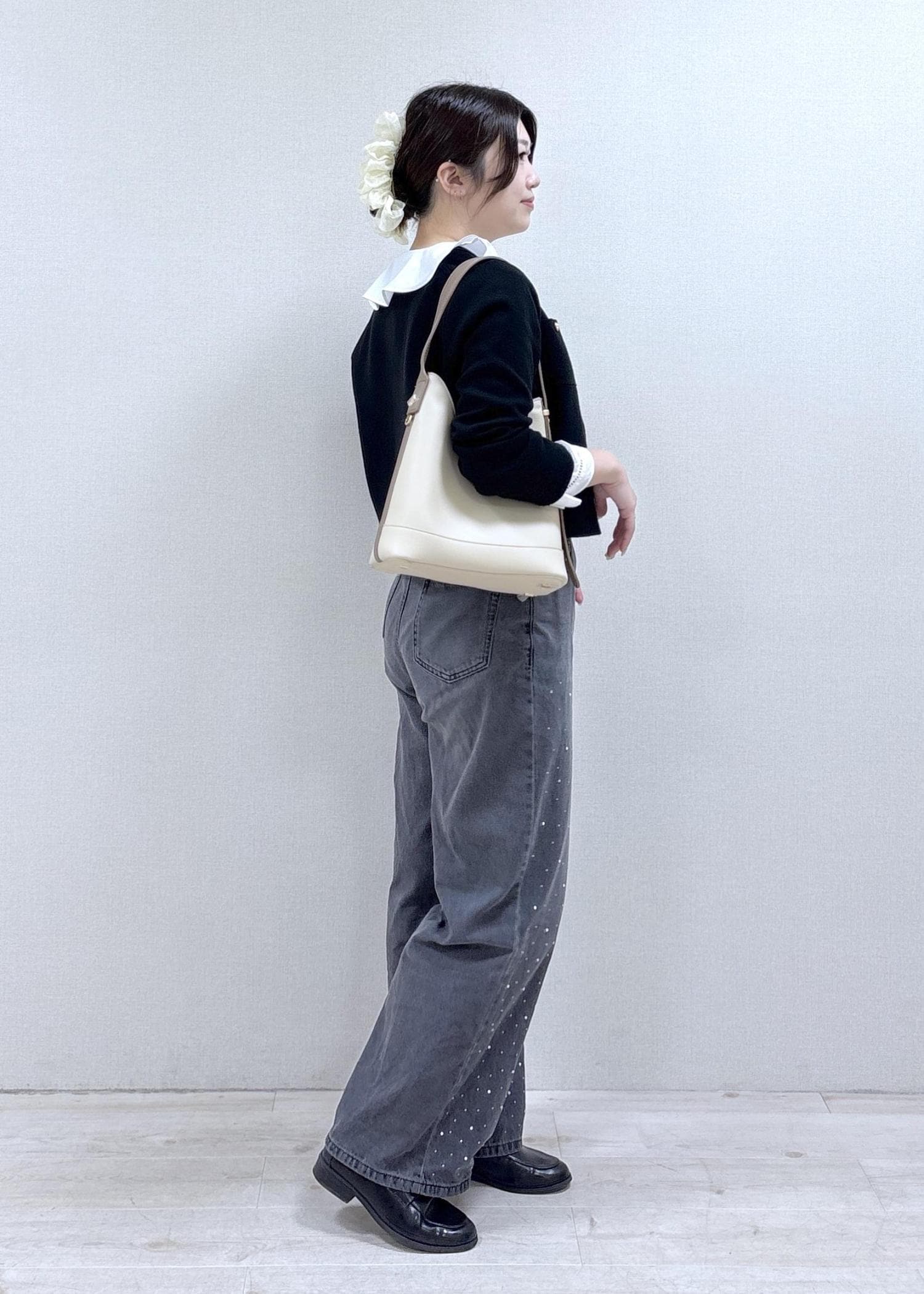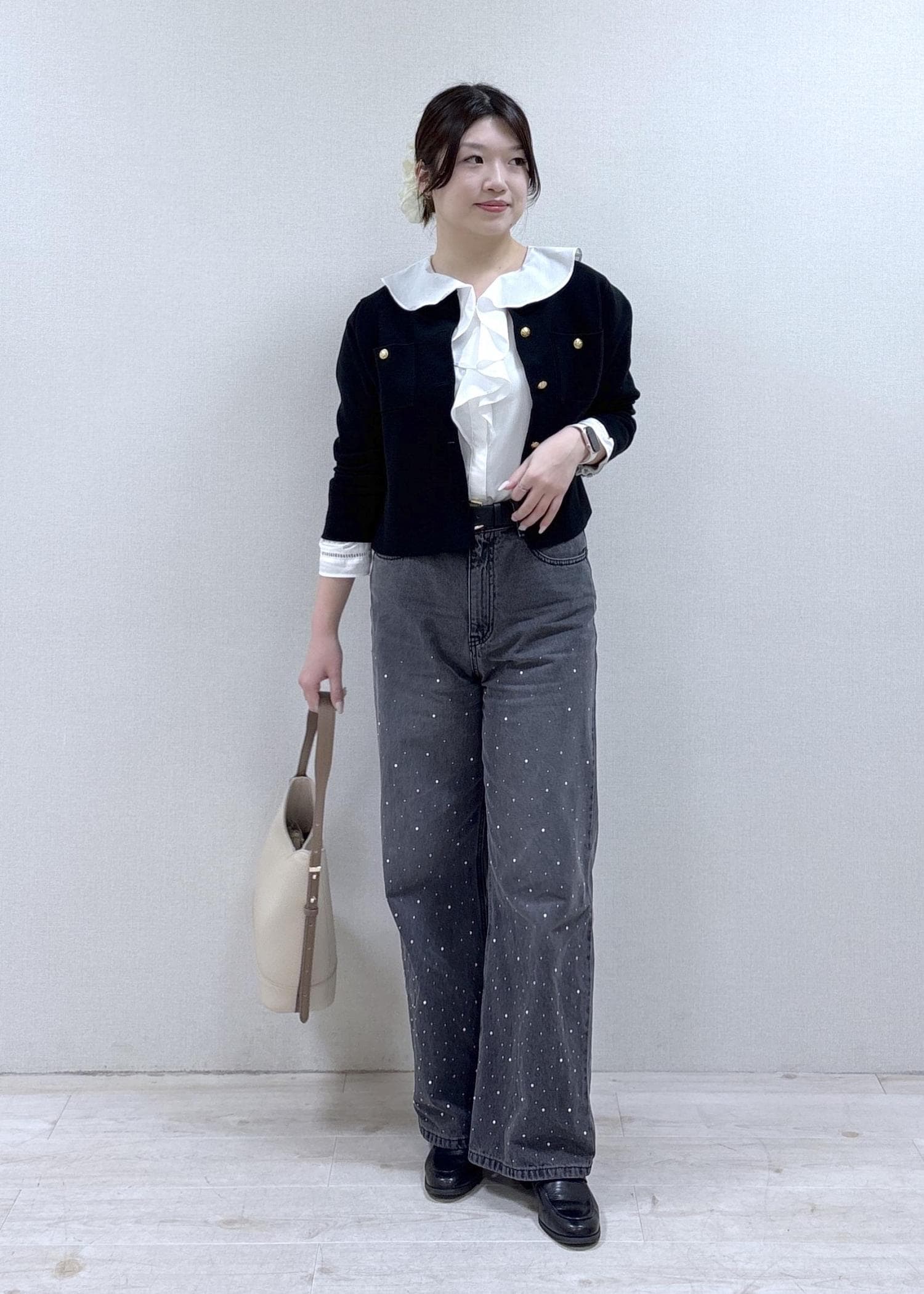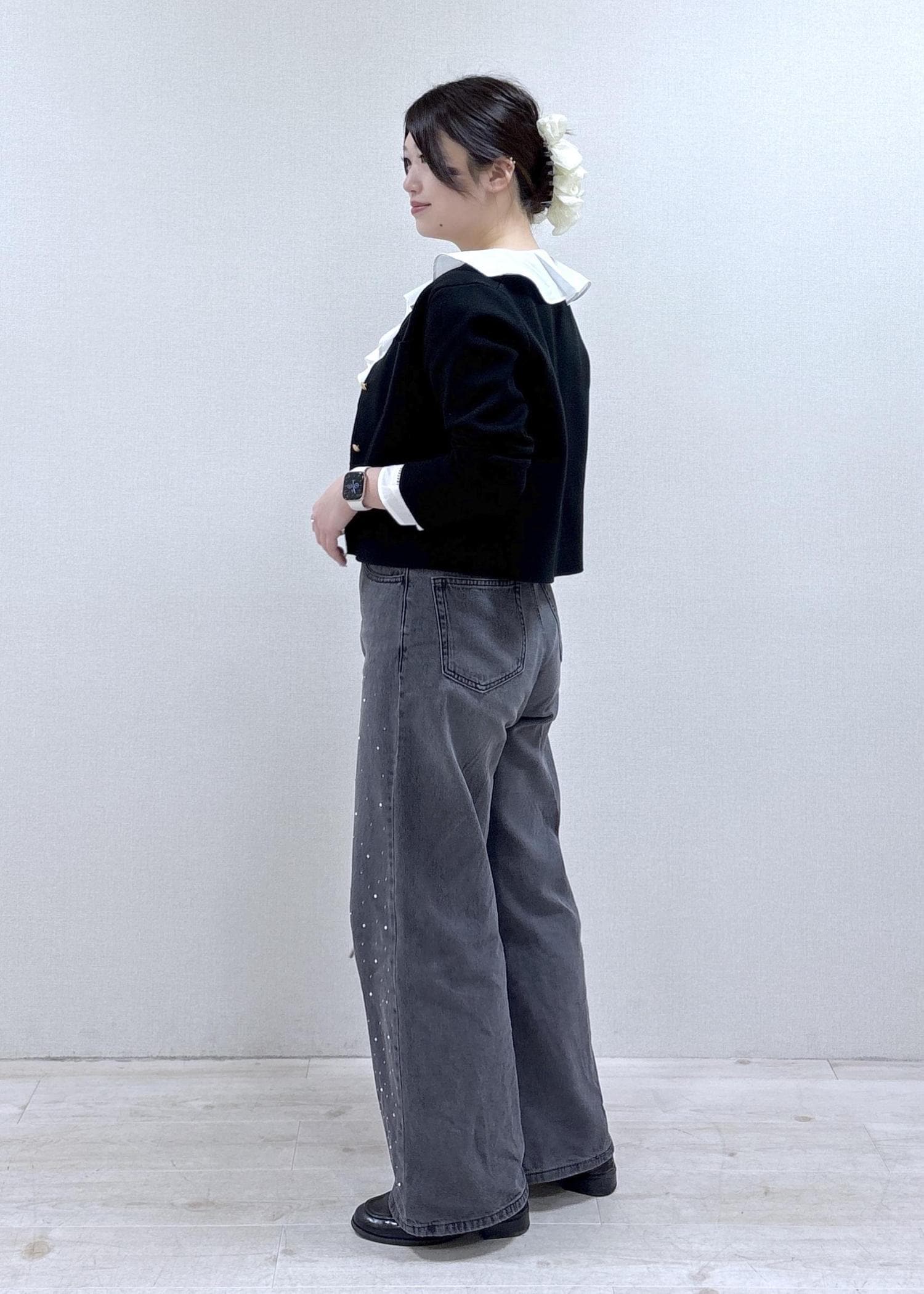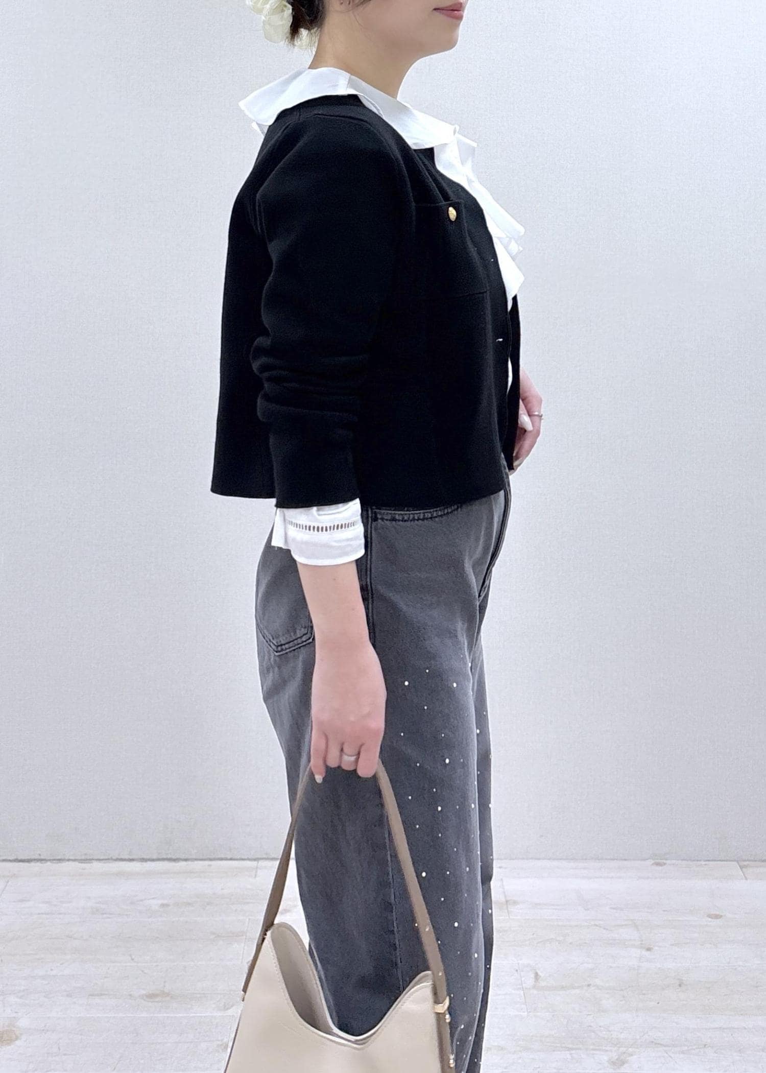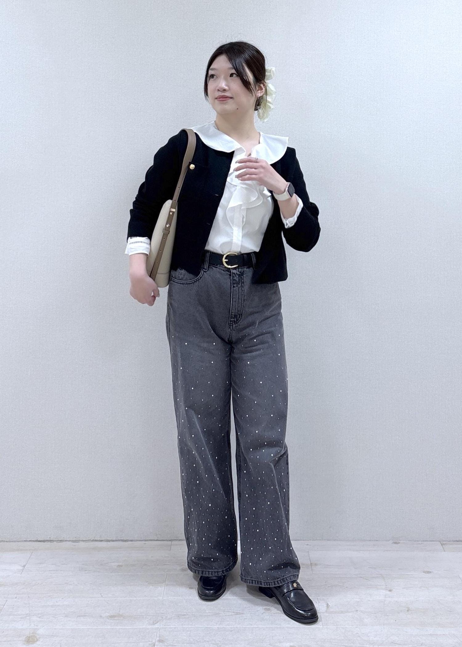 デニムはキラキラのビジューとパールが華やかで、今年っぽく着ていただけます♪
