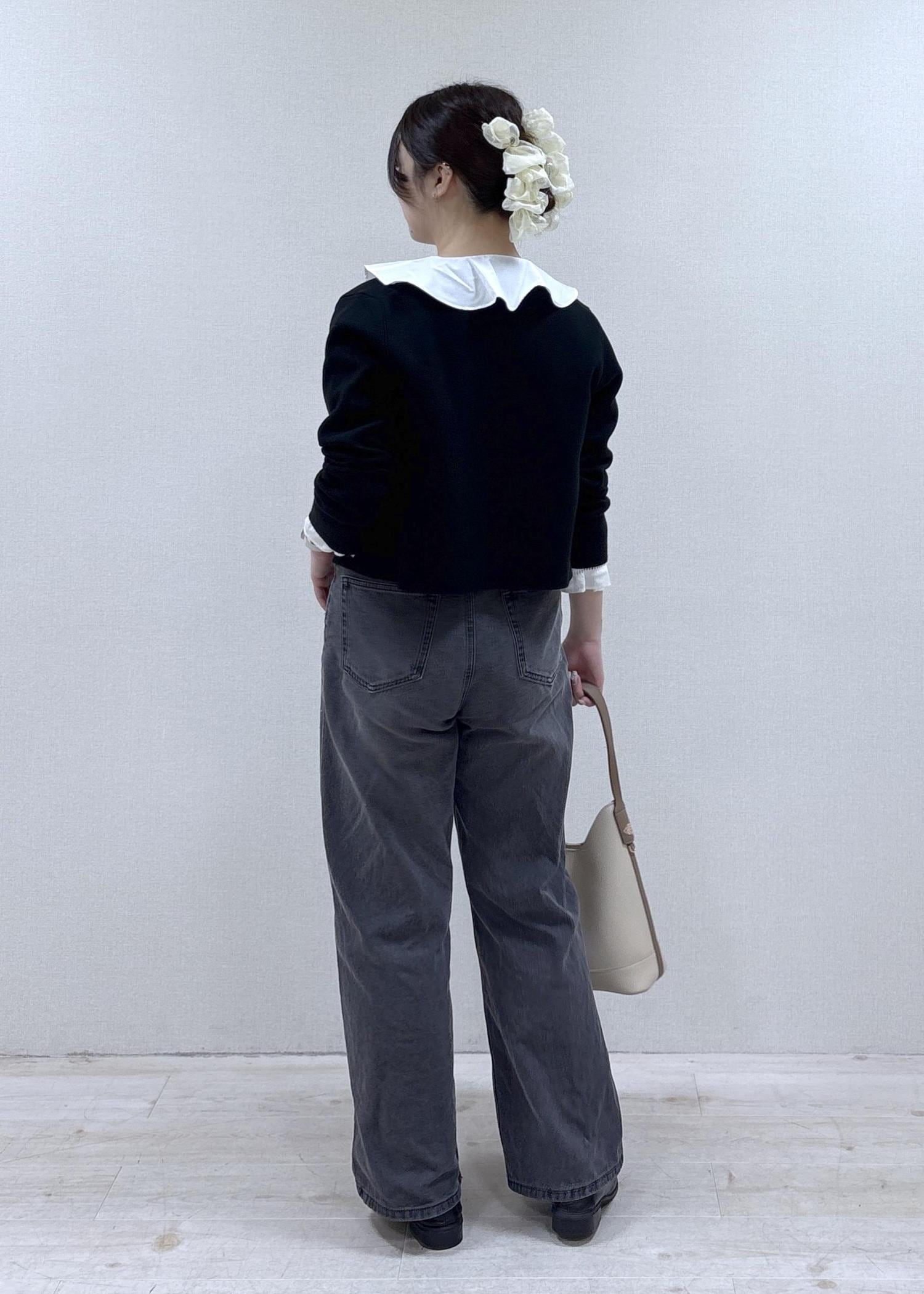 スッキリ見えるコンパクトな形ですが、中にシャツや薄手のニットをインできるゆとりがあります。