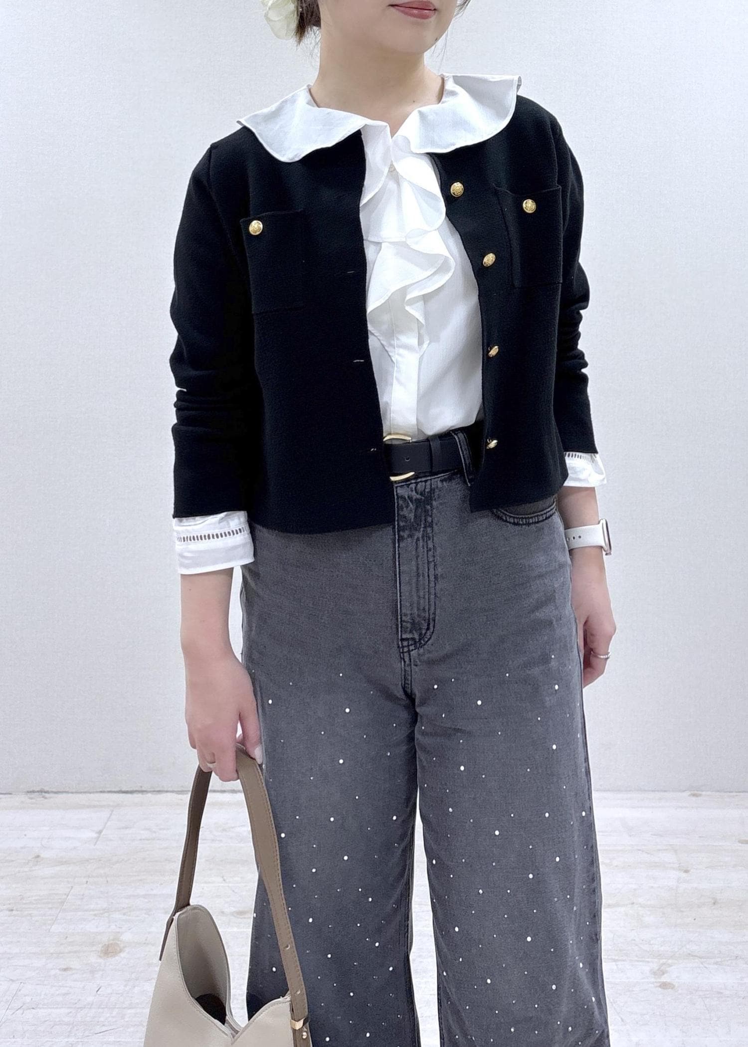 ビジューデニムの大人カジュアルコーデ